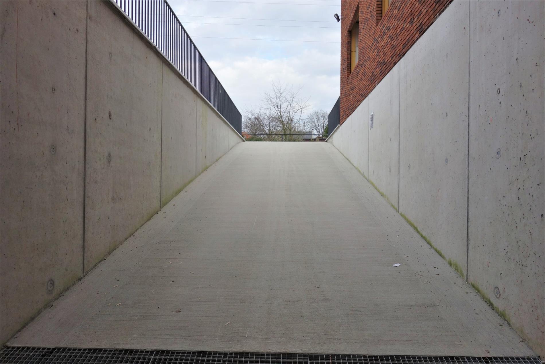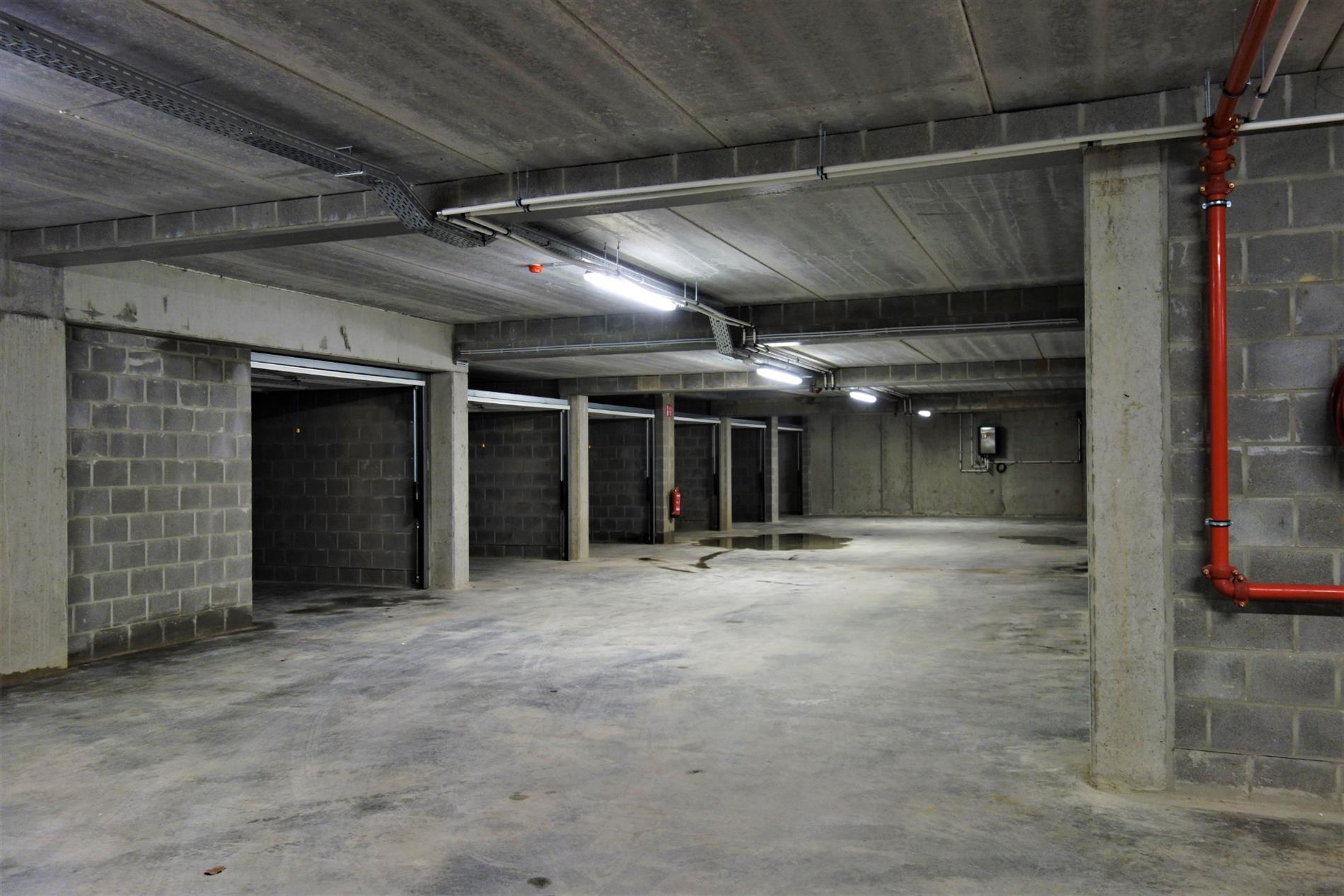 De garagebox is gelegen in het centrum te Sint-Job-in-'t-Goor. De ondergrondse parking is toegankelijk via de Handelslei. De ligging van het perceel is in de nabijheid van de N115 en de E19. De garagebox bevindt zich in de ondergrondse verdieping en omvat een afgesloten parkeerruimte met handbediende kantelpoort, een lichtpunt met 1 bediening en een stopcontact. De basishuurprijs bedraagt 85 euro per maand, exclusief maandelijkse forfaitaire kosten 5 euro voor de gemeenschappelijke delen. Het verbruik van de individuele elektriciteit wordt privatief afgerekend.