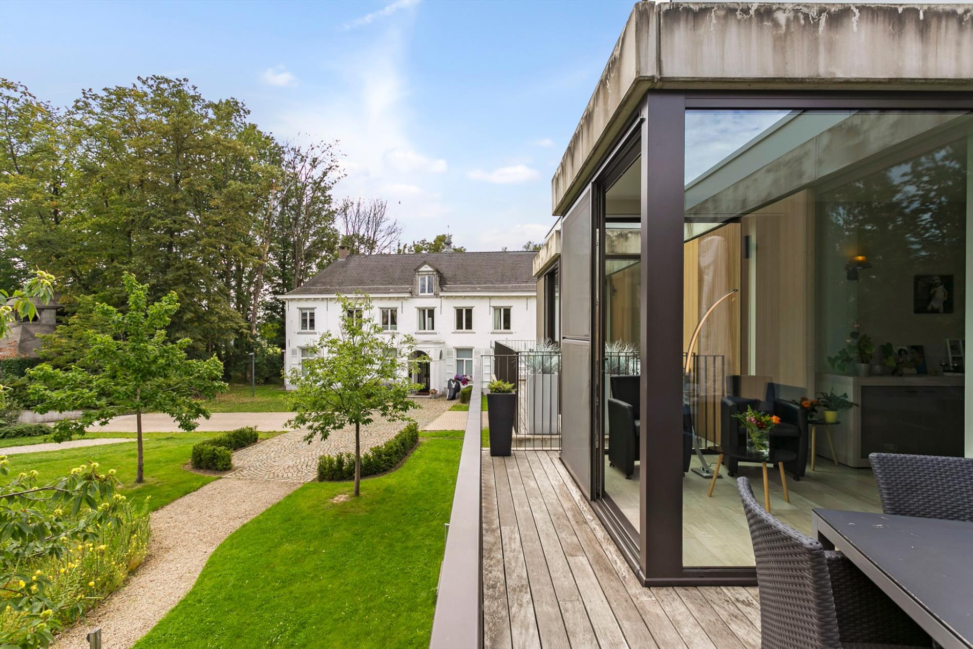Het appartement is gelegen in één van de parkpaviljoenen op het historische binnengebied van kasteel Drakenhof, dat herontwikkeld werd als een private groene woonomgeving. Dankzij de hoekligging geniet u overal van mooie natuurlijke lichtinval. Het appartement heeft de volgende indeling: inkomhal met gastentoilet, ruime woonkamer 28m² met toegang tot het grote terras, volledig uitgeruste halfopen keuken 8m² met gasfornuis en ruime berging aansluitend de keuken. Via de nachthal bereiken we de badkamer met WC, badkamermeubel en douchecabine en de 2 slaapkamers (12 & 17m²) waarvan de grootste voorzien werd van een privé-balkon. In de ondergrondse verdieping is er nog een kelderberging en ruime autostaanplaats voorzien dewelke in de verkoopprijs zijn inbegrepen. Wenst u te vertoeven in alle luxe, comfort en privacy met een goede bereikbaarheid, dan is dit appartement uw nieuwe thuishaven.