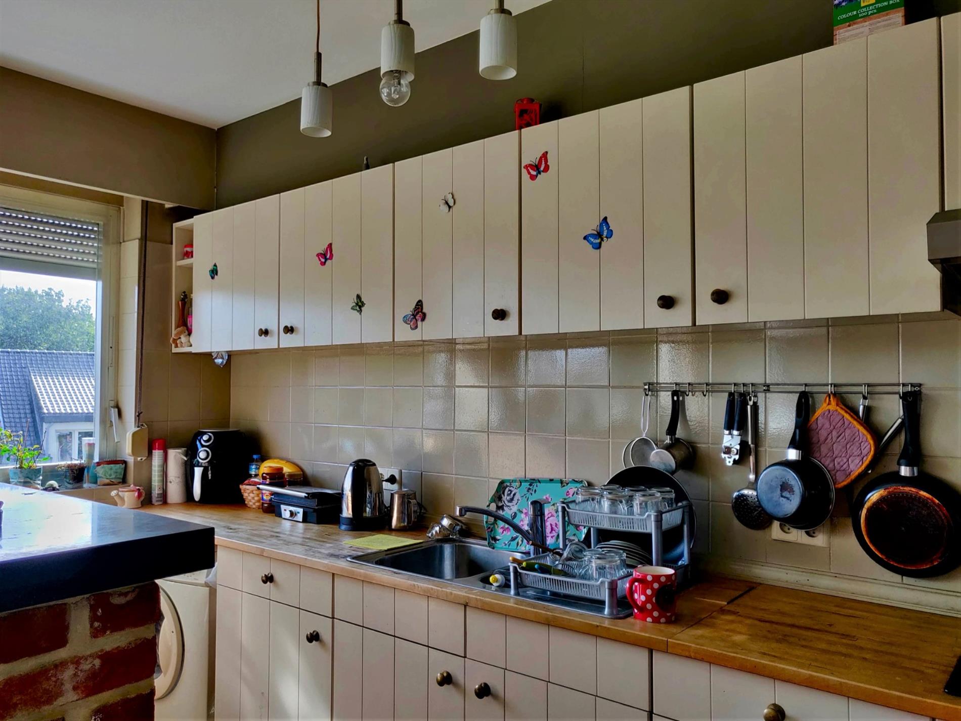 Centraal gelegen appartement op de tweede verdieping van een kleinschalig gebouw zonder lift. Indeling: inkomhal 8m² met ingemaakte kasten en een gastentoilet, een woonkamer 27m² op parket, een ingerichte halfopen keuken met toestellen. De grote ramen aan de straatzijde en de zijgevel zorgen voor veel natuurlijk lichtinval in de leefruimte en een mooi open uitzicht. Er zijn 2 slaapkamers (11m² en 13m²). Een badkamer met ligbad en dubbele lavabo. Alle ramen zijn enkel glas, doch met rolluiken voorzien. Achteraan het complex is een privatieve garagebox inbegrepen in de verkoopprijs met kantelpoort dewelke bereikbaar is via een oprijlaan naast het gebouw. Ideaal appartement voor starters of investeerders. Mits opfrissing maakt u van dit appartement een pareltje op een topligging net buiten het centrum van Brasschaat.