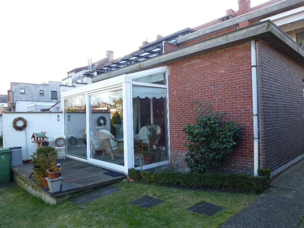 Opbrengstwoning verdeeld in 2 appartementen. Het gelijkvloersappartement (ca.105m²) omvat een zijdelingse inkom, geïnstalleerde keuken ca.7,5m², woon- en eetkamer ca.32m² met aansluitend een veranda ca.12m², wasplaats ca.4m², slpk1 ca.14m², slpk 2 ca.12m², comf. badk. met ligbad 32m². Via de berging is er toegang tot een kelder ca.20m². Het duplexappartement (ca.120m²) met aparte inkomhal omvat op de 1steV: woonkamer ca.38m², keuken ca.9m² met balkon, slpk. ca.14m², badkamer ca.3,5m² en een toilet. 2eV: overloop, 3 slpk (ca.14m², ca.19m² en ca.9m²) en een toilet. Noord-oost georiënteerde tuin met garagebox. Het glv-app is verhuurd. Wg,Gdv,Gvkr,Gvv,Vg. EPC:534kWh/m². UC1328820 & EPC:680kWh/m².UC1328753
