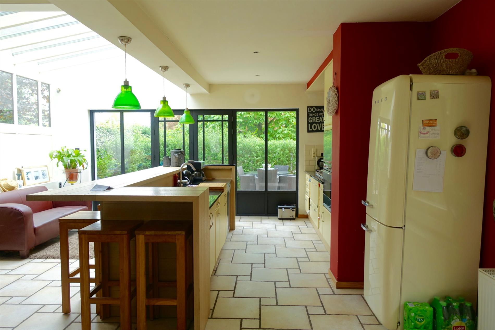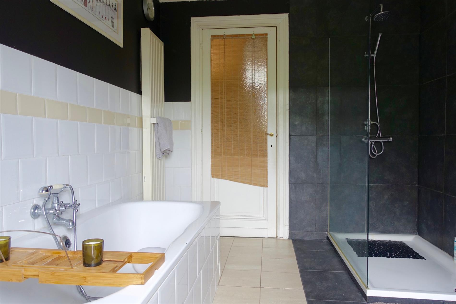 In het karaktervolle Mariaburg vindt u deze vrijstaande en goed onderhouden woning in eclectische stijl met een zee van ruimte. De woning omvat 207m² benutbare ruimte en het multifunctioneel bijgebouw 251m². Indeling: inkomhal met hoge plafonds afgewerkt met sierboorden en authentieke tegels. Vanuit de inkom hebben we toegang tot een geïnstalleerde keuken 40m², met veel werkruimte, een lichte eethoek en aansluitend een gezellig, aangelegd terras. De kachel en de houten vloer in de woonkamer zorgen meteen voor een warm thuisgevoel. Op de tussenverdieping vinden we een vernieuwde badkamer met inloopdouche, ligbad en lavabo met wandmeubel. 1e verdieping: master bedroom met dressing voorzien van ingemaakte kasten, een aparte wasruimte met aansluiting voor wasmachine/droogkast en een toilet. 2e verdieping: twee slaapkamers op plankenvloer met ingebouwde kasten. De oprijlaan brengt u naar de fraai aangelegde tuin met 2 terrassen en achteraan een gastenverblijf/kantoor in loftstijl, dewelke werd voorzien van alle nutsvoorzieningen en ...