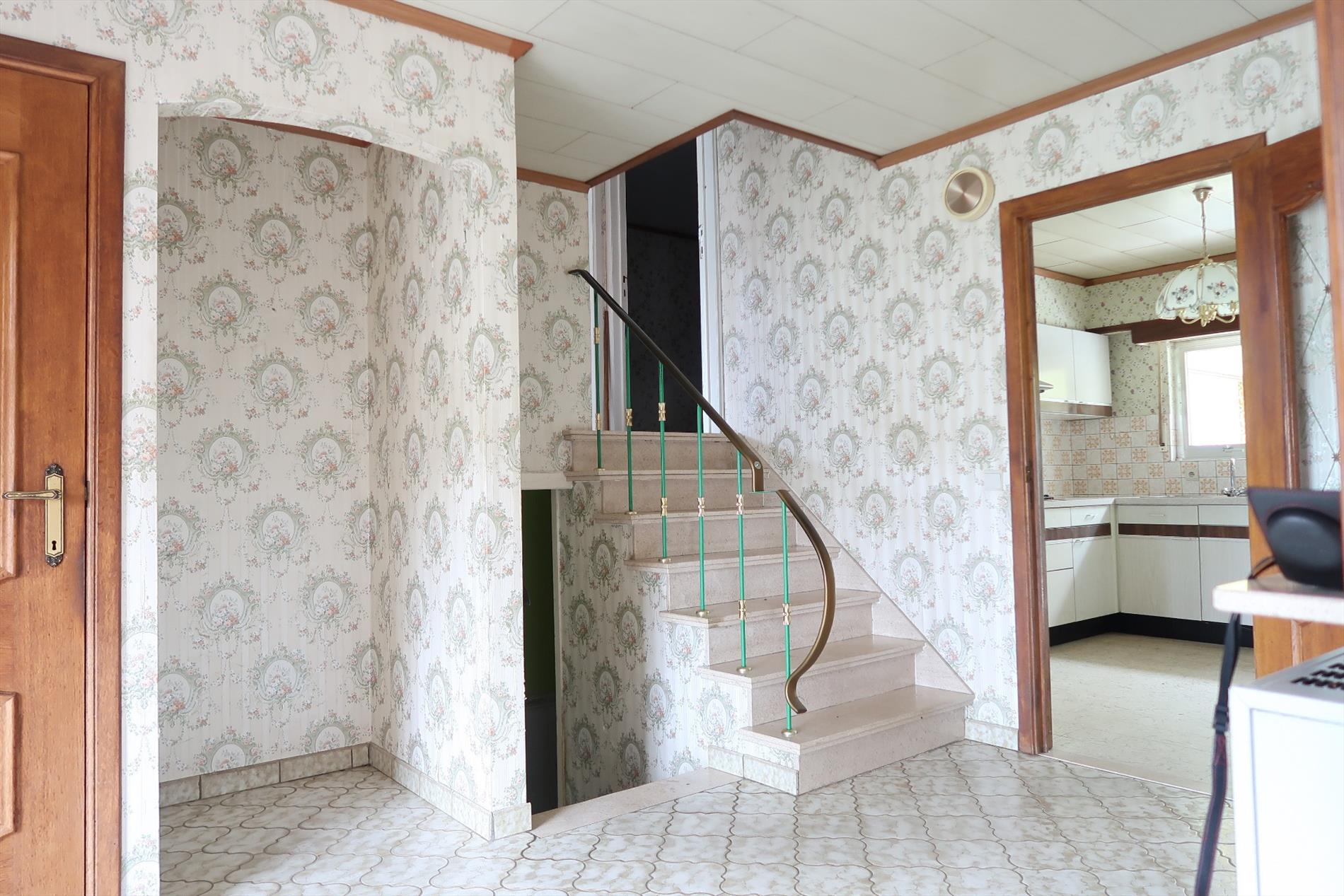 Zeer degelijke halfopen woning gelegen op een perceel 1080m². Indeling: inkom met gastentoilet, aangename leefruimte 35m² op tegelvloer, eenvoudige leefkeuken 12m², een veranda met uniek uitzicht op de diepe tuin. Op de verdieping bevinden zich de 2 slaapkamers (15m² en 16m²) met mogelijkheid tot een extra kamer. Tevens is er een inpandige garage, een benutbare kelder 15m², een multifunctionele kamer en een niet afgewerkte zolder. Deze split-level woning biedt U veel toekomstmogelijkheden.
