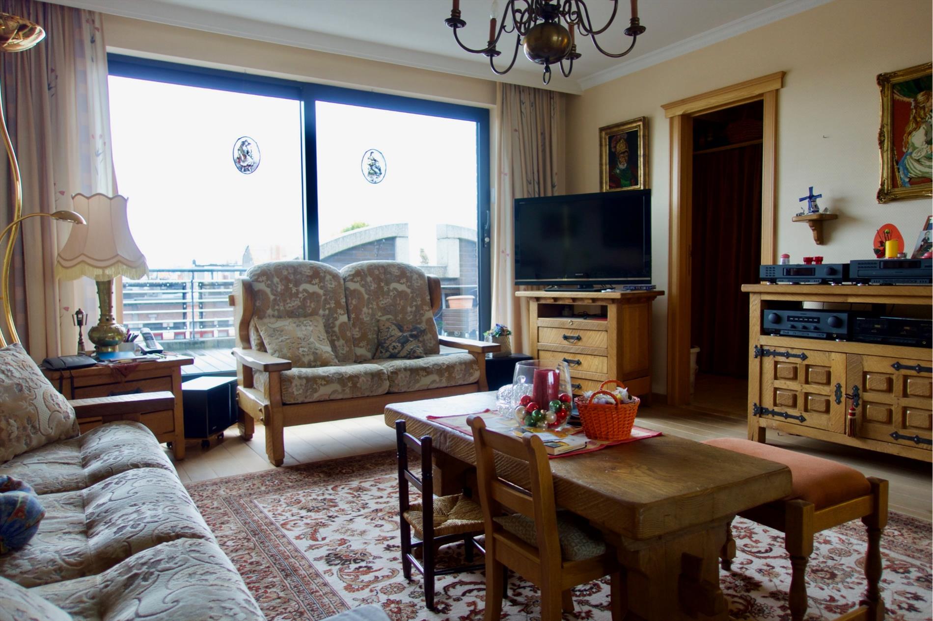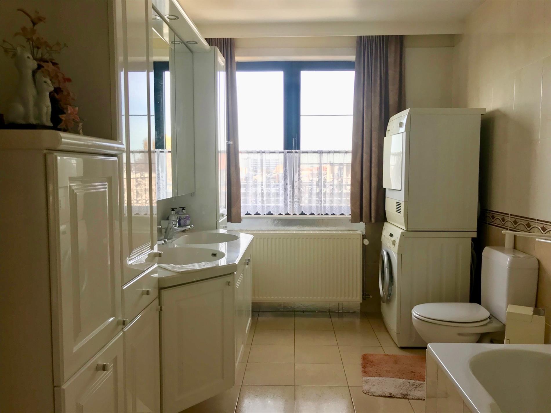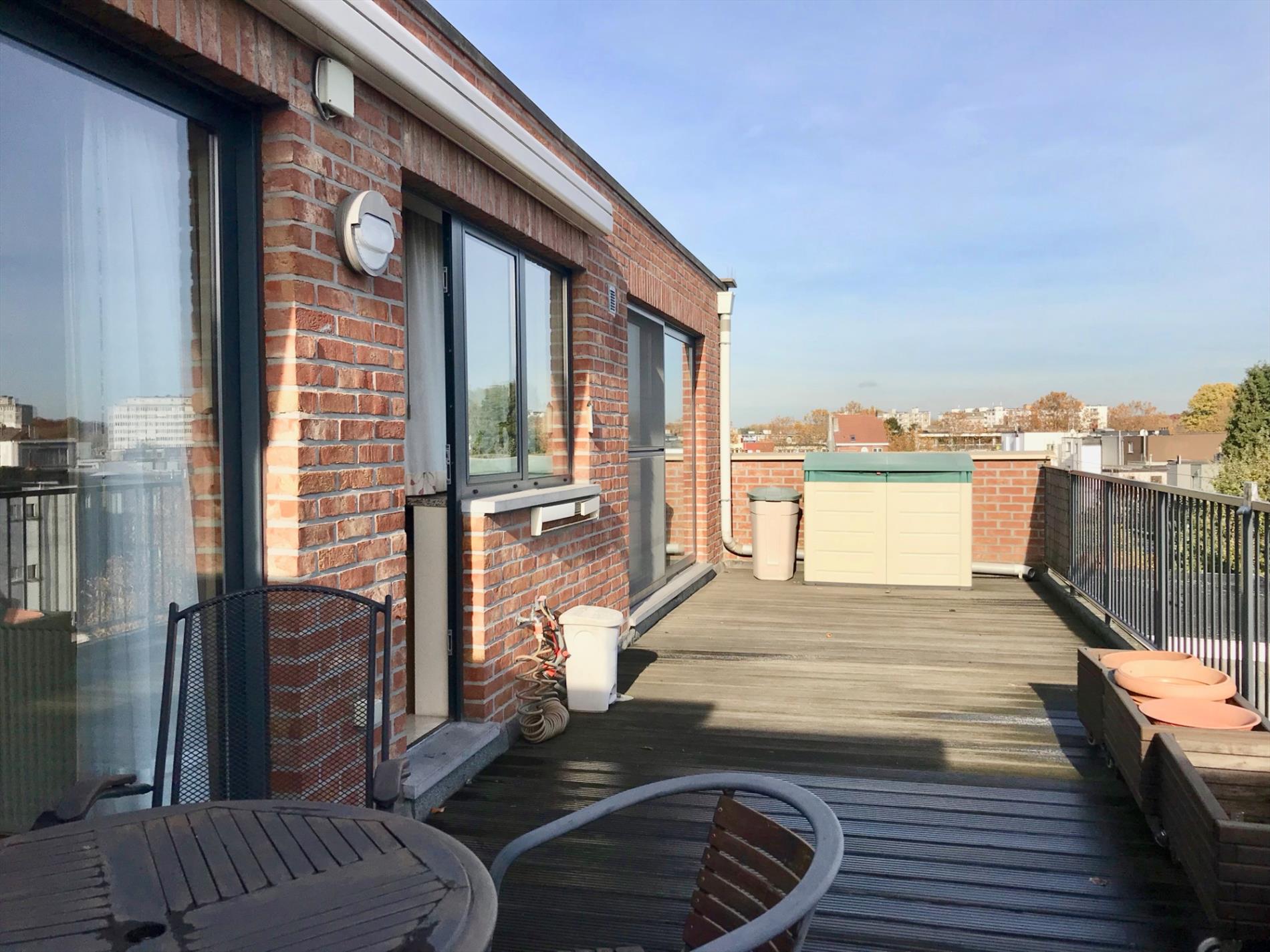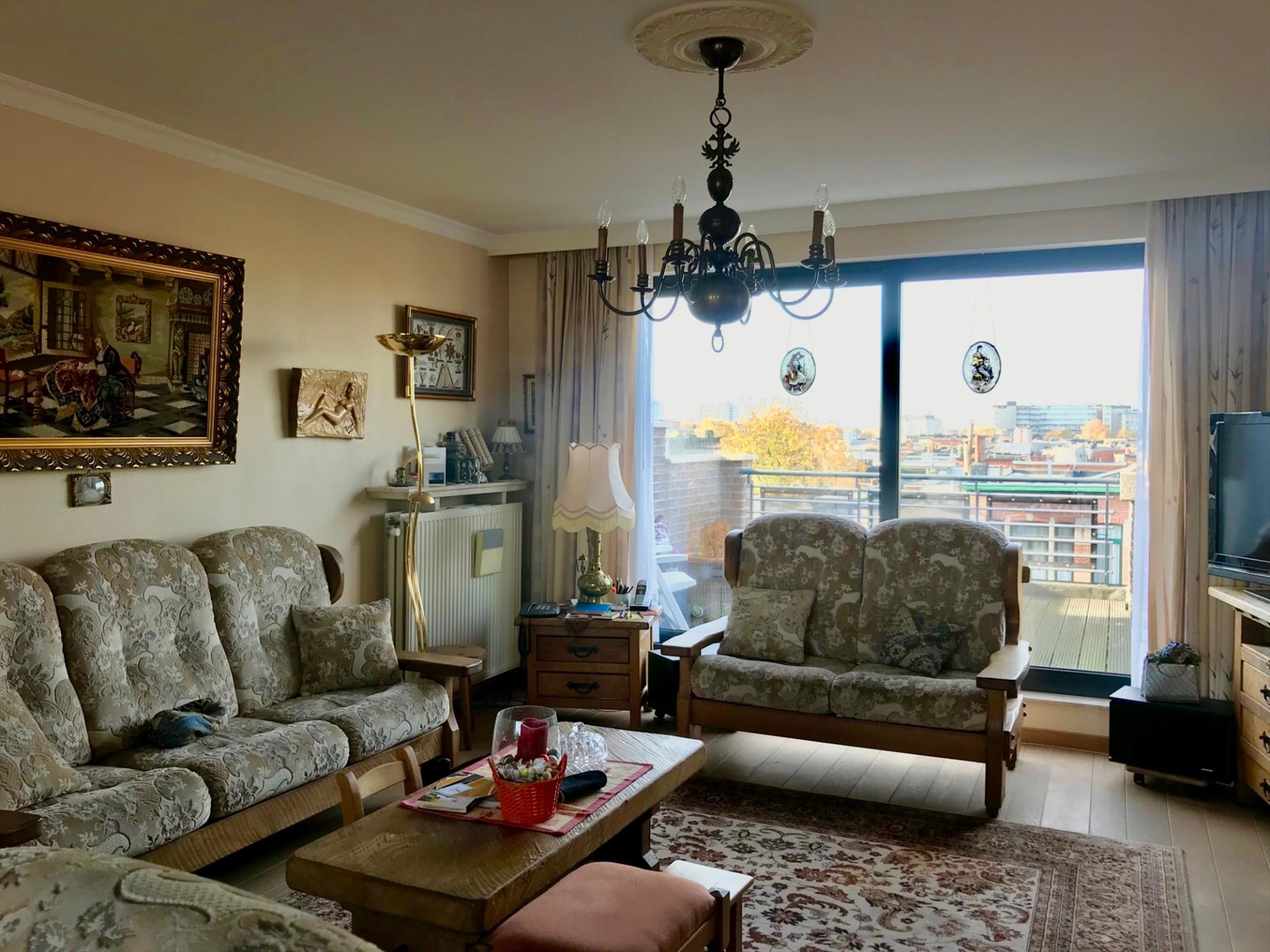 In een rustige straat bevindt zich dit penthouse op de 4e verdieping van een recent gebouw. Met de lift komt men rechtstreeks in het appartement uit. Via de centraal gelegen inkom met gastentoilet en vestiaire, bereiken we de aangename woon- en eetkamer 40m² op parket en aansluitend 2 terrassen (34m² en 46m²). Nabij de eetkamer bevindt er zich een halfopen eiken keuken met granieten werkblad. Er zijn 2 slaapkamers (9m² en 19m²) waarvan de hoofdslaapkamer met terras. De ruime badkamer 14m² is voorzien van een ligbad, toilet, aparte douche en meubel met dubbele lavabo. Via een afgesloten poort van het gebouw is er toegang tot een achterliggende privatieve garagebox 22m² met voorliggende staanplaats. Dewelke beiden verplicht mee aan te kopen zijn aan €25 000. (totale verkoopprijs € 320 000 = verkoopprijs appartement € 295 000 + garagebox met extra staanplaats € 25 000).