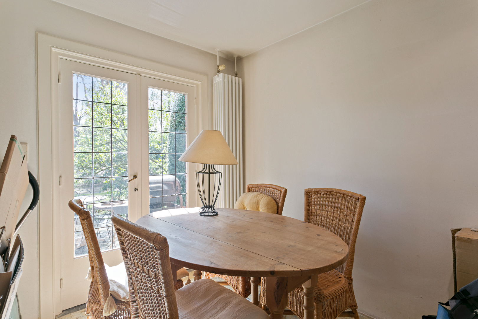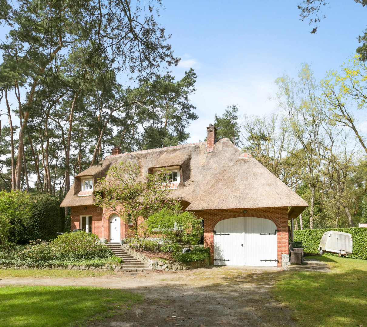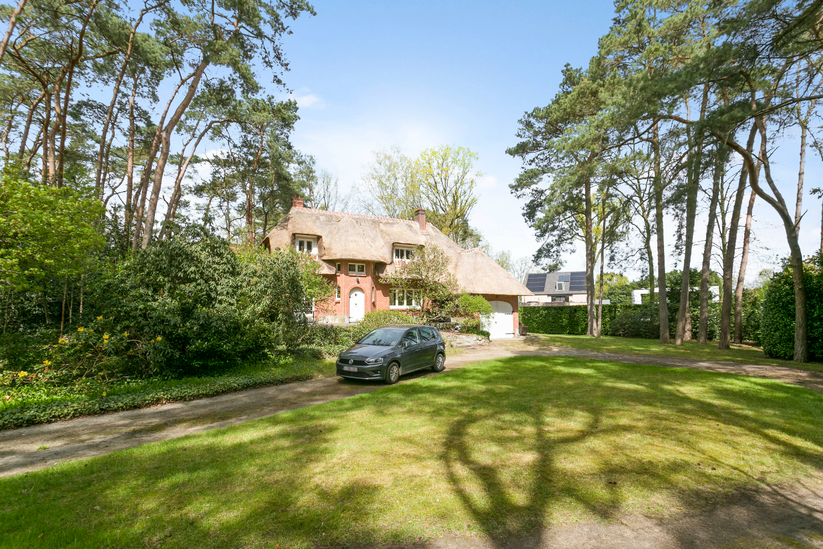 Via de oprijlaan bereik je deze rietenkap woning die omgeven is door het groen. Indeling: inkomhal met statige trap en openslaande deuren met sierglas naar de woonkamer, keuken en aparte eetkamer. Vanuit de functioneel ingerichte keuken is er toegang tot een bergplaats met gastentoilet. De sfeervolle woonkamer biedt een zee van ruimte en veel natuurlijk lichtinval. Bovendien is er een apart bureel en een inpandige garage. Op de eerste verdieping bevinden er zich 2 slaapkamers (19m² en 8m²), een aparte dressing en een badkamer met ligbad en douche. Het is aangenaam vertoeven in de tuin door het zonovergoten terras en de grote bomen. Deze villa is gunstig gelegen nabij Kattenhoflaan en diverse uitvalswegen. Bent u geïnteresseerd en wilt u graag een bezoek komen brengen aan het pand? Aarzel dan niet om contact met ons op te nemen.