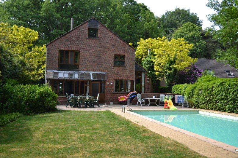 Gunstig gelegen woning met parktuin en zwembad op een perceel van ca.2456m². Inkom, woon- en eetkamer met niveau en toegang tot 2 terrassen, ing keuken met eethoek en fraai uitzicht naar de tuin, aparte bergplaats en douchekamer, inpandige garage en kelder en voorraardkamer. Verd 1: overloop met bureel/speelhoek, 4 slpk waarvan 3 met duplex niveau (16m² en 9m²), ing badkamer met ligbad. Bijzonderheden: oprijlaan, verwarmd zwembad, tuinbergplaats, vloerverwarming. open ruimte/loftstijl. EPC 154 KwH/m² UC: 605403 Wp, Vg, Gdv, Gvkr, Gvv. Meer info 0496/49 88 35