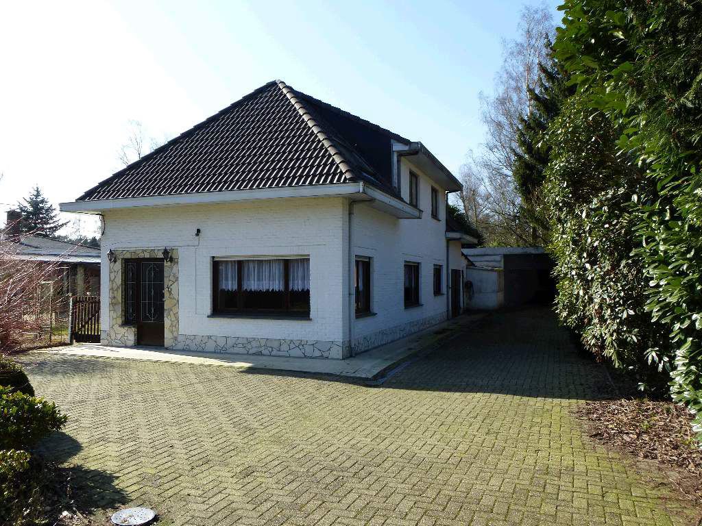 Rustig gelegen landhuis op 1088 m² te Schoten, grens met St-Job-in-'t-Goor. De woning dient gemoderniseerd te worden. Dak vernieuwd in 2000. Gelijkvloers: inkomhal, woonkamer, eenvoudige keuken, slaapkamer, eenvoudige badkamer met ligbad en lavabo, apart toilet en wasplaats. Aangebouwde veranda, werkplaats, garage. Verdieping: eenvoudige 2e keuken en 2e badkamer met ligbad, lavabo en wc, 3 kamers. Bijzonderheden: gelijkvloers rolluiken, overeal houten ramen met enkele beglazing. 2 branders (1mazout en1 gas). EPC 824 Kwh/m² UC:1169807. Vg, Wg, Gdv, Gvv, Gvkr