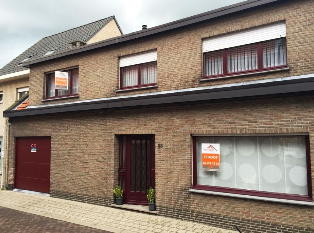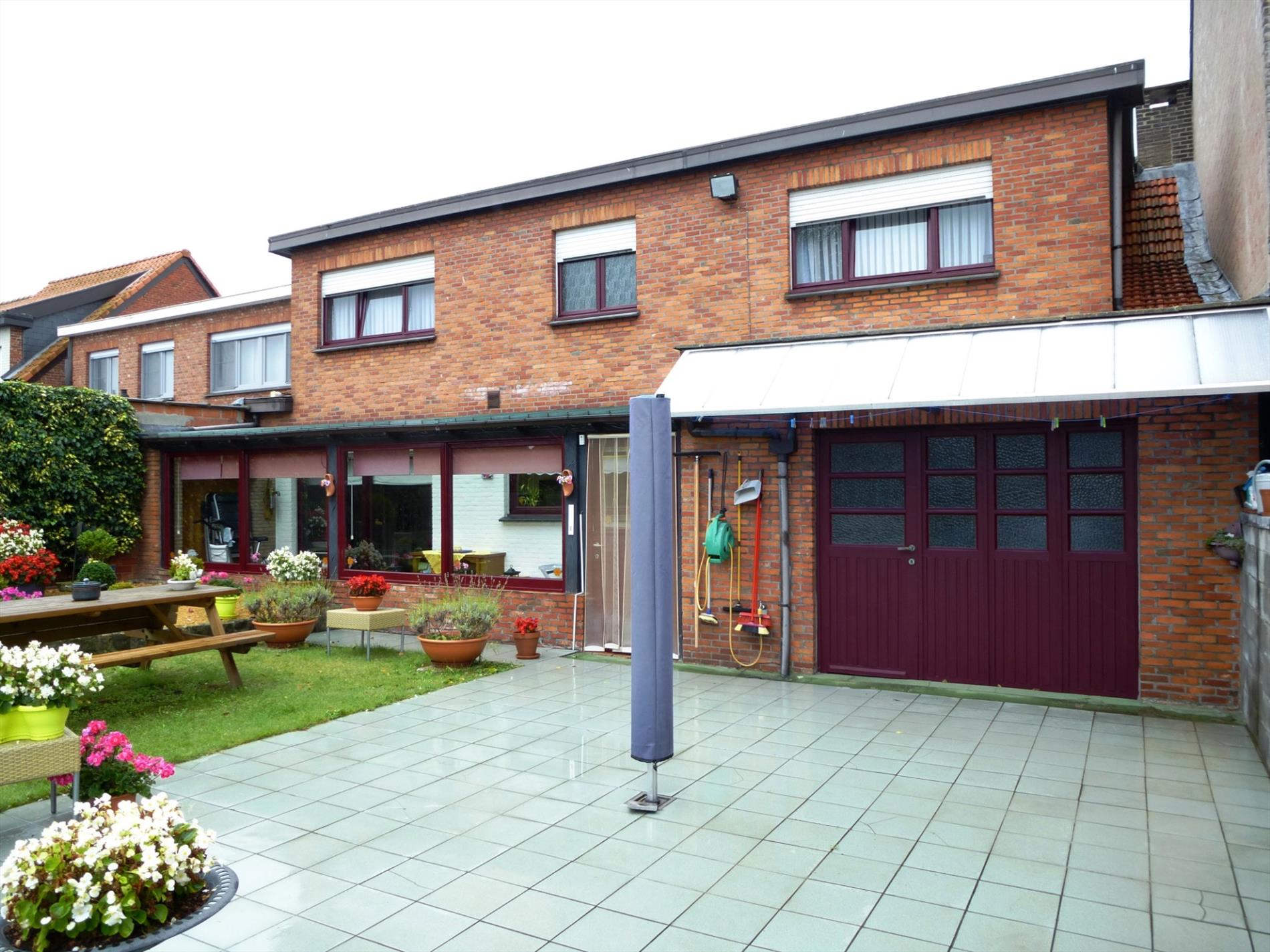 Op te frissen woonhuis gelegen op een perceel van 555m² met fraaie tuin en dubbele garage. Indeling: GVL: Inkomhal 14m² met ingebouwde kastenwand en gastentoilet. Aangename leefruimte 36m² met gashaard en eetkamer. Aansluitend de eetkamer is er een veranda 15m². Een aparte keuken 14m² voorzien van toestellen en achteringang. Een inpandige garage 36m² met automatische poort. 1eV: Nachthal 17m², 4 slaapkamers (13m², 14m², 16m² en 16m²), vernieuwde badkamer (8m²) met ligbad, douche, wastafel en toilet. Tevens is er een toegangsluik om de bergzolder te bereiken. Bijzonderheden: in de achtertuin is er garagebox met toegangspoort naar de achterliggende straat. Deze woning met veel potentieel is gelegen in een éénrichtingstraat op een gunstige locatie nabij het centrum.