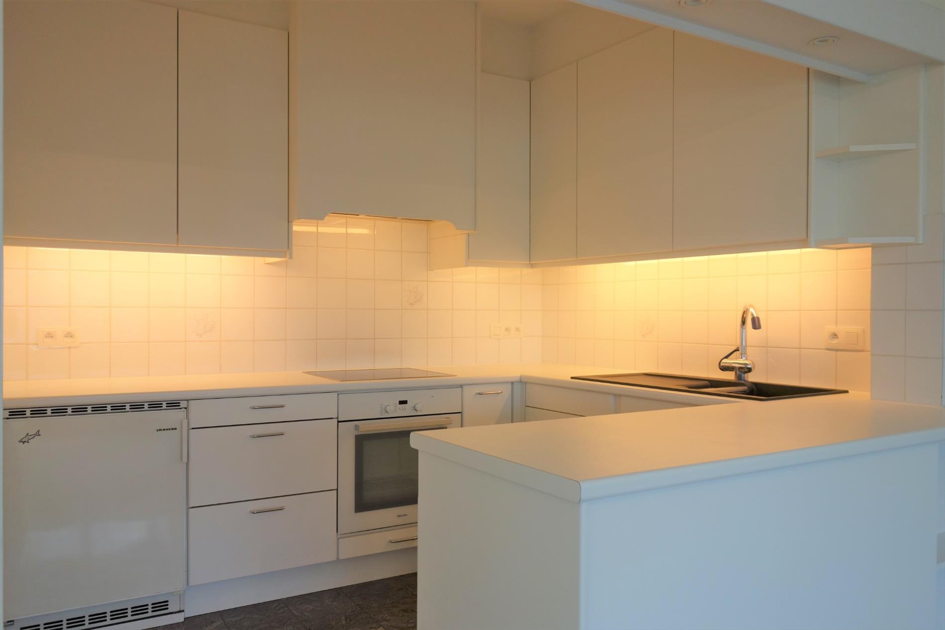 Dit lichtrijk appartement is gelegen op de eerste verdieping van een kleinschalig verzorgd gebouw zonder lift. Indeling: een inkomhal 10m² met ingebouwde vestiairekast en een apart gastentoilet met handenwasser. Een aangename woon- en eetkamer 33m² voorzien van zonnewering aan de raampartijen. Een open keuken ingericht met een elektrische kookplaat, een oven, een koelkast, een vaatwasser en opbergkasten. Vanuit de hal heeft u toegang tot 2 slaapkamers (11m² en 19m²) met een tv-aansluiting en elektrische rolluiken. Tevens is er een aparte berging met aansluiting voor uw wasmachine/droogkast en een badkamer met ligbad/douche en een dubbel wandmeubel met opbergkasten. Bijzonderheden: Lage algemene kosten (incl. provisie water). Gelegen in een rustige woonwijk, nabij het openbaar vervoer, winkels, invalswegen, de Singel, ...
