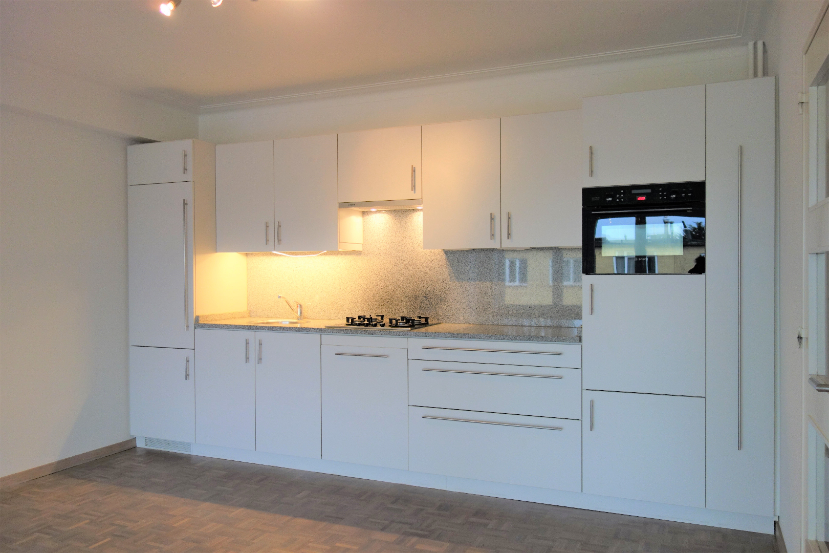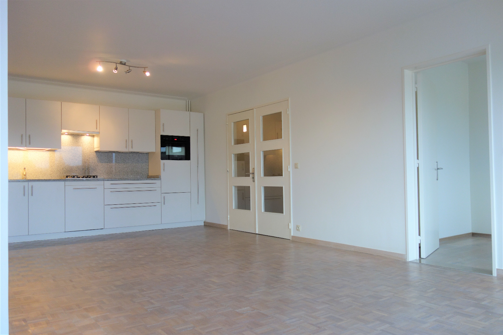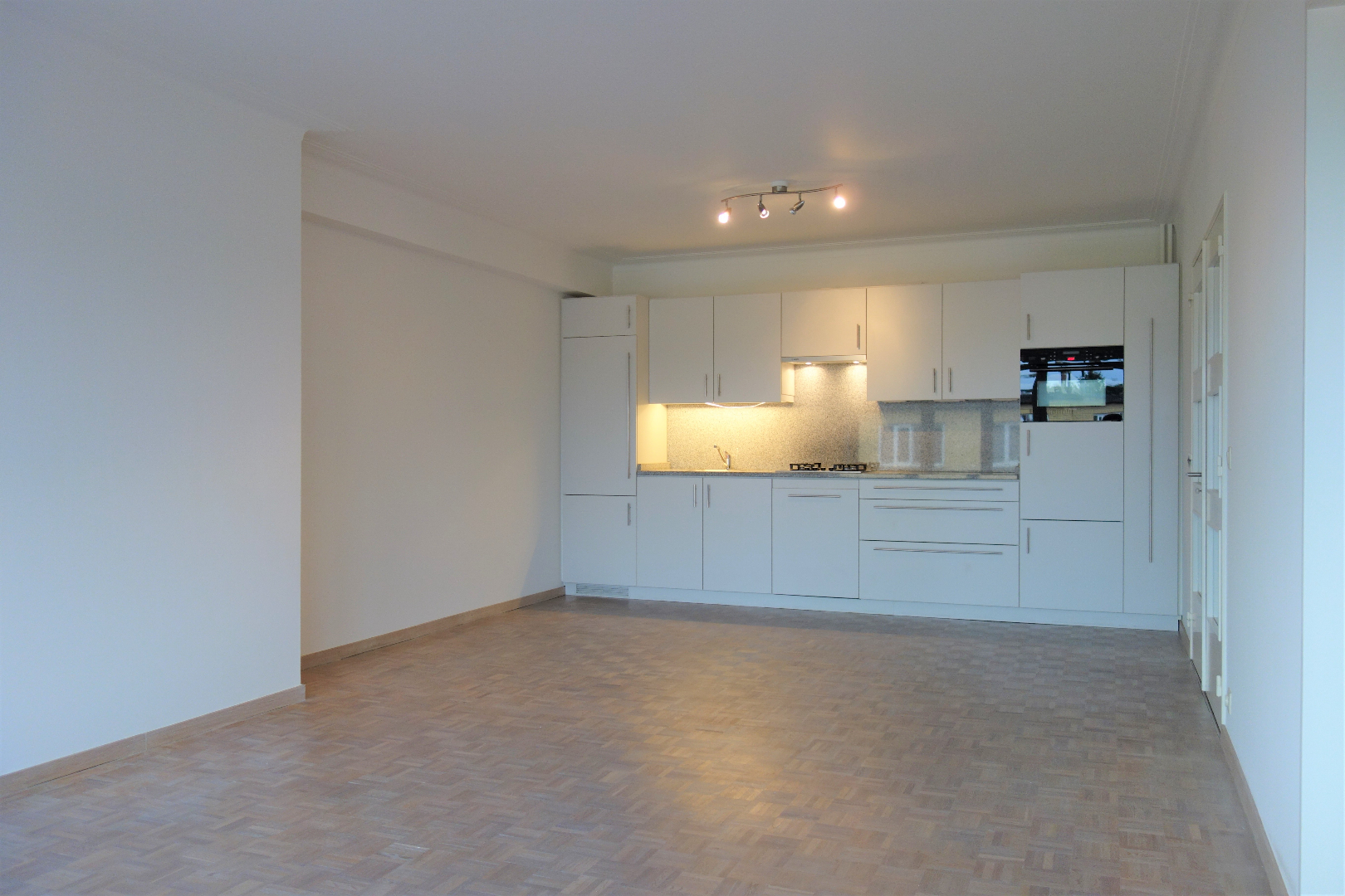 Dit prachtig appartement is gelegen op de derde verdieping van een verzorgd gebouw met lift. Indeling: een inkomhal met 2 ingebouwde kasten, een lichtrijke woon- en eetkamer 21m² op parket met een open ingerichte keuken die is uitgerust met een gasfornuis, een koelkast, een diepvries, een vaatwasser, een oven en opbergkasten. De eerste slaapkamer 8m² met handenwasser en ingebouwde kast is gelegen aan de voorzijde van het pand. Vanuit de inkomhal heeft u toegang tot een ingerichte dressing, een badkamer 7m² die voorzien is van een douche, een ligbad, een toilet en een wandmeubel en een achtergelegen slaapkamer 14m² met een elektrische rolluik op laminaat. Vanuit de slaapkamer heeft u toegang tot het terras 5m². Tevens heeft u in de ondergrondse verdieping een privatieve kelderberging ter beschikking. De algemene kosten omvatten o.a. liftgebruik, collectieve verwarming, ,... Zeer centraal gelegen, op een boogscheut van winkels, het openbaar vervoer, het Rivierenhof, invals- en autosnelwegen, ...