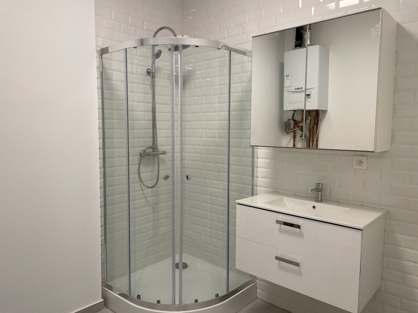 Dit knus appartement is gelegen op de derde verdieping van een gebouw zonder lift. Indeling: een inkomhal met apart toilet en handenwasser, een woon- en eetkamer 16m² met aangrenzend een open ingerichte keuken die is uitgerust met een koelkast, een diepvries, een elektrisch kookplaat en een oven. Een achtergelegen slaapkamer 12m² en een badkamer die voorzien is van een douche, een wandmeubel en een aansluiting voor uw wasmachine/droogkast. Tevens heeft u in de ondergrondse verdieping een privatieve kelderberging ter beschikking. Op een steenworp van het openbaar vervoer, winkels, de Kaaien, ...