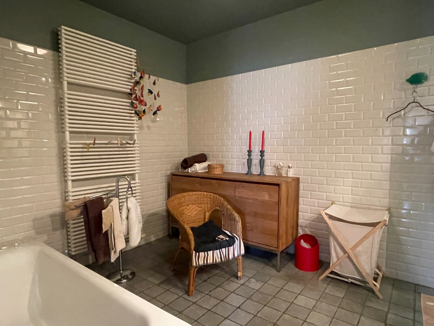 een inkomhal met gastentoilet, royale woon- en eetkamer 45m² met veel lichtinval en aansluitend een balkon, een ingerichte keuken met aparte technische berging en aansluiting voor een wasmachine en droogkast. De comfortabele badkamer is voorzien van een dubbel wandmeubel met lavabo, een douche en een ligbad. Er zijn 3 slaapkamers (20m², 12m² en 12m²) waarvan 1 kamer met toegang tot het terras. Troeven: inclusief privatieve garagebox, nabij winkels, park, eetgelegenheden, openbaar vervoer, ...