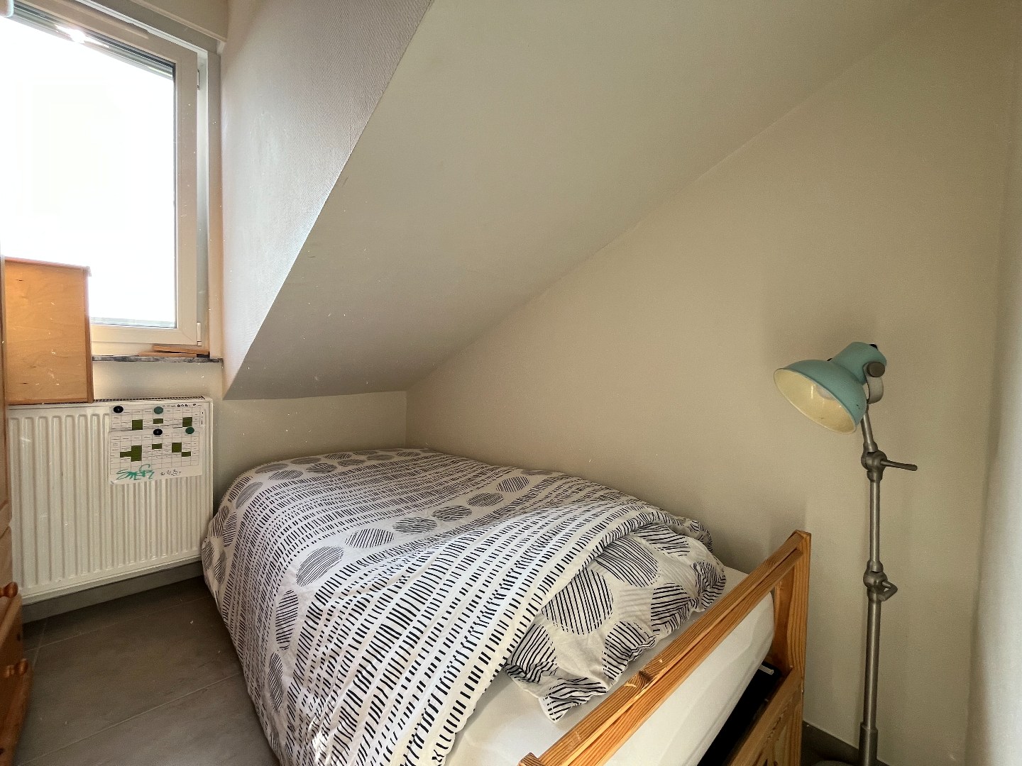 Dit instapklaar appartement is gelegen op de tweede verdieping van een kleinschalig gebouw zonder lift. Indeling: een inkomhal met apart toilet, een woon- en eetkamer 26m² op tegel, een keuken 7m² die uitgerust is met een gasfornuis, een oven, een vaatwasser, een koelkast en opbergkasten. Vanuit de inkomhal heeft u toegang tot de hoofdslaapkamer 10m², een kinderkamer anex bureau 6m² en een badkamer die voorzien is van een douche, een wandmeubel en een aansluiting voor uw wasmachine/droogkast. Tevens is er een ruime privatieve garagebox 23m² aan het eigendom verbonden. Zeer centraal gelegen, op een boogscheut van het openbaar vervoer, winkels, scholen, invalswegen en vlak over Hof De Bist waar u gezellig kan vertoeven.