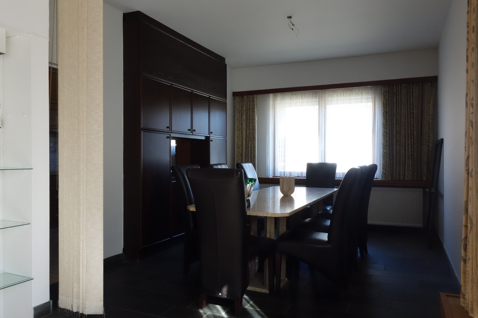 Dit degelijk en ruim appartement is gelegen op de gelijkvloerse verdieping van een kleinschalig en verzorgd gebouw zonder lift. Indeling: een inkomhal met ingebouwde kastenwand en een apart toilet en handenwasser, een woonkamer (42m²) op parket met ingebouwde kastenwand en surround-systeem en een hogergelegen eetkamer (15m²) op tegel met eveneens een ingebouwde kastenwand. De keuken (13m²) is uitgerust met een koelkast, een vaatwasser, een inductievuur, een microgolf, een oven en talrijke opbergkasten. Vanuit de nachthal heeft u toegang tot de badkamer die voorzien is van een ligbad/douche en een dubbel wandmeubel met opbergkasten, 3 achtergelegen slaapkamers (16m², 17m² en 20m²) met ingebouwde kastenwand, een wasplaats met aansluiting voor uw wasmachine/droogkast en een Zuid-West georiënteerde tuin met terras. Het eigendom zal deels gemeubeld verhuurd worden zoals op foto. De algemene kosten omvatten o.a. privatief waterverbruik en verwarming. Gelegen in een rustige woonwijk, nabij de Boomsesteenweg met zijn vele winkels, op een ...