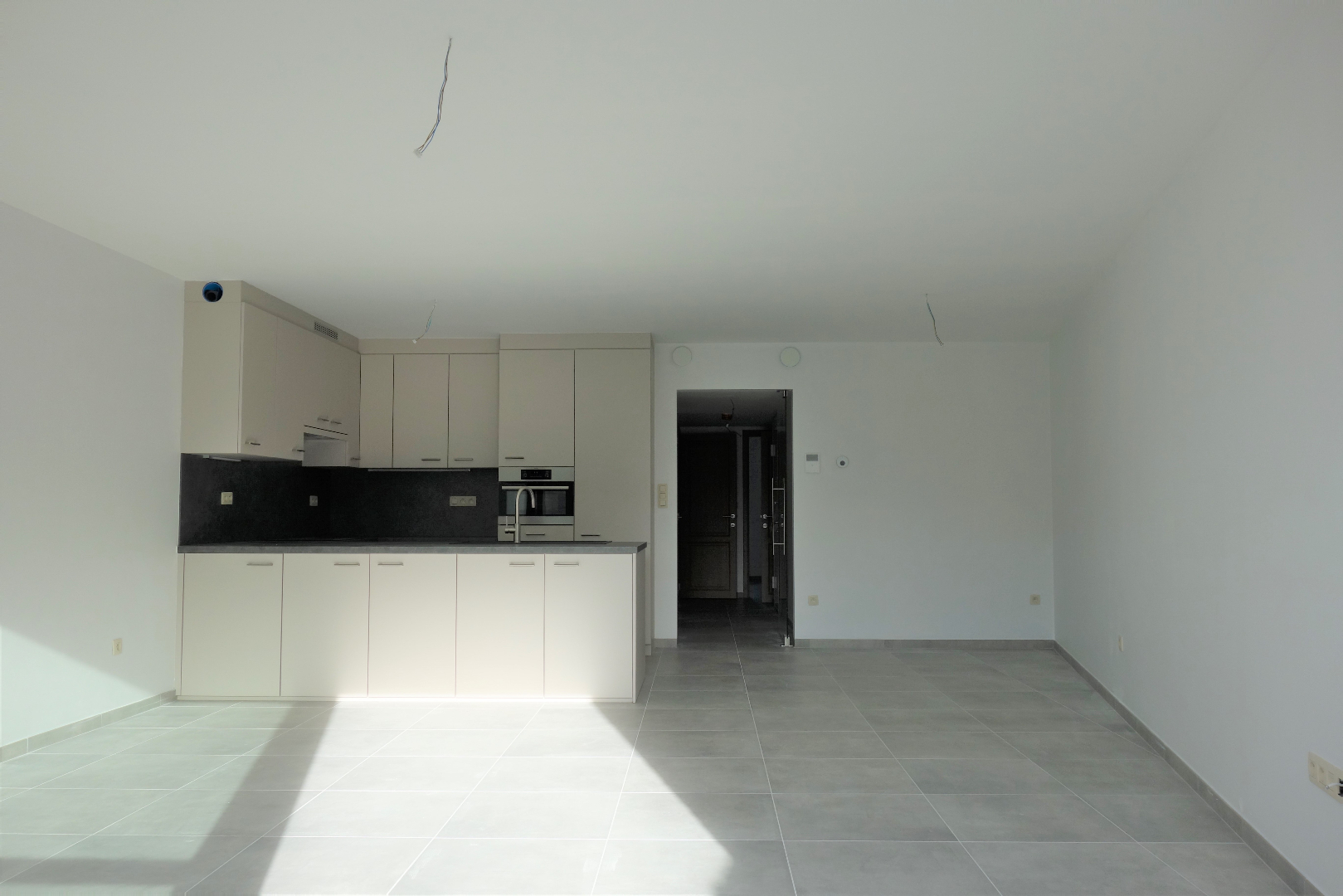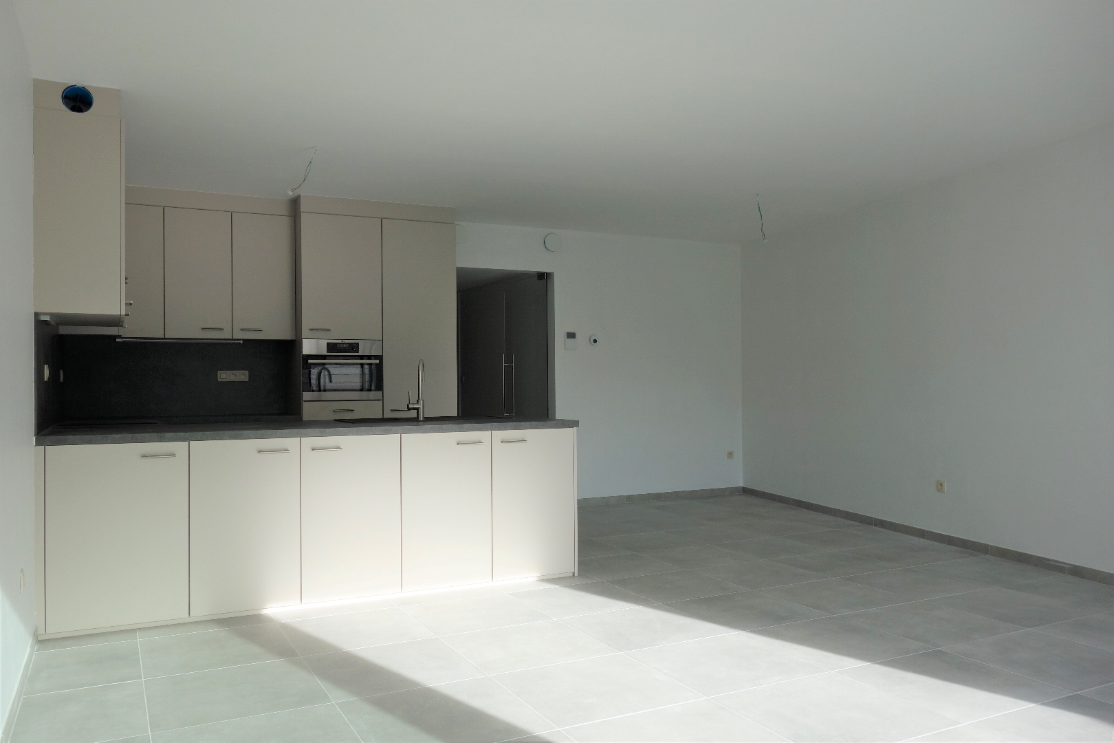 Dit gelijkvloers nieuwbouwappartement maakt deel uit van residentie 'Het Dorp', waarbij men extra aandacht heeft geschonken aan het gebruik van duurzame materialen. Indeling: een inkomhal met apart toilet en handenwasser, een lichtrijke woon- en eetkamer 37m² met toegang tot de Zuid-georiënteerde tuin, een open ingerichte keuken 8m² die is uitgerust met een koelkast, een diepvries, een inductievuur, een vaatwasser, een combi-oven en opbergkasten. Vanuit de inkomhal heeft u toegang tot de wasplaats met aansluiting voor uw wasmachine/droogkast, 2 slaapkamers (12m² en 13m²) en de badkamer die voorzien is van een inloopdouche en een wandmeubel met spiegelkast. Extra troeven: vloerverwarming over heel het appartement, 2 autostaanplaatsen en er zal nog een tuinhuis geplaatst worden. Op een boogscheut van winkels, het openbaar vervoer, invals- en autosnelwegen, scholen, ...