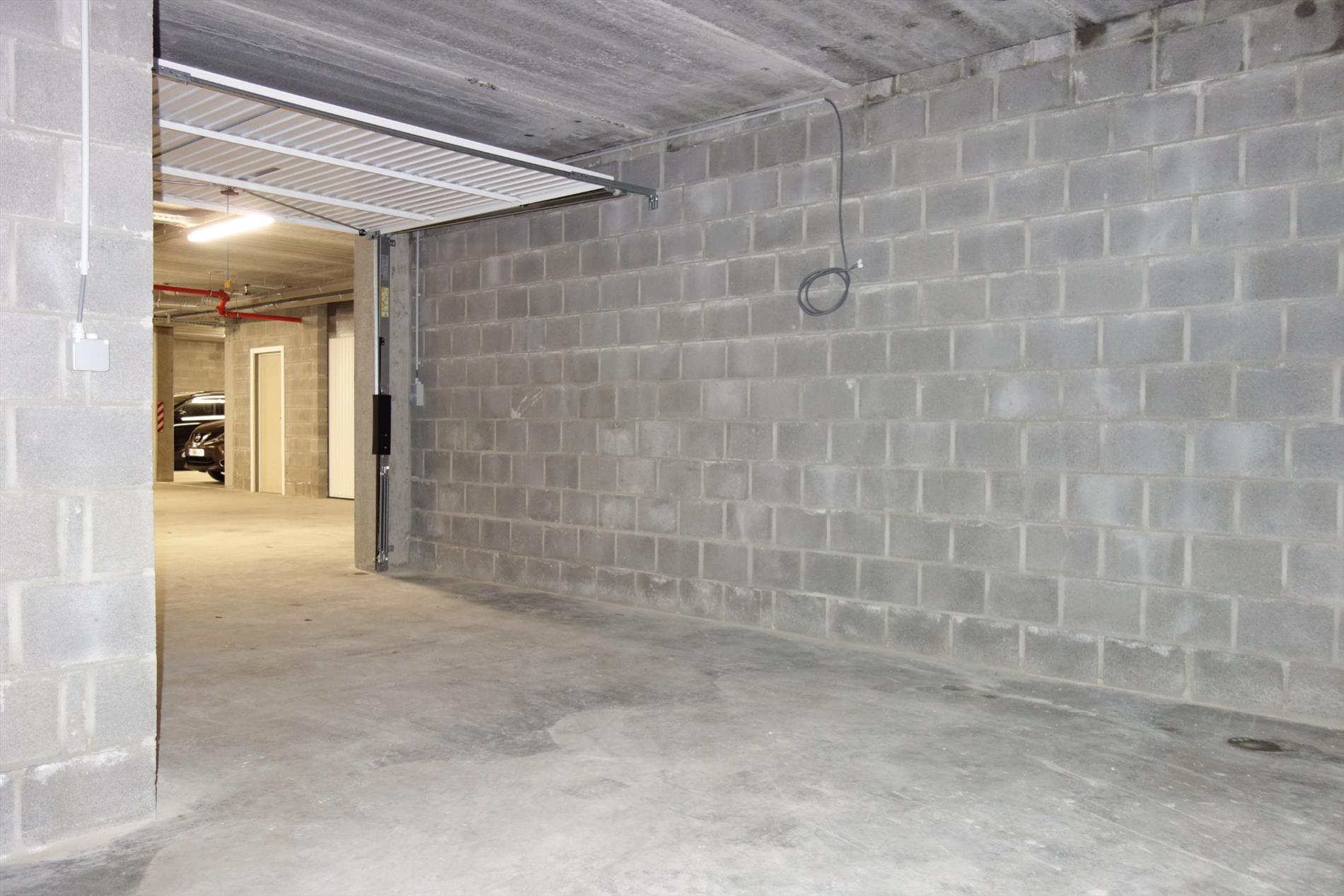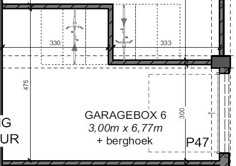 De garagebox met berghoek/stockageruimte is gelegen in het centrum te Sint-Job-in-'t-Goor. De ondergrondse parking is toegankelijk via de Handelslei en er is een vlotte toegankelijkheid in het complex. De ligging van het perceel is in de nabijheid van de N115 en de E19. De garagebox bevindt zich in de ondergrondse verdieping en omvat een afgesloten parkeerruimte met handbediende kantelpoort, een lichtpunt met 1 bediening en een stopcontact. De basishuurprijs bedraagt 100 euro per maand, exclusief maandelijkse forfaitaire kosten 10 euro voor de gemeenschappelijke delen. Het verbruik van de individuele elektriciteit wordt privatief afgerekend.