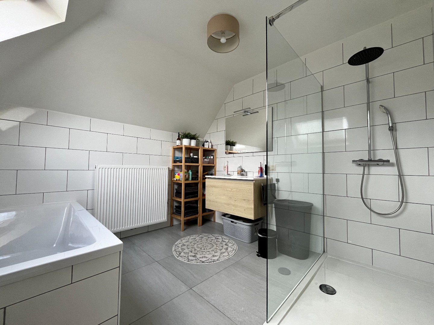 Instapklare halfopen woning met fraaie voor- en achtertuin op een unieke locatie te Brasschaat nabij Mishagen-Ploegsebaan. Indeling: inkomhal met gastentoilet, technische ruimte en aparte wasplaats. Een woon- en eetkamer 45m² met trap naar verdieping en veel lichtinval door de grote raampartijen. Een aparte woonkeuken voorzien van hedendaags comfort met toegang tot het overdekt terras. Tevens is er een multifunctionele ruimte anex bureel of 3e slaapkamer 19m² voorzien van een wastafel. De eerste verdieping omvat een nachthal, 2 slaapkamers (15m² en 17m²) op laminaat, een doorloopkamer met ingebouwde kastenwand. Een badkamer ingericht met ligbad, aparte douche, wandmeubel met lavabo en 2e toilet. Bijzonderheden: oprijlaan met poort, carport, buitenberging en achtertuin.
