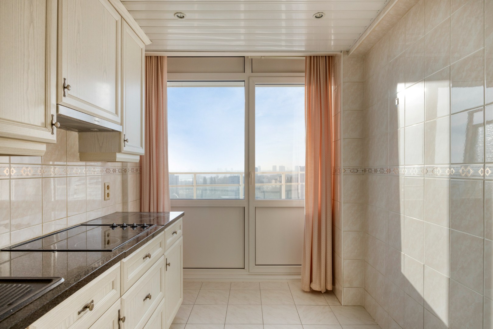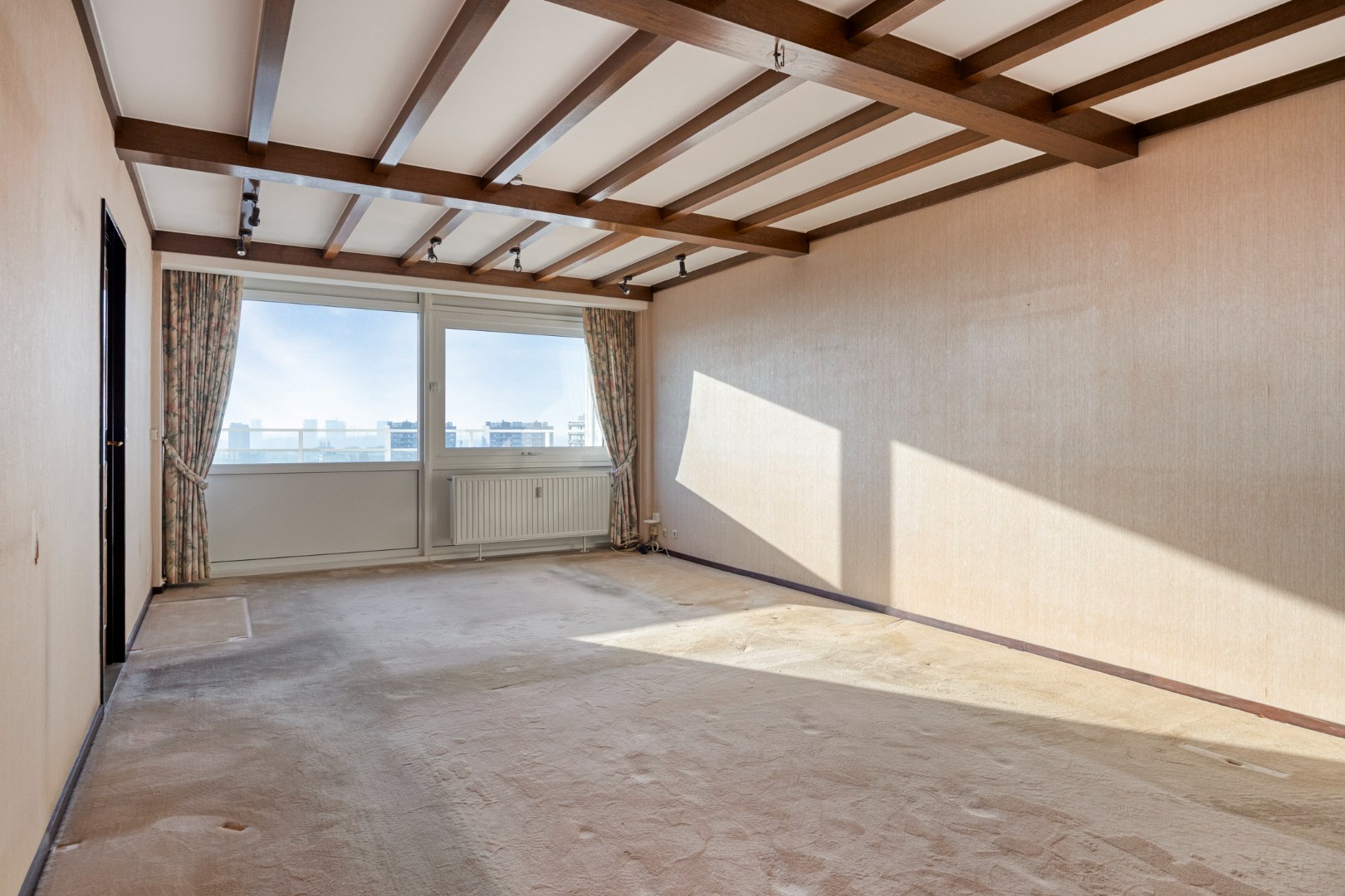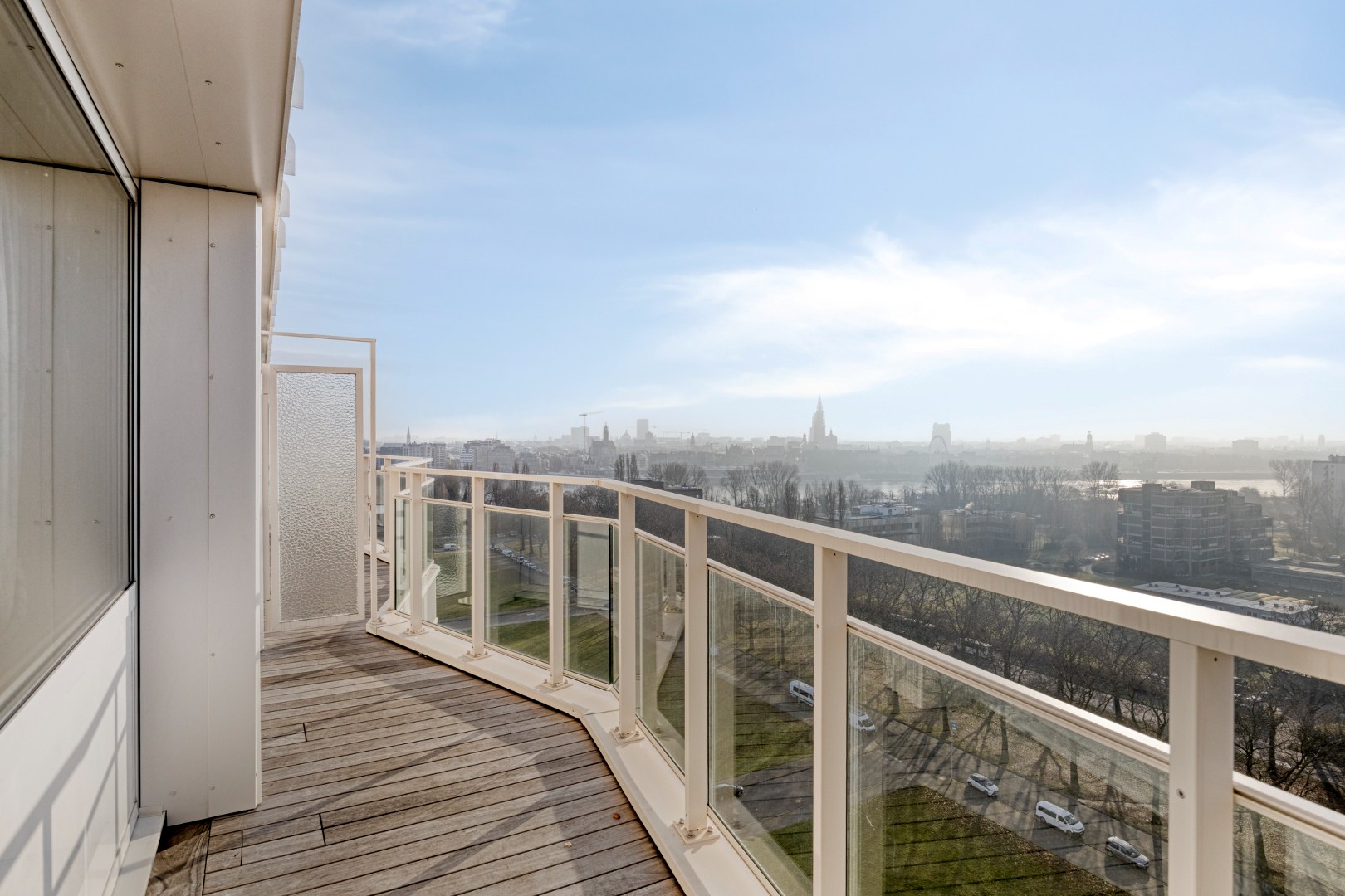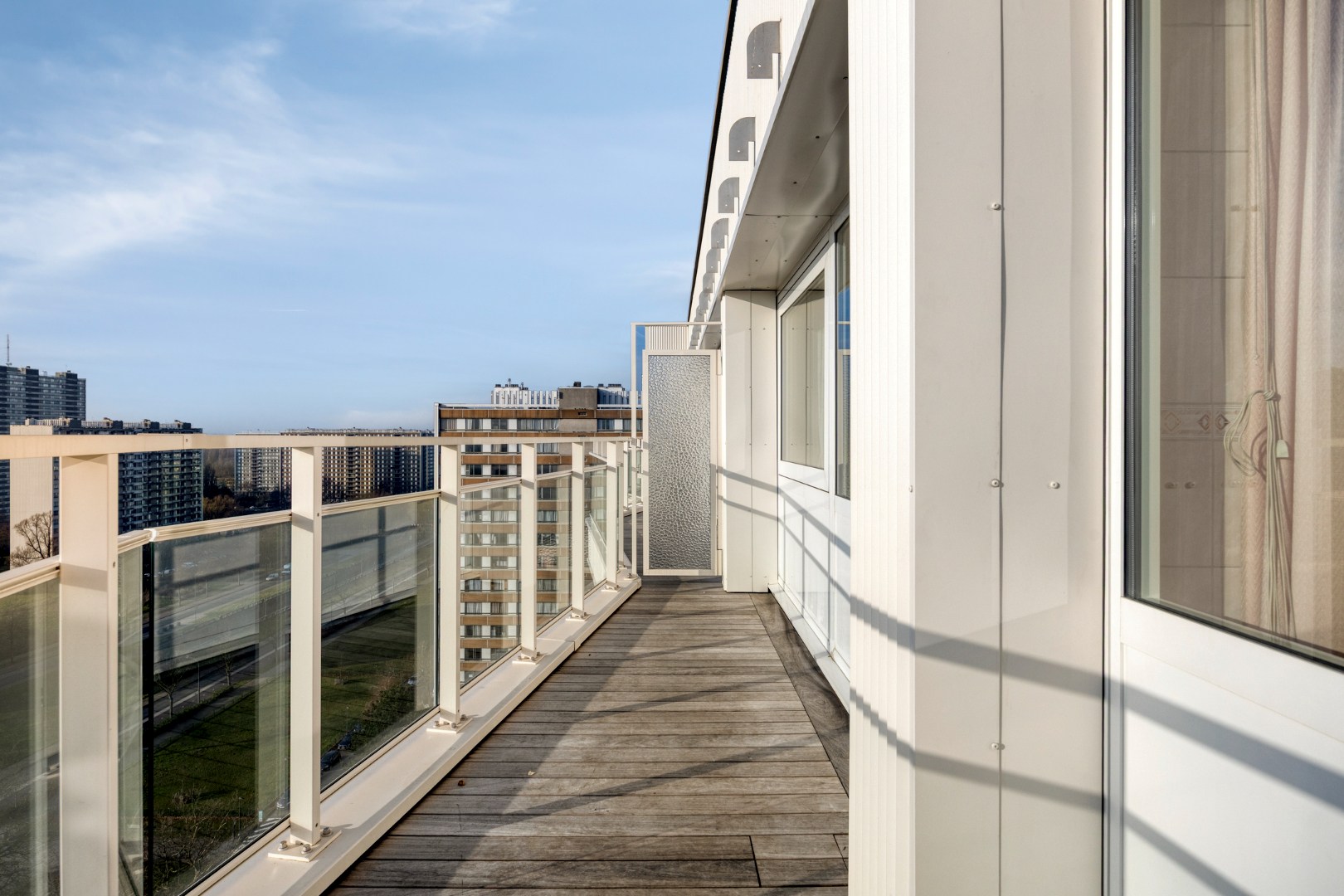 Dit appartement is gelegen op de vijftiende verdieping van een verzorgd gebouw met lift en biedt een comfortabele indeling, veel lichtinval en een gunstige ligging. Indeling: een inkomhal met een ingebouwde kastenwand en een apart toilet. Een ruime en lichtrijke woon- en eetkamer 30m² met aansluitend de keuken, die is uitgerust met een koelkast, een diepvriezer, een elektrisch fornuis, een oven, een microgolfoven en talrijke opbergkasten. Het appartement telt twee slaapkamers van respectievelijk 17 m² en 10 m². De badkamer is voorzien van een bad met douchescherm, een wastafel en een aansluiting voor wasmachine en droogkast. Aan zowel de voor- als achterzijde van het appartement bevindt zich een terras, waar u kan genieten van een prachtig open uitzicht. Troeven: inclusief ondergrondse privatieve autostaanplaats, de gevels zijn recent gerenoveerd, elektriciteit is conform.