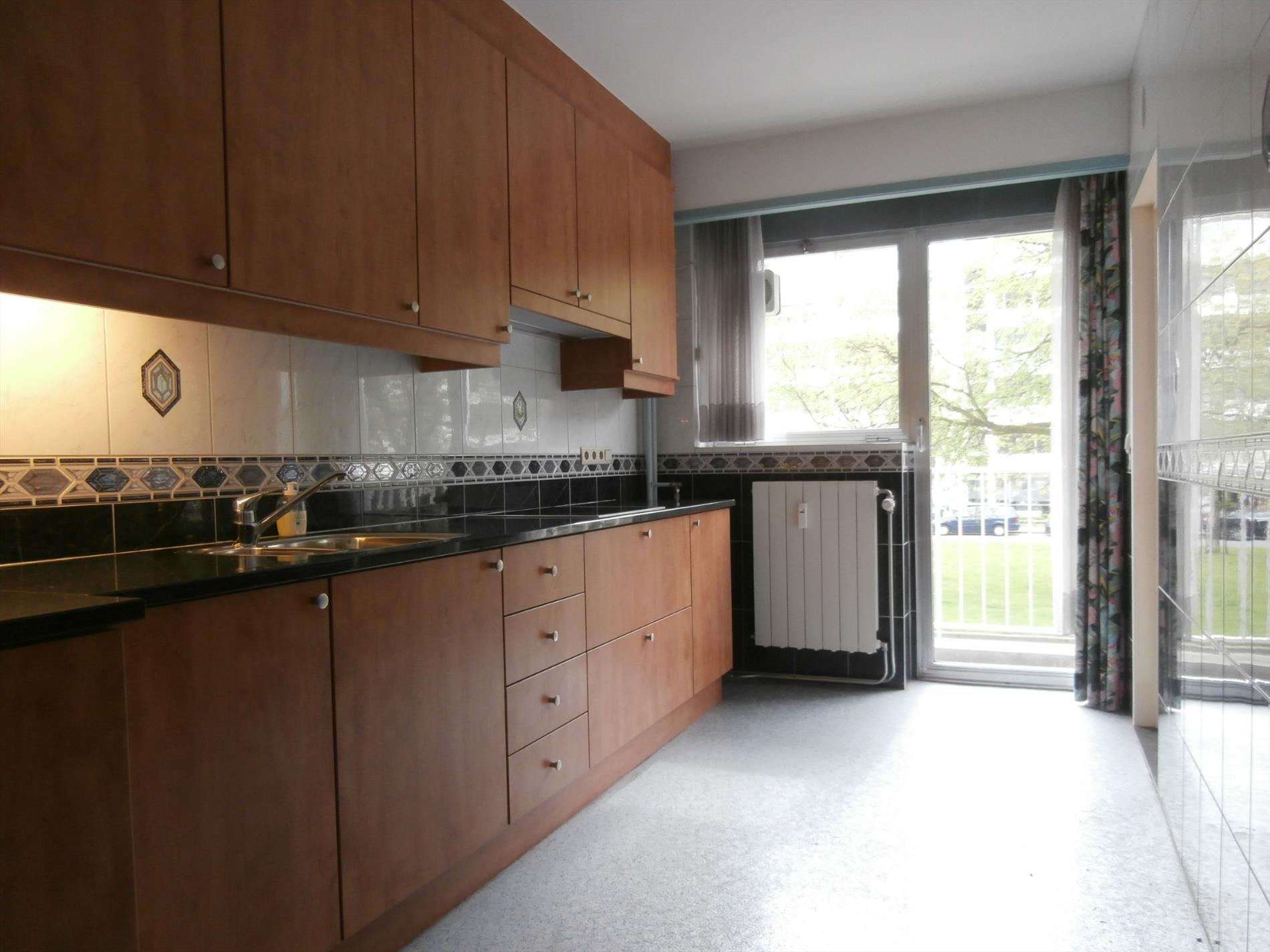 Het 2 slpk- appartement is gunstige gelegen nabij de diverse handelszaken, scholen en het openbaar vervoer. Indeling: Inkomhal met gastentoilet, vestiaire, een ingebouwde linnenkast en een aparte berging. Een aangename woon- en eetruimte (42m²) op parket, een aparte vernieuwde ingericht keuken (8m²). Nachthal, 2 slaapkamers (13m² en 17m²) en een badkamer met ligbad, lavabo en 2e toilet. Bijzonderheden: lift aanwezig in het gebouw, voor- en achteraan een terras, een privatieve bergkelder, veel natuurlijk lichtinval in het appartement, op wandelafstand van het openbaar vervoer.