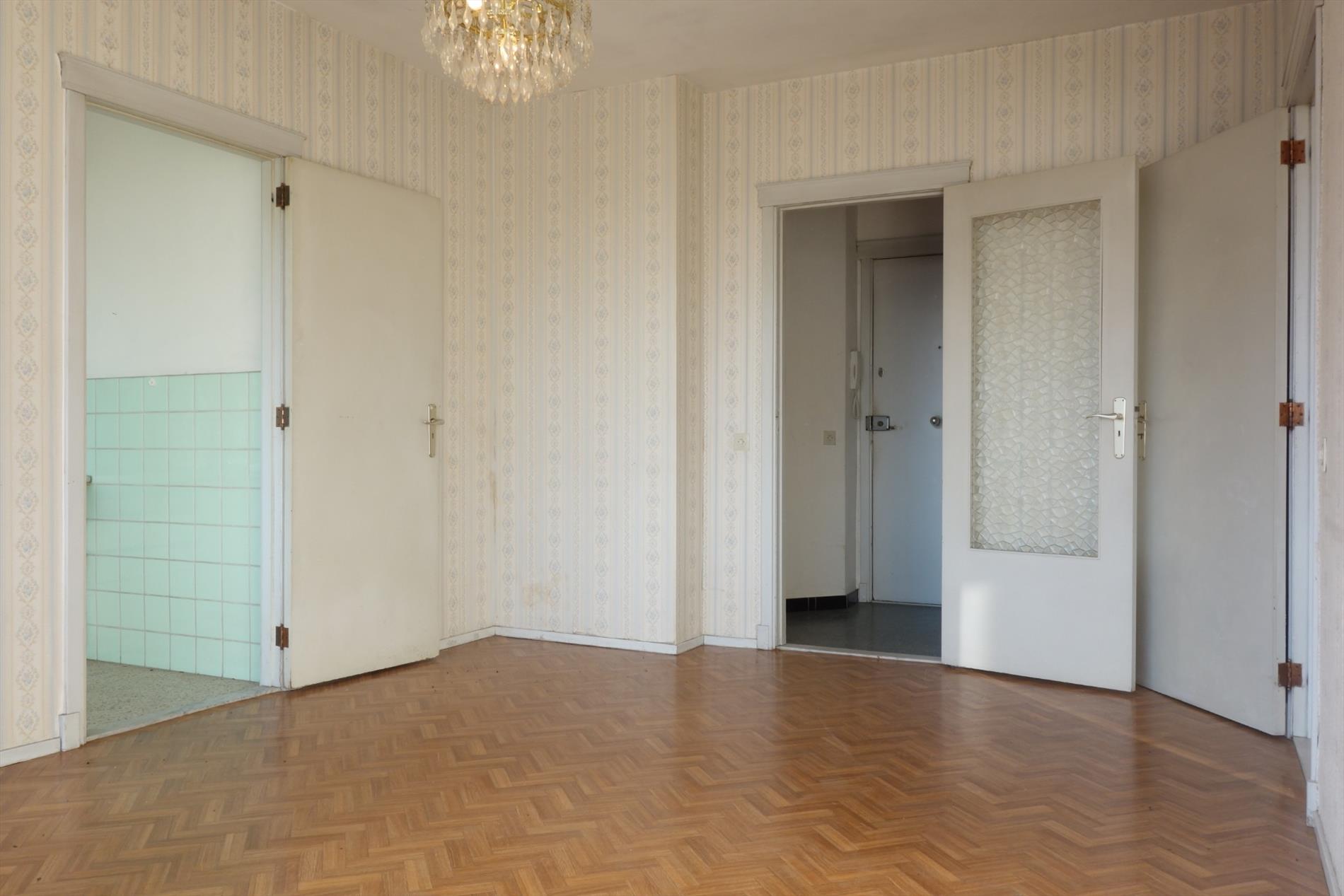 Dit op te frissen appartement bevindt zich op de 5de verdieping en heeft daardoor een uniek open uitzicht. Het appartement is gelegen op een interessante locatie in de nabijheid van winkels, scholen, openbaar vervoer (tram, trein en bus) alsook de autoring rond Antwerpen. Indeling: Inkomhal met ingemaakte vestiaire, een leefruimte 18m² met grote raampartij, een ingerichte keuken 6m² met gasvuur, een badkamer voorzien van een ligbad, een toilet en een lavabo. Verder bevat het appartement één slaapkamer 10m² met een overdekt balkon. Bijzonderheden: In de ondergrondse verdieping bevindt zich een privatieve kelder, het appartement dient te worden opgefrist, mits enkele goede insteken is dit een uiterst fijn appartement op een gunstige locatie.