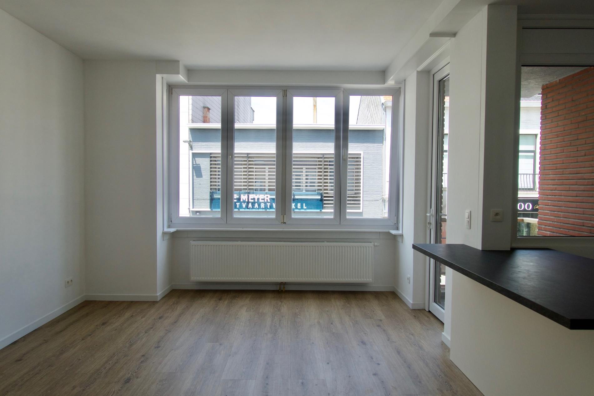 Indeling: Inkomhal, woonkamer 22m² met toegang tot het terras. De halfopen keuken naast de leefruimte is praktisch ingedeeld, uitgerust met kwalitatieve toestellen en beschikt over veel bergruimte. Nachthal, berging met technische installatie, 2 slaapkamers (12m² en 16m²), een comfortabele badkamer met inloopdouche, wandmeubel met lavabo en een toilet. In de ondergrondse verdieping zijn er 2 privatieve kelders beschikbaar. Het appartement werd in 2018 volledig vernieuwd met hoogwaardige materialen en een moderne, frisse look. Dit instapklaar appartement biedt een ideale starterswoonst of investeringsobject.