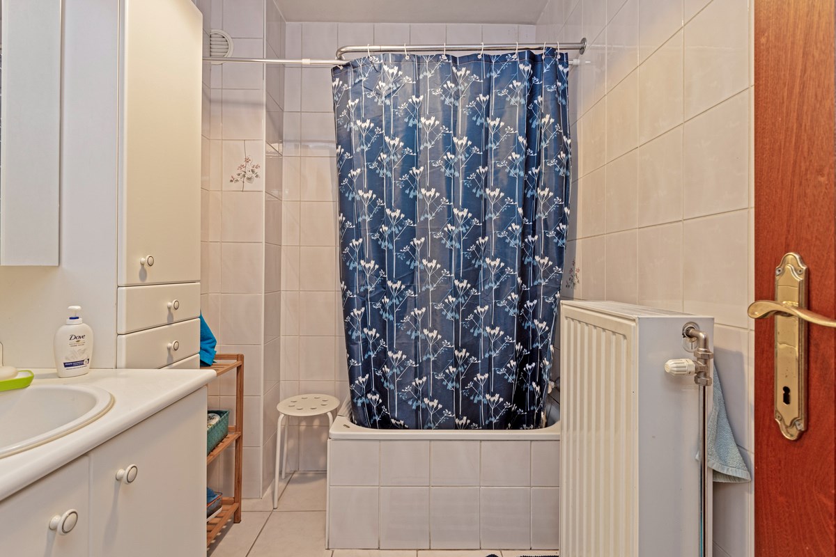 Dit appartement is gelegen op de eerste verdieping in een zeer rustige en groene dreef van Brasschaat-Mariaburg. Indeling: een inkomhal met apart toilet met handenwasser, een functionele bergplaats met aansluiting wasmachine, een woonkamer 32m² op laminaat, een keuken uitgerust met een koelkast met diepvries, kookplaat op gas, een dampkap. De badkamer op tegel is voorzien van een douche en een wandmeubel met kolomkasten. Tevens zijn er 2 slaapkamers (8m² en 15m²) voorzien van rolluiken en dewelke beide uitgeven op een ruim terras van 14m². In het bijgebouw achteraan is er een privatieve garagebox met voorziening van elektriciteit. In de ondergrondse verdieping heeft u een kelder ter beschikking van maar liefst 9m². Op een boogscheut van de Kapelsesteenweg en op wandelafstand diverse winkels, de school en het openbaar vervoer.