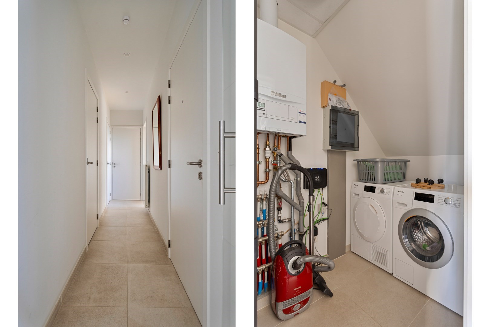 Dit instapklare appartement bevindt zich op de tweede verdieping van een kleinschalig, verzorgd en rustig gebouw met lift. De perfecte combinatie van comfort, rust en functionaliteit. Indeling: inkomhal met gastentoilet, een lichtrijke woon- en eetkamer, met toegang tot het terras 13m². Een open keuken voorzien van een vaatwasser, elektrische kookplaat, koelkast, oven en talrijke opbergkasten. Nabij de keuken is er een aparte bergplaats met aansluiting voor een wasmachine en droogkast. Er zijn 2 slaapkamers van respectievelijk 9m² en 17m². De moderne badkamer is voorzien van een inloopdouche en een wandmeubel met lavabo. Bij het appartement hoort een privatieve kelder. Er is een verplichting tot aankoop van twee privatieve autostaanplaatsen mits meerprijs van 20.000 Euro per stuk. Extra troeven: Gelegen in een rustig gebouw met lift, biedt dit appartement niet alleen veel comfort, maar ook een uitstekende ligging voor een zorgeloos dagelijks leven.