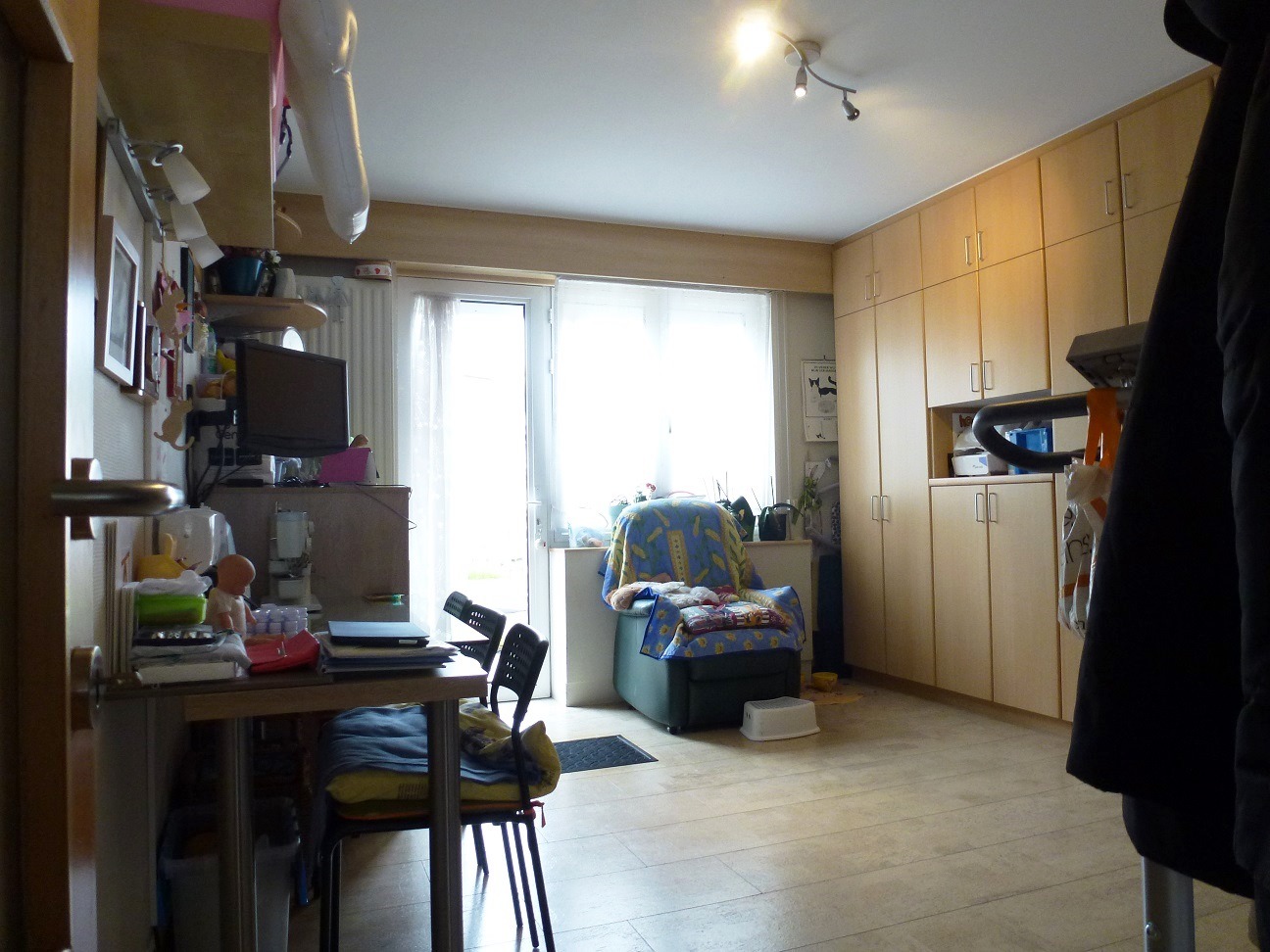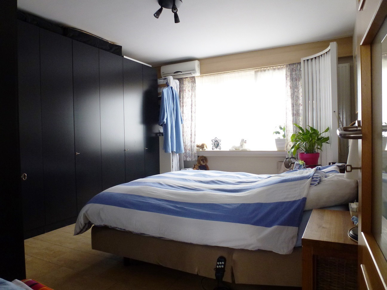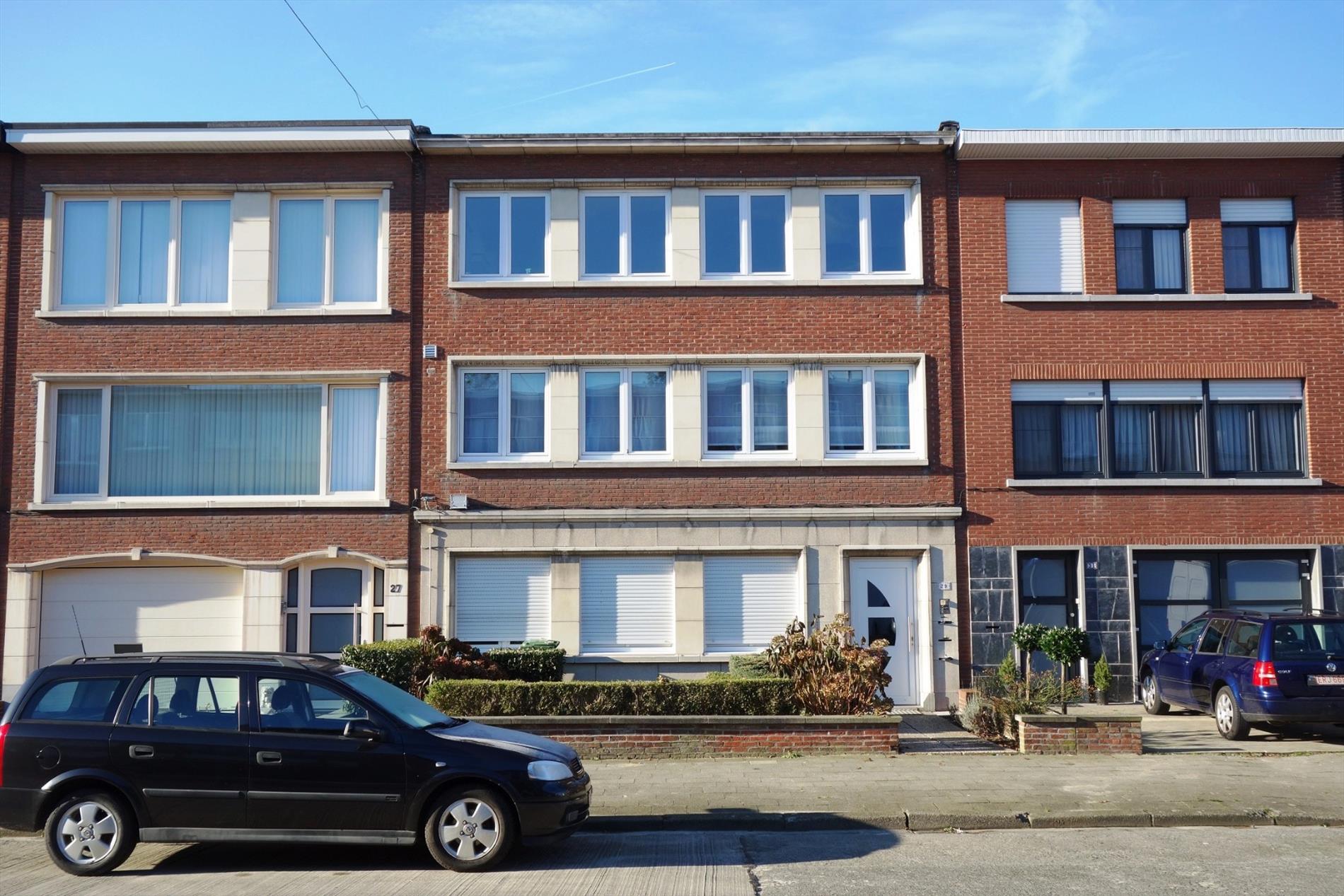 Het appartement bevindt zich op de eerste verdieping van een kleinschalig gebouw en is ideaal gelegen in de nabijheid van verschillende handelszaken en het openbaar vervoer. Indeling: Inkomhal met ingebouwde vestiaire, leefruimte (32m²) met veel natuurlijk lichtinval en een open haard, een halfopen moderne keuken (3-jaar oud, 8m²), comfortabele badkamer (6m²) uitgerust met douche, lavabo en toilet. Verder is het appartement voorzien van twee slaapkamers (18m² en 16m²). Via de linkse slaapkamers wordt het terras (9m²) bereikt dewelke een vaste trap naar de tuin heeft. In de ondergrondse verdieping is er een privatieve kelder (7m²). Bijzonderheden: gevelbreedte gebouw 8m, deels elektrische rolluiken, geen lift aanwezig, In de Antoon Van den Bosschelaan is er een garagebox (mits meerprijs) met achteringang naar de tuin en voor de garage is er extra parkeergelegenheid. Verkoopprijs appartement 175.000 euro + garage 20.000 euro.