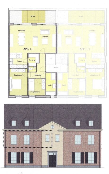Nieuw te bouwen appartement op het 1ste verdiep in project De Pastorij, rustig, doch centraal gelegen te Kalmthout. Het appartement omvat een leefruimte met open keuken en toegang tot het terras van ca. 16m². Aansluitend aan de keuken is er een berging/wasplaats, 2 slaapkamers. Badkamer met enkele lavabo, douche en ligbad. De afwerking is zelf te bepalen aan de hand van uw budget. Fietsberging is voorzien. Bij de aankoop van een appartement (vanaf 247790 Euro excl kosten en BTW) dient u rekening te houden dat er een garage (20575 Euro excl kosten en BTW) bij aangekocht moet worden. VERHELST vastgoed is erkend makelaar voor projecten Van Laerhoven. EPB bij oplevering. Vg, Wg, Gvkr, Gdv, Gvv.