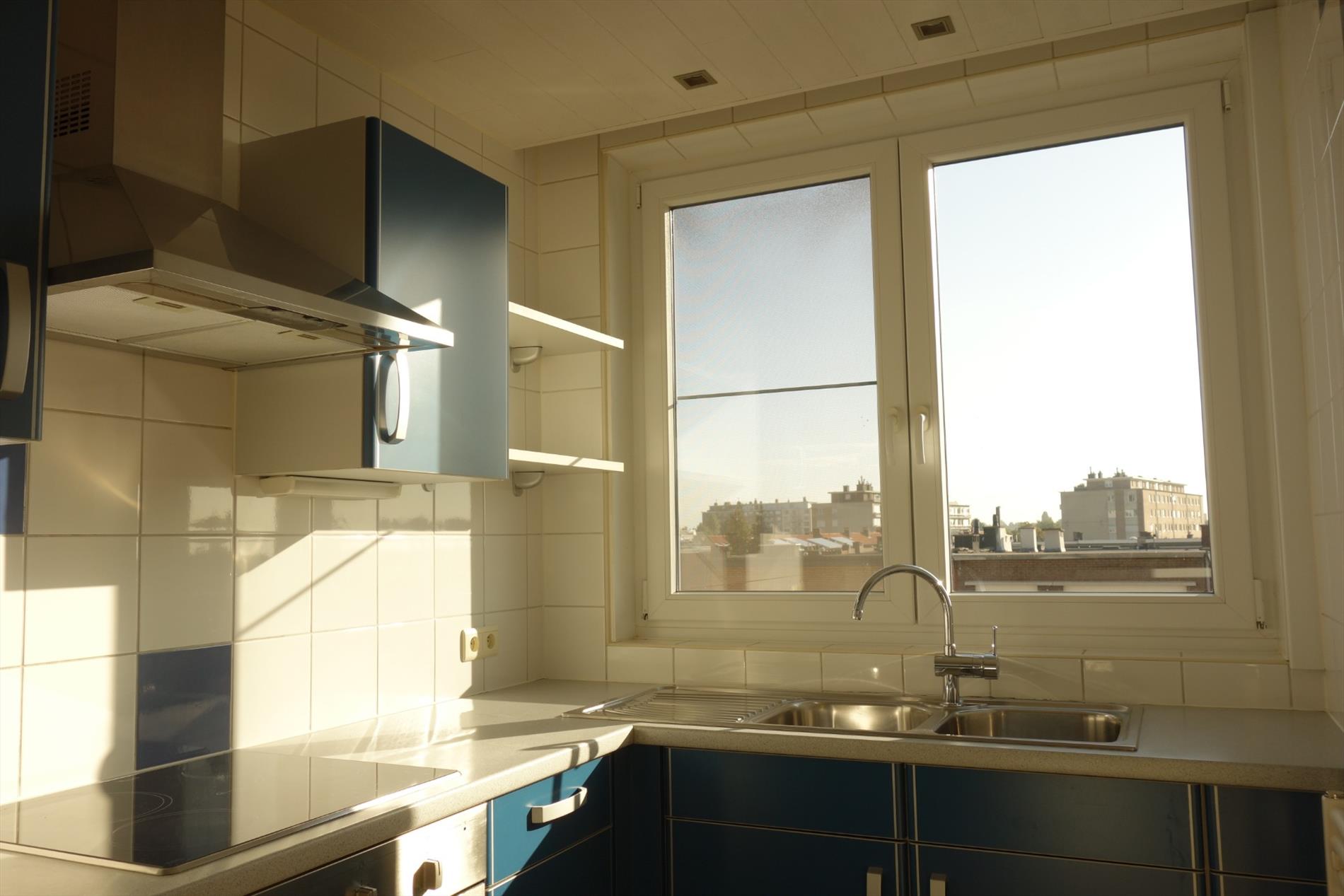 Dit appartement ligt op de 3de verdieping van een verzorgd kleinschalig appartementsgebouw . Kenmerkend is de rustige woonomgeving, evenals de centrale ligging nabij het openbaar vervoer, scholen en overige voorzieningen. Indeling: inkomhal met ingemaakte vestiaire kast, leefruimte 30m² op laminaat, een aparte ingerichte keuken 6m², 2 slaapkamers (10m² en 14m²), een ruime berging (6m²), een badkamer met douche en wandmeubel en een apart toilet. Verder is er nog een onverdeeldheid (1/3e) in de gemene delen van garage op het gelijkvloers. Er is een mogelijkheid tot klein beschrijf.