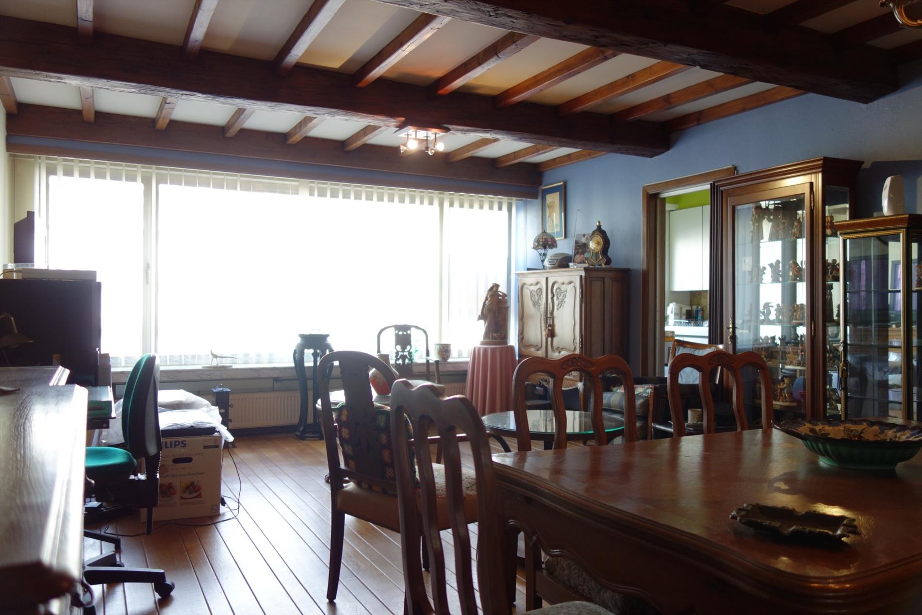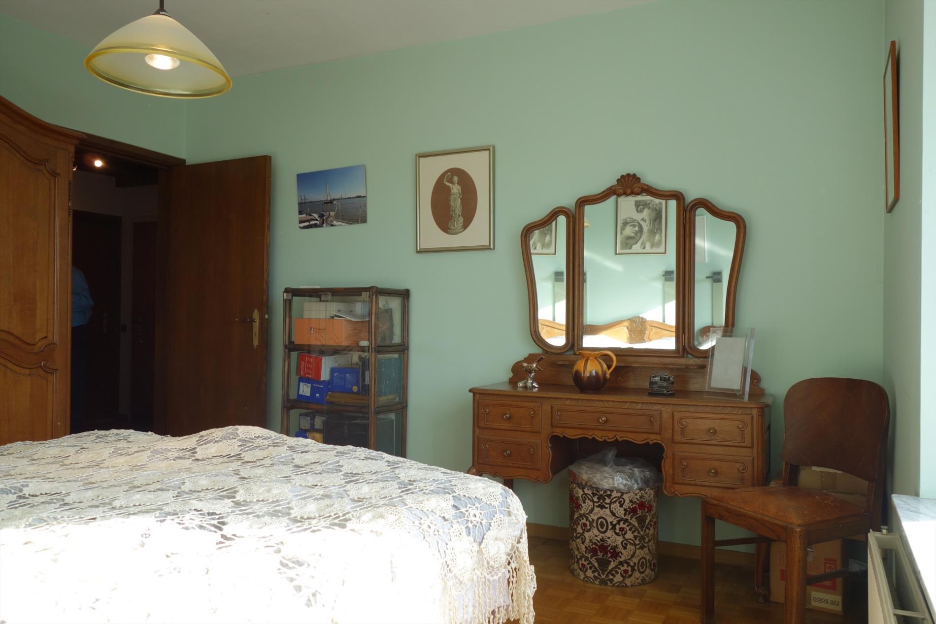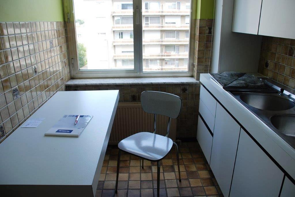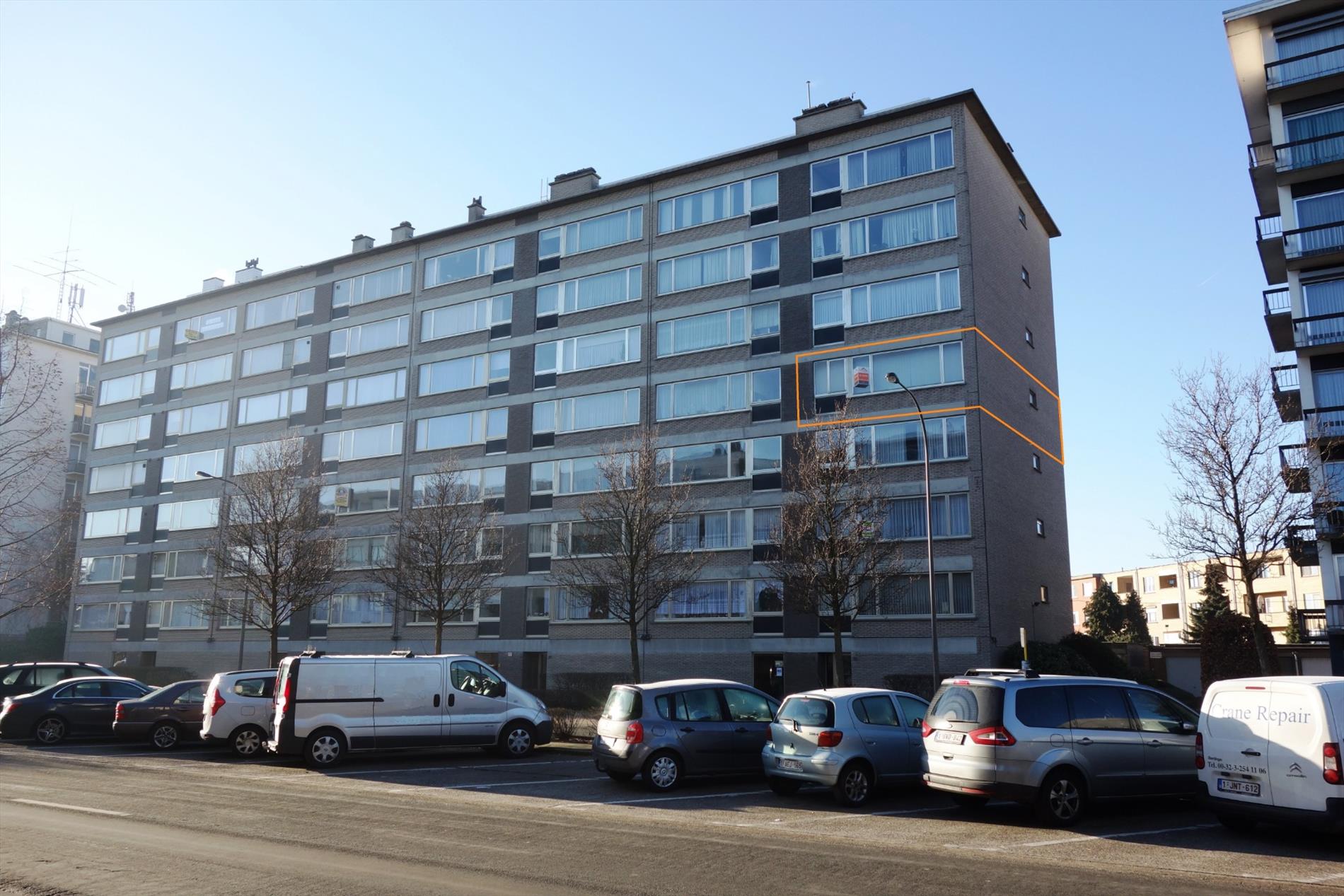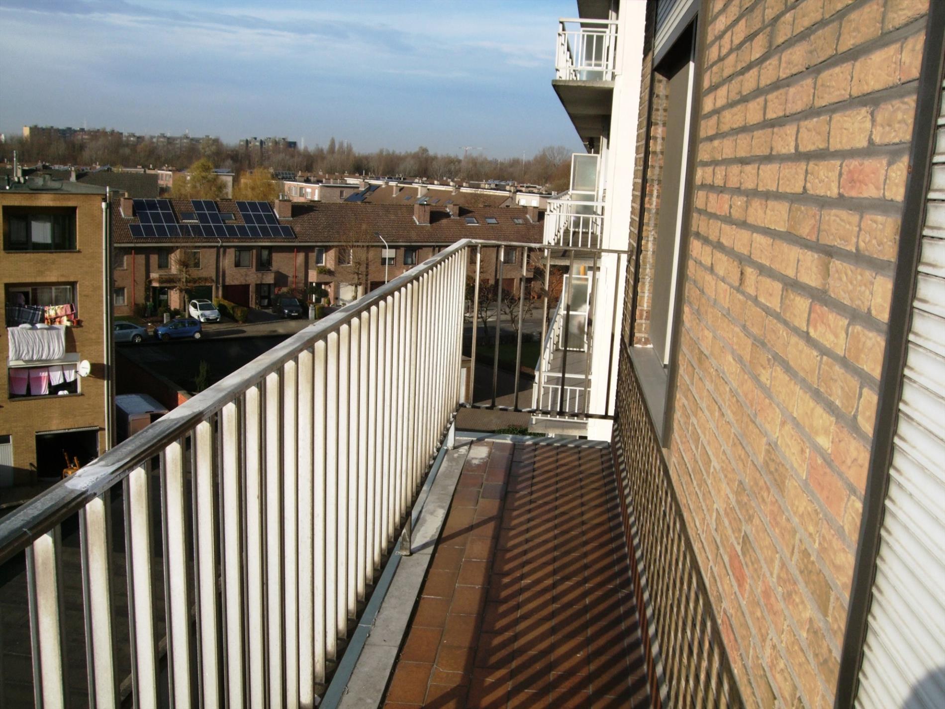 Goed onderhouden appartement (opp. 87m²) op de vierde verdieping met lift, 2 slaapkamers, een balkon en een garagebox vlak achter het appartementsgebouw. Het appartement is gunstig gelegen met in de nabijheid diverse winkels, het openbaar vervoer, scholen en verschillende uitvalswegen. Indeling: Inkomhal met ingemaakte vestiairekast en een gastentoilet, woon- en eetkamer 35m² op houten vloeren, een keuken 7m² met de nodige voorzieningen, een badkamer voorzien van ligbad en dubbele lavabo. Verder bevat het appartement 2 slaapkamers (12m² en 15m²) waarvan één kamer met toegang naar het terras, waar men kan genieten van een uniek uitzicht. Bijzonderheden: Het appartement is momenteel verhuurd aan 650€/maand. Privatieve garagebox gelegen in achterliggend garagecomplex.