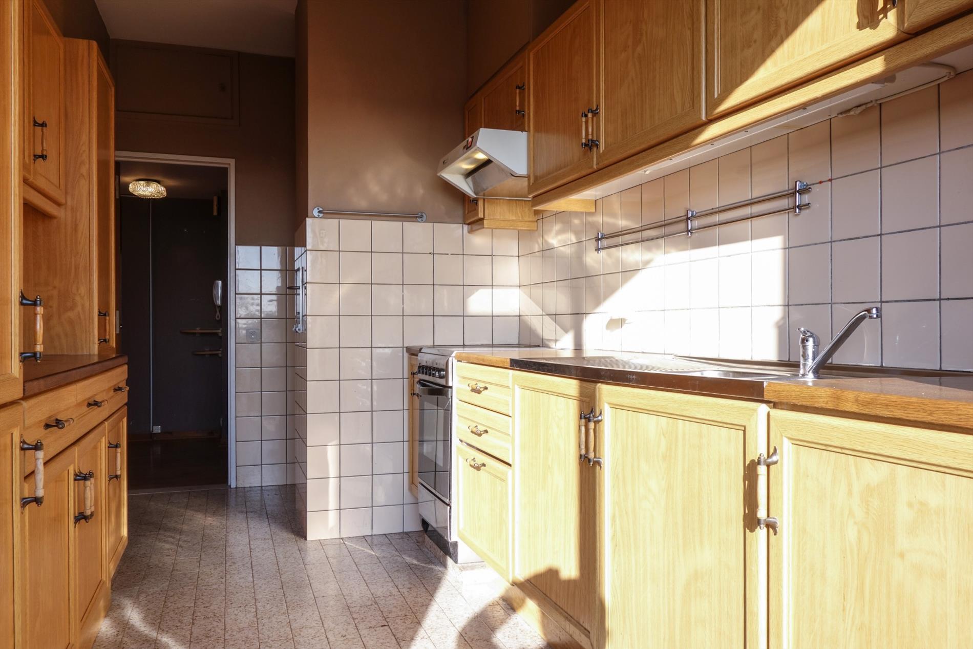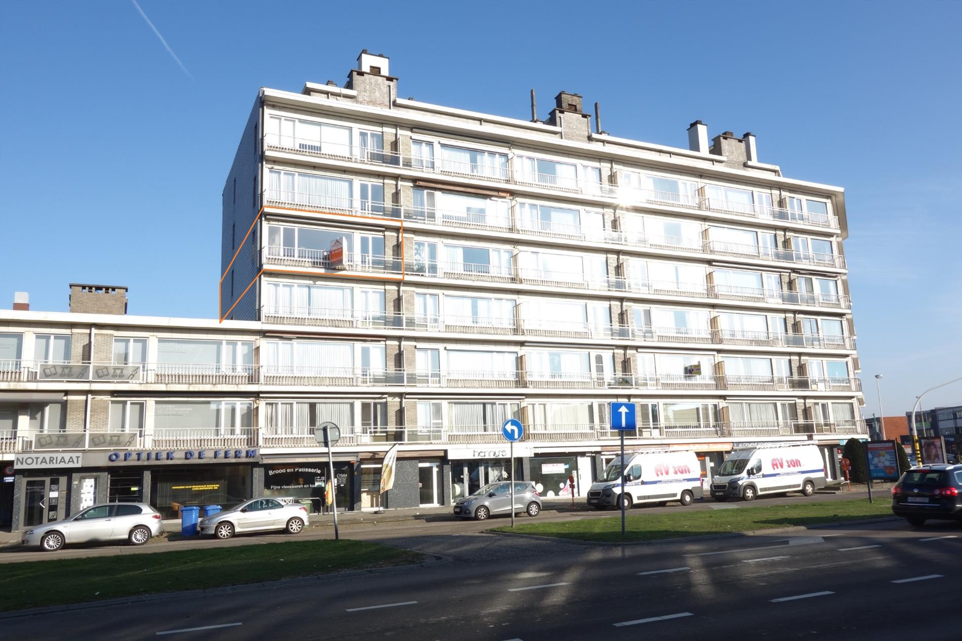 Dit lichtrijke appartement op de vierde verdieping van een verzorgd gebouw met lift bevindt zich op een gunstige locatie in de nabijheid van diverse winkels, het openbaar vervoer, scholen en verschillende uitvalswegen. Indeling: Inkomhal met gastentoilet, de leefruimte 33m², een ingerichte keuken 12m², een nachthal, een badkamer voorzien van een ligbad met douchemogelijkheden en drie slaapkamers (8m², 9m² en 15m²). Bijzonderheden: Zowel aan de voor- als aan de achterzijde van het appartement bevindt zich een balkon, bijhorend aan het appartement is er een privatieve kelder in de ondergrondse verdieping en een privatieve garagebox achter het appartementsgebouw. De maandelijkse vaste kosten houden o.a. het volgende in: spaarfonds appartement, spaarfonds garage, provisie water, provisie verwarming, lift en onderhoud gemeenschappelijke delen.