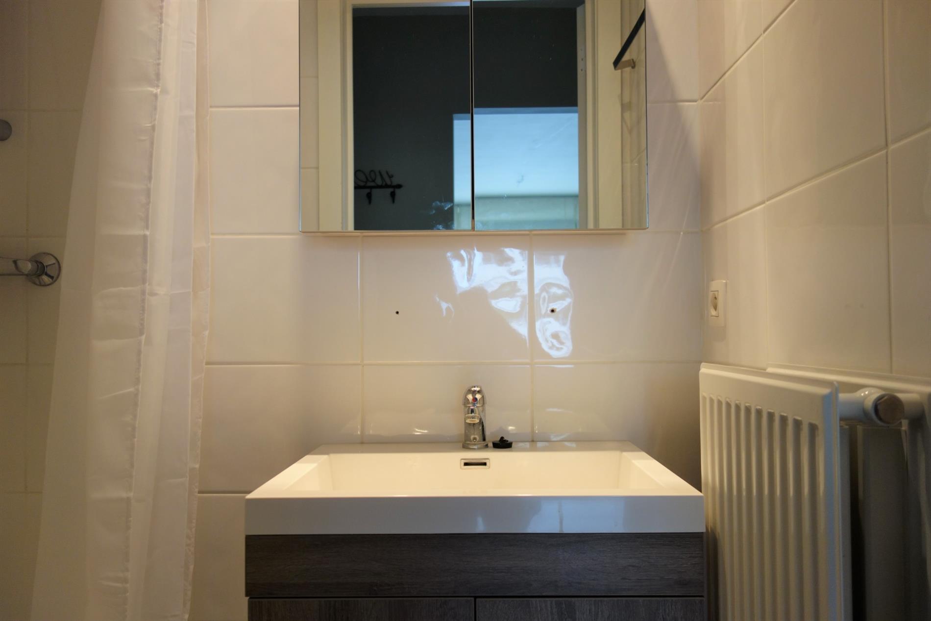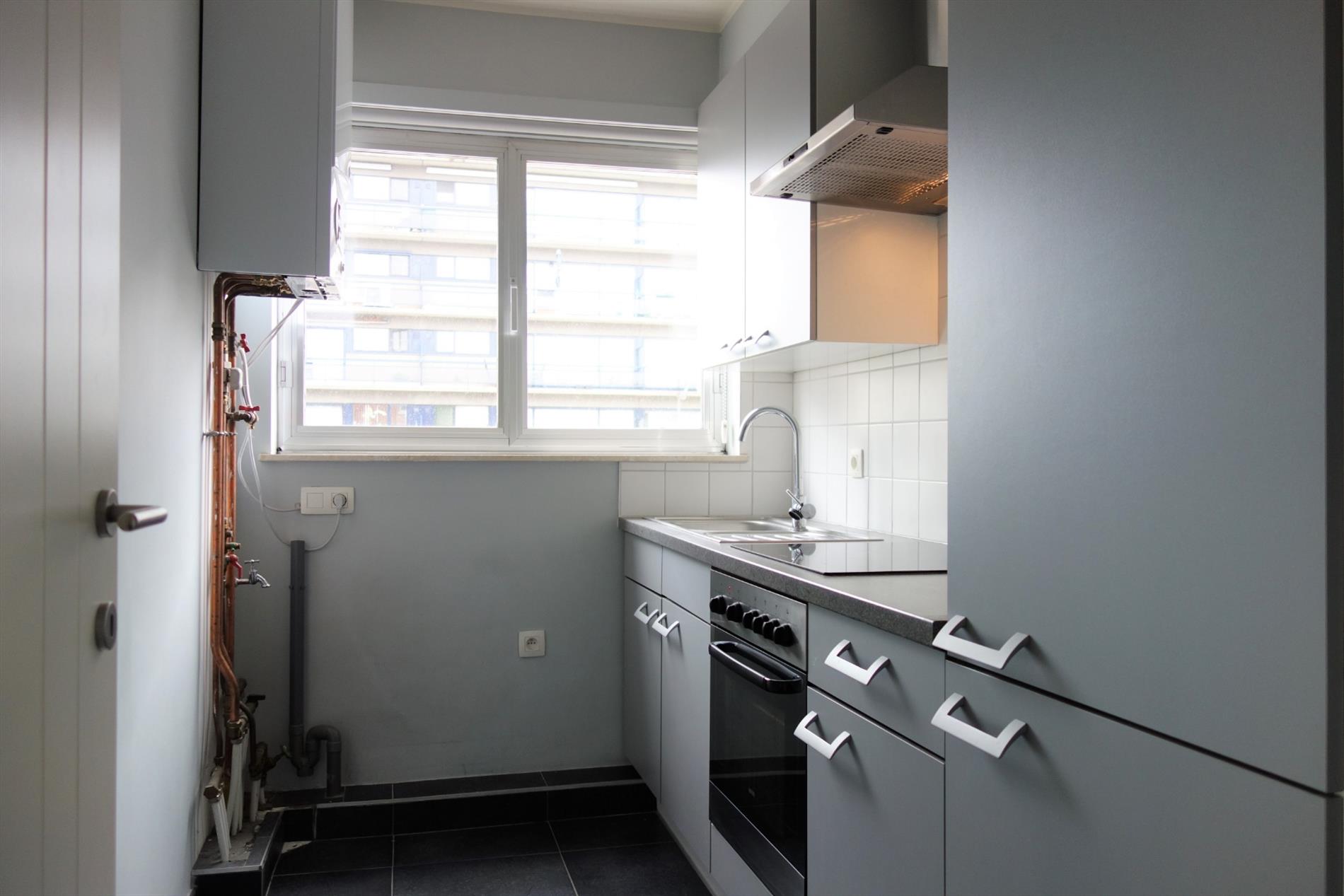 Dit comfortabel appartement is gelegen op de tweede verdieping van een kleinschalig, rustig en verzorgd gebouw. Indeling: een inkomhal met apart toilet, een woonkamer 23m² op tegel, een keuken uitgerust met een koelkast, een elektrisch vuur, een oven en een aansluiting voor uw wasmachine. Tevens is er een hoofdslaapkamer 12m² en een 2e kamer anex bureel 7m² op tegel en met aansluiting voor internet en tv. Een badkamer voorzien van een douche en een wandmeubel. Dit eigendom is gelegen in een rustige woonwijk, doch nabij de buurt van winkels, talrijke invalswegen, de autosnelweg, scholen, het openbaar vervoer en de gekende Kinepolis.