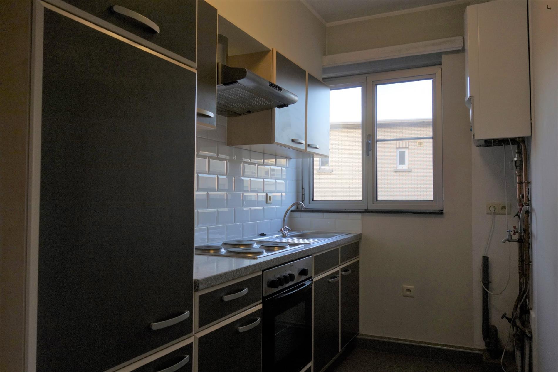 Dit comfortabel appartement is gelegen op de tweede verdieping van een kleinschalig, rustig en verzorgd gebouw. Indeling: een inkomhal met apart toilet, een woonkamer 23m² op tegel, een keuken uitgerust met een koelkast, een elektrisch vuur, een oven en een aansluiting voor uw wasmachine. Tevens is er een hoofdslaapkamer 13m², een 2e kamer anex bureel 7m² op tegel en voorzien van aansluiting voor internet/tv. Een badkamer voorzien van een douche en een wastafel. Tevens is er op de gelijkvloerse verdieping een privatieve kelderberging ter beschikking. Dit eigendom is gelegen in een rustige woonwijk, doch nabij de buurt van winkels, talrijke invalswegen, de autosnelweg, scholen, het openbaar vervoer en de gekende Kinepolis.
