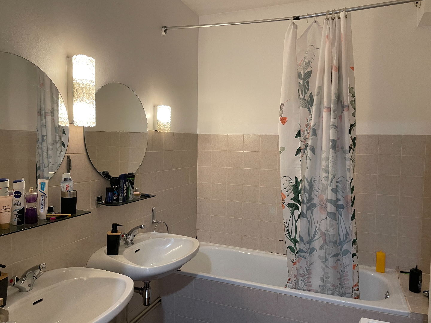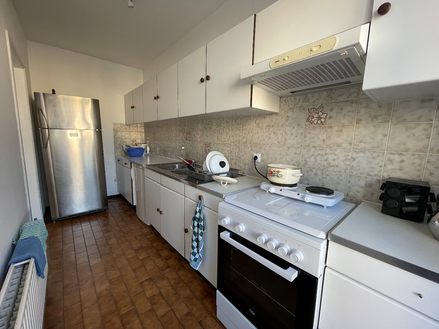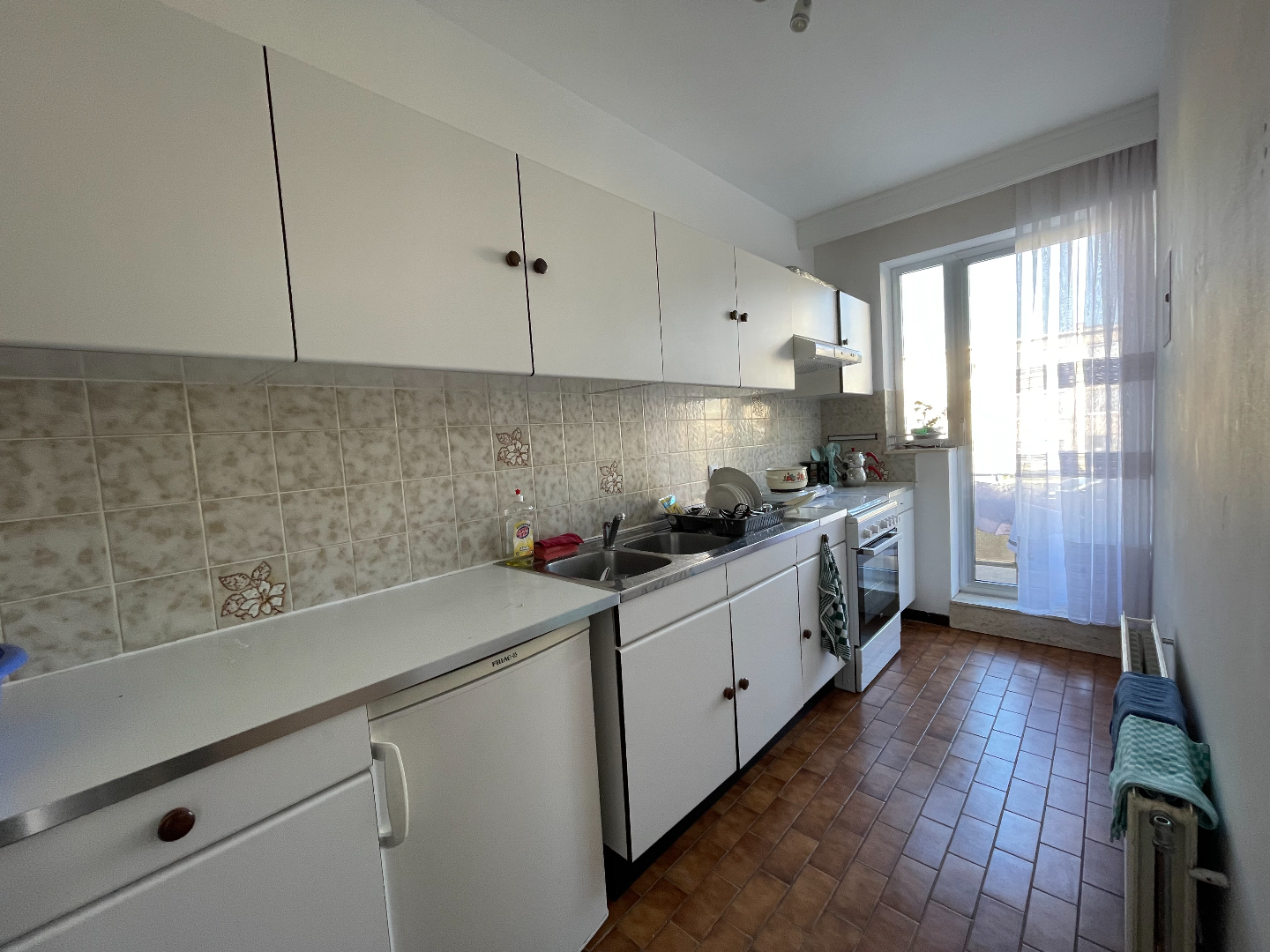 Dit appartement is gelegen op de eerste verdieping van een kleinschalig gebouw nabij het gekende Distelhoek. Indeling: een inkomhal met een aparte toilet, ingebouwde kasten en een berging. Een woon- en eetkamer 33m² op parket, een aparte keuken 8m² voorzien van een koelkast, gasvuur, oven en bergkasten. Vanuit de keuken heeft u toegang tot het zuid-gerichte balkon. Aan de achterzijde van het appartement zijn er 2 slaapkamers 8m² en 15m². Tevens is er een badkamer voorzien van een ligbad/douche, 2 wastafels en een aansluiting voor een wasmachine. Op de gelijkvloerse verdieping is er een privatieve garagebox en een berging. Gunstige locatie op wandelafstand van het park, winkels, invalswegen, scholen, het openbaar vervoer, ....