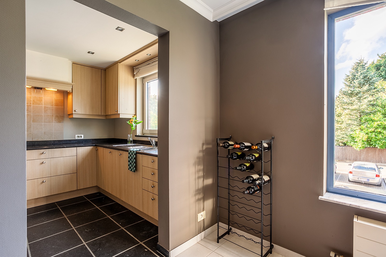 Dit hedendaags appartement is gelegen op de eerste verdieping van een verzorgd en rustig gebouw. Indeling: een inkomhal met apart gastentoilet en handenwasser, een aangename woon- en eetkamer 37m² op tegel, een volledig ingerichte keuken voorzien van een elektrisch vuur, een vaatwasser, een koelkast en talrijke opbergkasten. Vanuit de nachthal heeft u toegang tot een bergruimte, een badkamer die is uitgerust met een ligbad/douche, een dubbel wandmeubel en een aansluiting voor een wasmachine/droogkast. Tevens zijn er 3 slaapkamers (7m², 10m² en 14m²) op laminaat die allemaal uitgerust zijn met ingemaakte kasten en een Noord-georiënteerd terras aan de achterzijde van het eigendom. In het garagecomplex is er een privatieve garagebox beschikbaar. Op een boogscheut van het openbaar vervoer, winkels, invalswegen, autosnelweg, ontspanningsfaciliteiten, ......