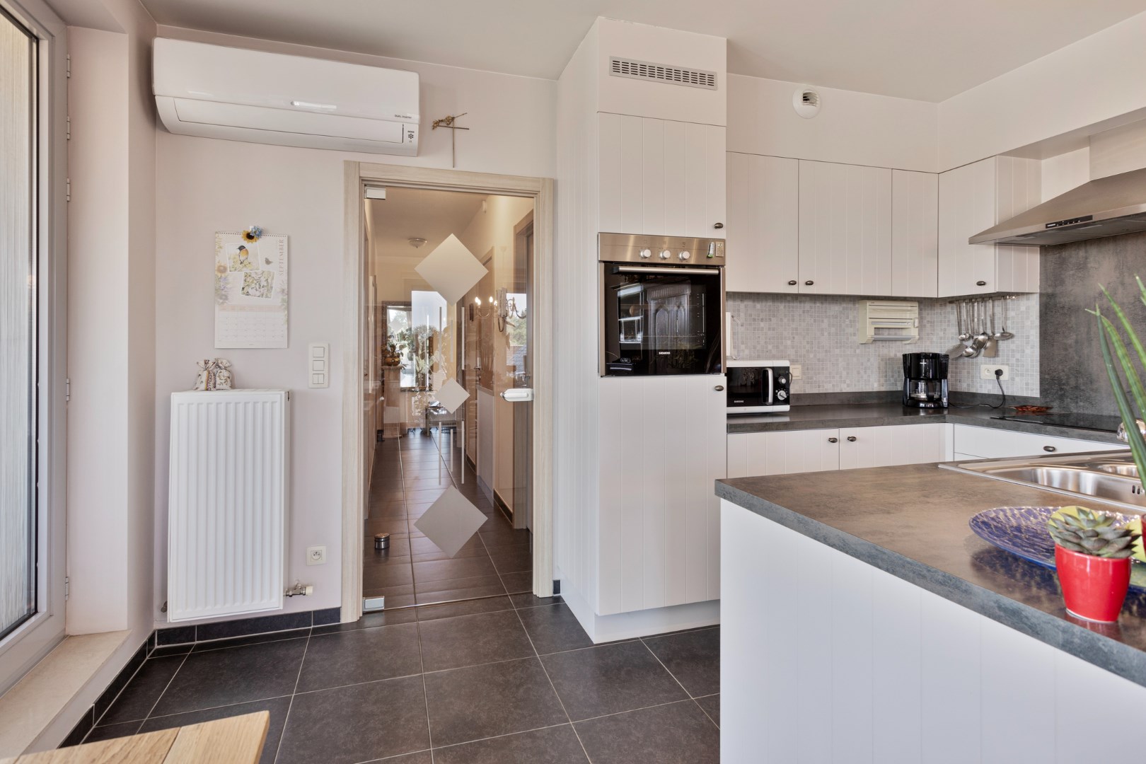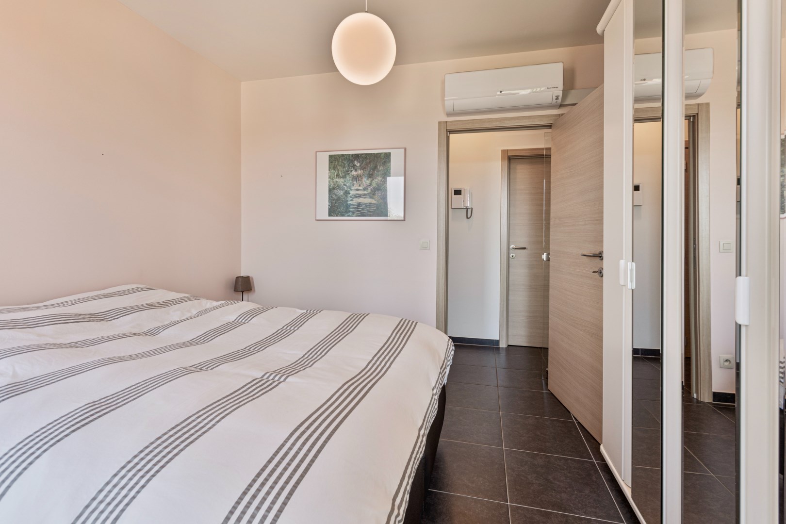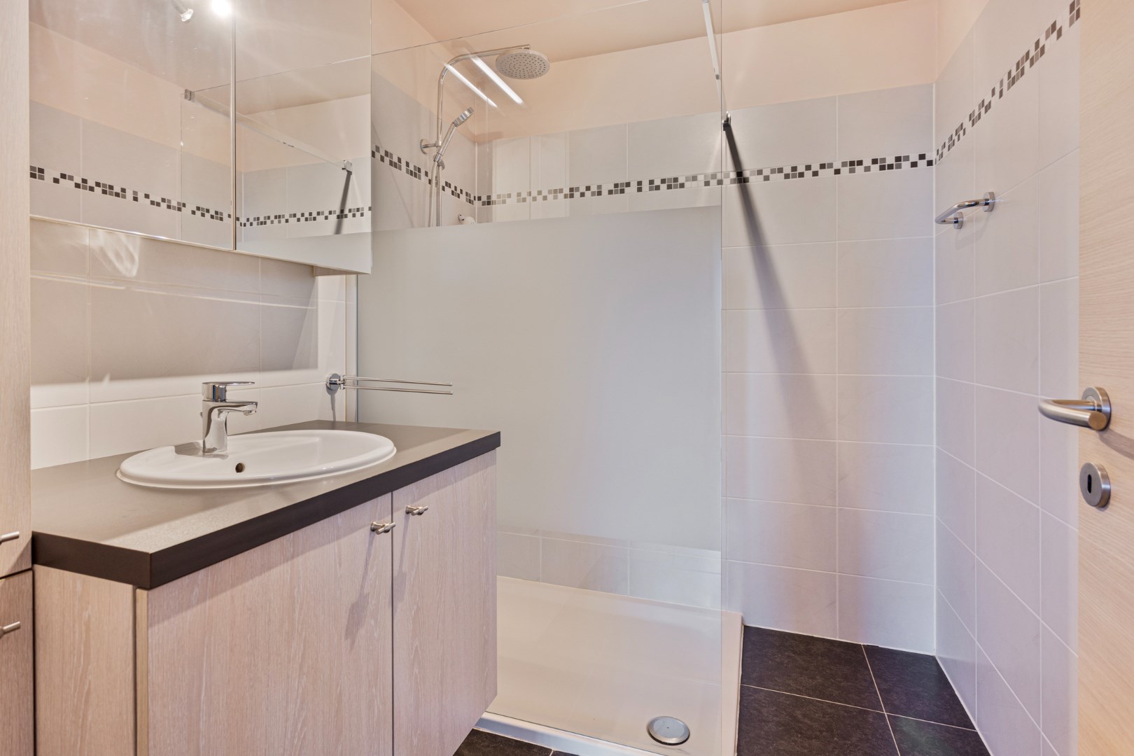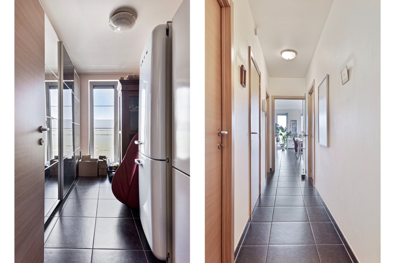 Dit uiterst centraal gelegen appartement is gelegen op de tweede verdieping van een verzorgd gebouw met lift. Indeling: een inkomhal met apart toilet en handenwasser, een lichtrijke woon- en eetkamer 29m² op tegel met airco en toegang tot het terras 8m². De open ingerichte keuken 12m² is uitgerust met een elektrische kookplaat, een koelkast, een oven en een vaatwasser. Vanuit de inkomhal heeft u toegang tot een berging met aansluiting voor uw wasmachine/droogkast. De badkamer is ingericht met een inloopdouche en een wandmeubel met opbergmogelijkheden. De hoofdslaapkamer 13m² is voorzien van een airco en de tweede slaapkamer heeft een kastenwand. In de ondergrondse verdieping, dewelke te bereiken is met lift, heeft u nog een autostaanplaats en een kelderberging ter beschikking. Op een steenworp van talrijke winkels, het openbaar vervoer, ontspanningsfaciliteiten, ...