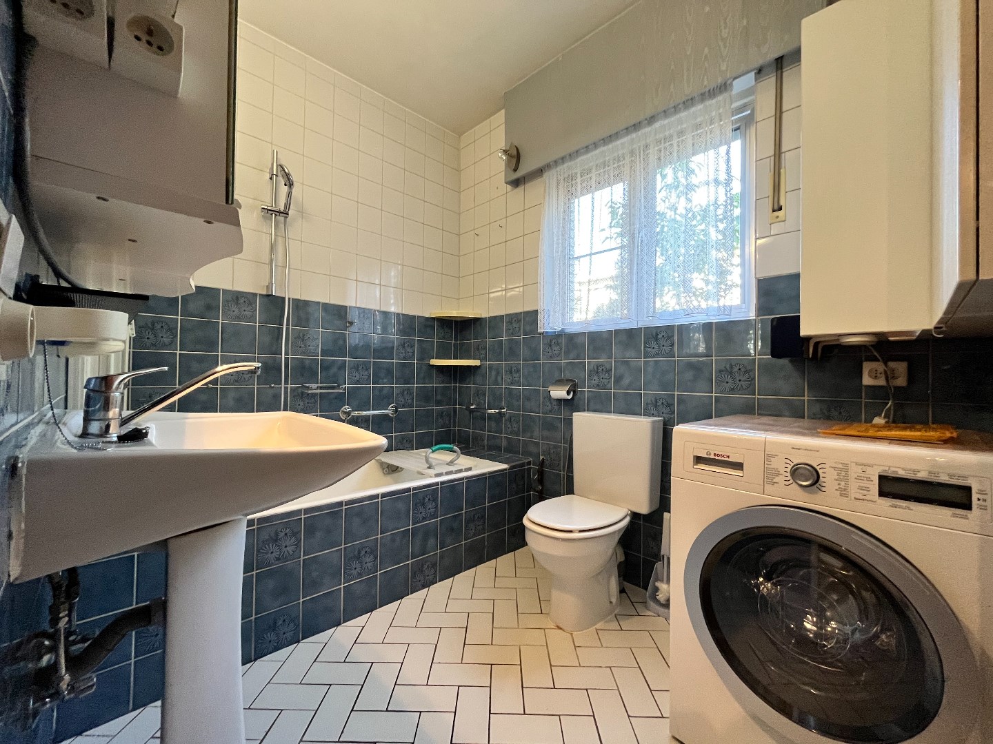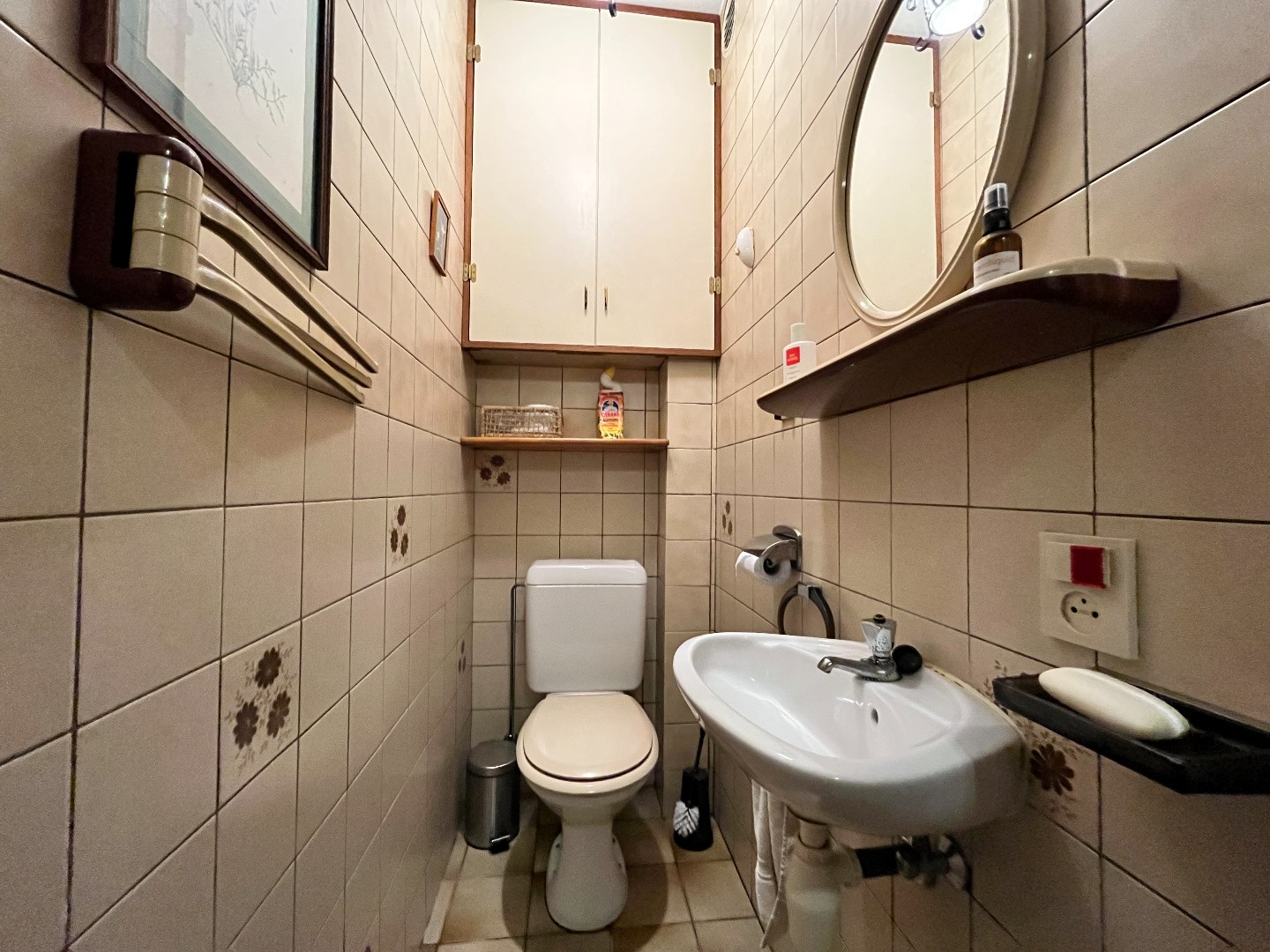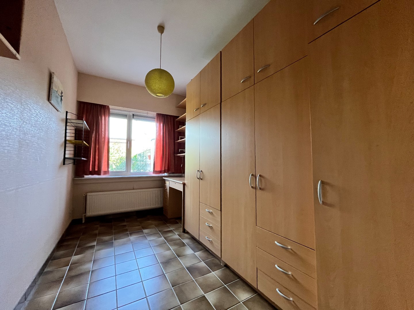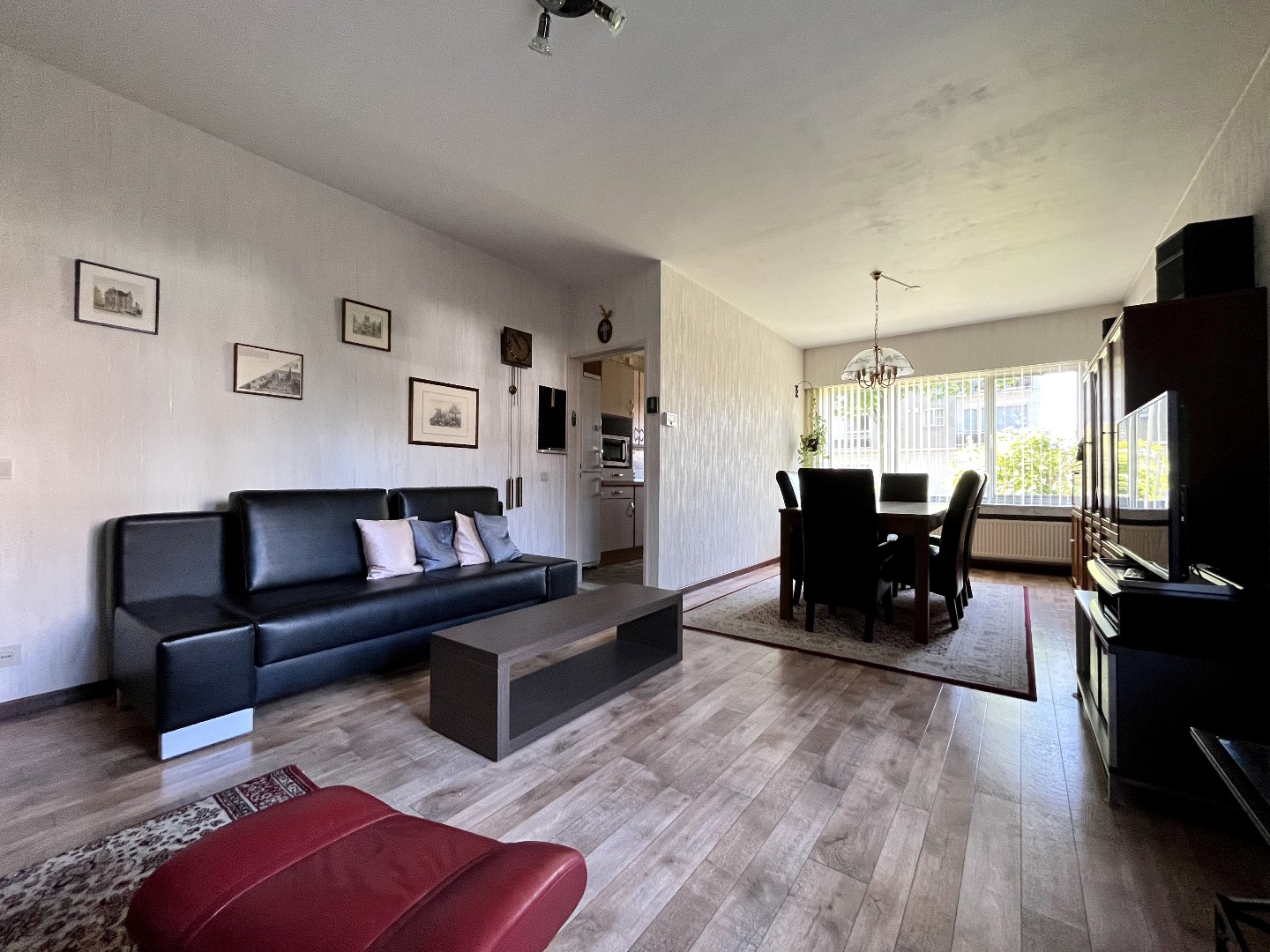 Het appartement bevindt zich op de gelijkvloerse verdieping en is voorzien van een privatieve tuin met tuinhuis en parkeergelegenheid. Indeling: inkom met gastentoilet en aparte berging, een woon- en eetkamer met aanpalend een keuken. Nachthal, een badkamer met ligbad/douchescherm en dubbele lavabo met meubel, 2 slaapkamers (14m² en 9m²) waarvan één kamer met toegang biedt tot het terras en tuin. Er is een aparte garagebox beschikbaar. Ideaal als investeringsobject of geschikt voor eigen bewoning. Gunstige locatie op een steenworp van het centrum, rustige woonwijk, nabij invalswegen naar autostrade en treinstation.