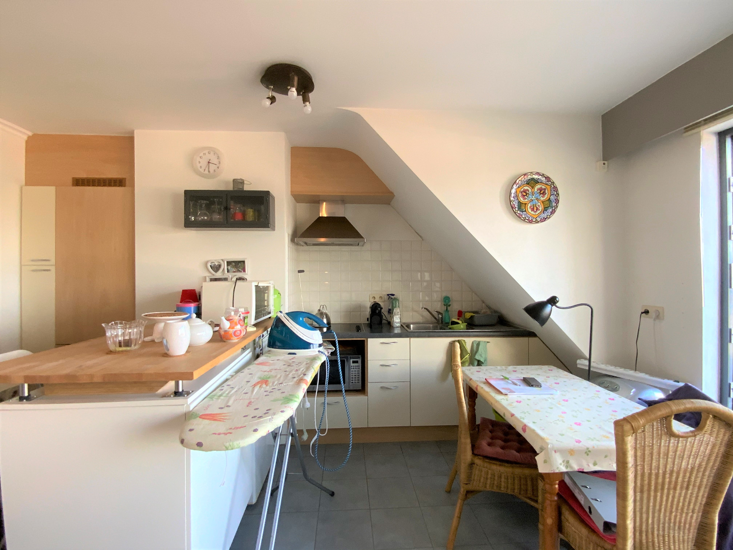 Dit 1 slaapkamer appartement is gelegen op de 2e verdieping van een gebouw, zonder lift nabij het centrum van Brecht. Gunstige locatie op wandelafstand van verschillende winkels, restaurants, bushaltes, treinstation en het park. De indeling is als volgt: leefruimte met open keuken 25m², de keuken is uitgerust met elektrische kookplaat, dampkap, spoelbak en ijskast. De leefruimte geniet van toegang tot het terras 14m² dewelke oostelijk georiënteerd is. De slaapkamer van 13m² biedt toegang tot de badkamer 7m² uitgerust met douche-ligbad, lavabomeubel en toilet. De technische ruimte/wasplaats bevindt zich achter de badkamer. Specificaties: garagebox in de prijs inbegrepen en lage gemeenschappelijke kosten.