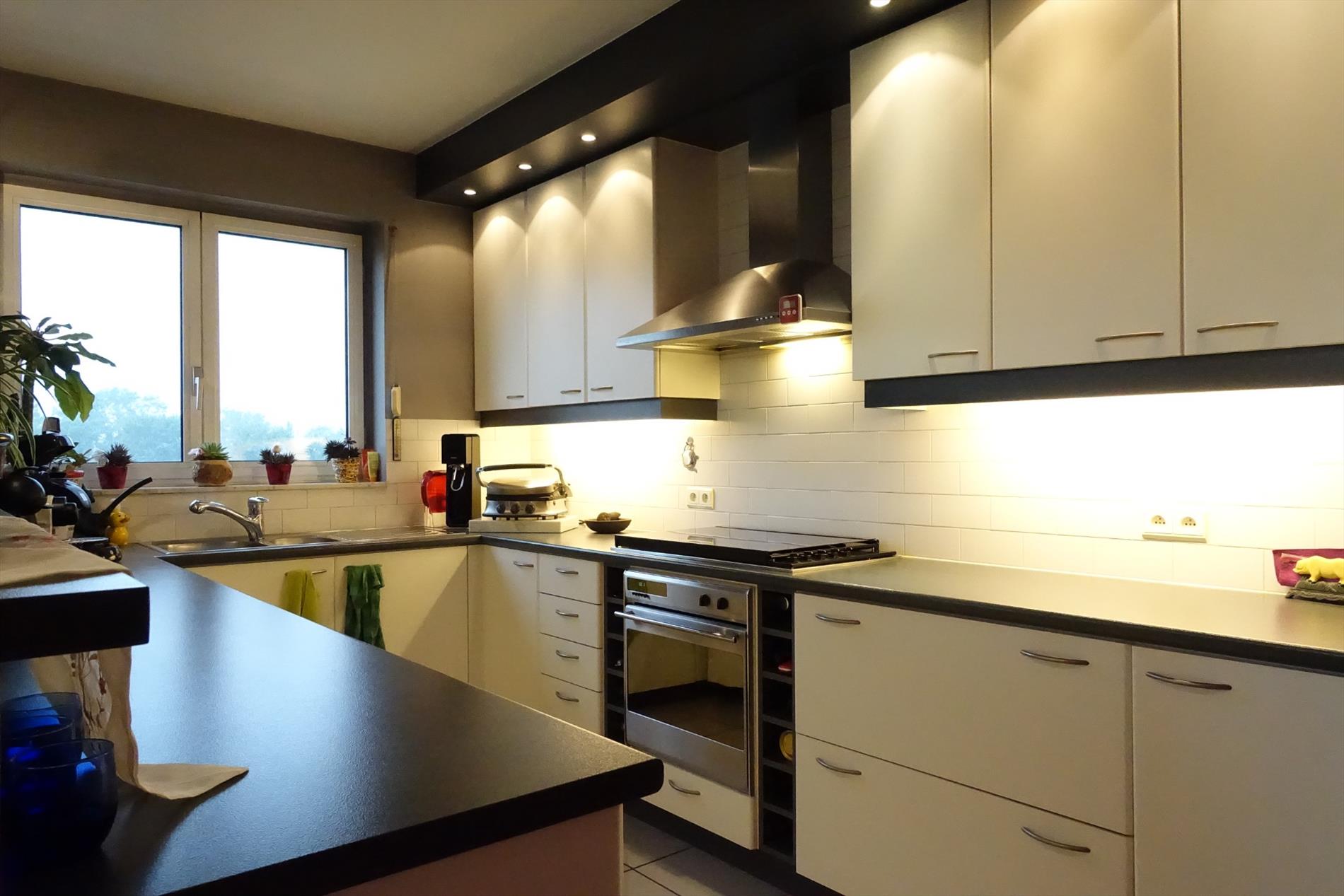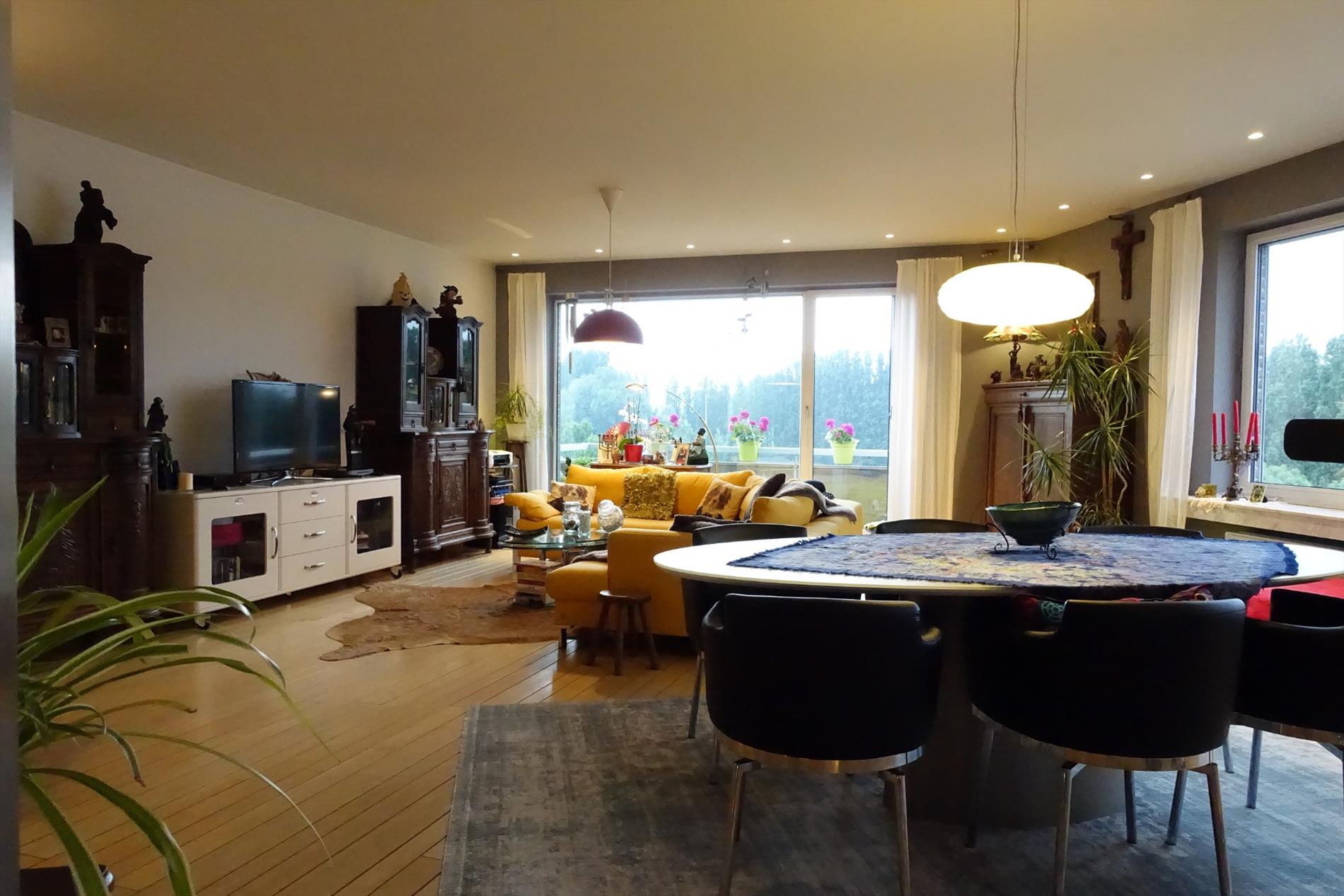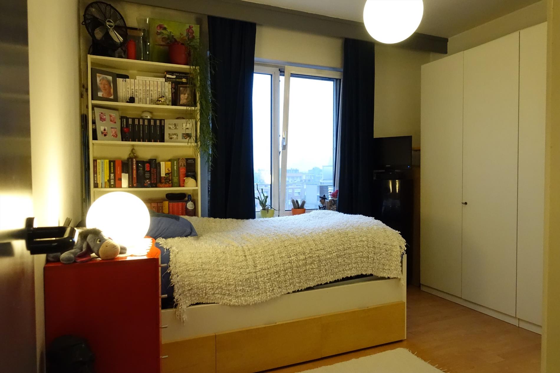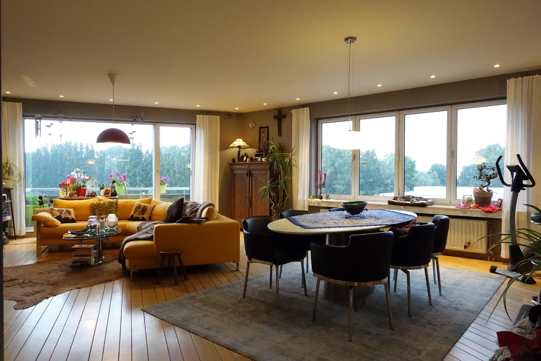 Dit dakappartement (120m²) bevindt zich op de vierde verdieping van een uitstekend onderhouden gebouw met lift en wordt gekenmerkt door zijn ruime leefruimte met veel natuurlijk lichtinval vanwege de grote raampartijen. Het appartement heeft een uniek vertezicht en situeert zich in een aangename woonomgeving zonder doorgaand verkeer. Indeling: inkomhal op blauwe hardsteentegel, een gastentoilet, een gezellige leefruimte 53m² op eikenhouten plankenvloer, een halfopen leefkeuken met aansluitend een praktische bergplaats. Verder omvat het appartement nog twee slaapkamers (13m² en 13m²) en een comfortabele badkamer. Bijzonderheden: Gunstige EPC-score, vernieuwde CV-ketel, conforme elektriciteitskeuring en het dak van het appartementsgebouw werd in maart 2018 geïsoleerd. Op de gelijkvloerse verdieping bevindt zich nog een garagebox met daarvoor één privatieve autostaanplaats.