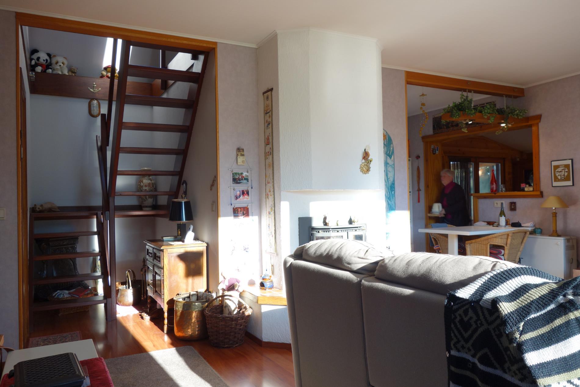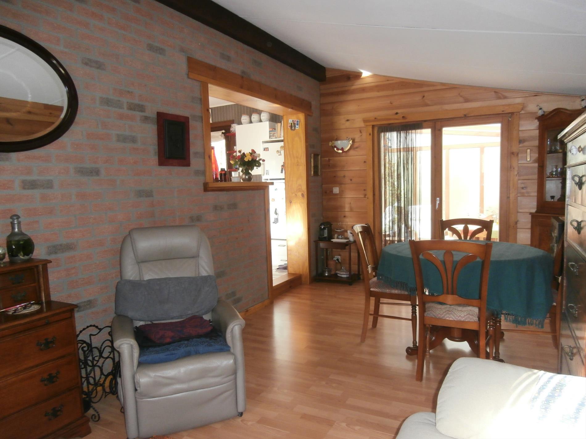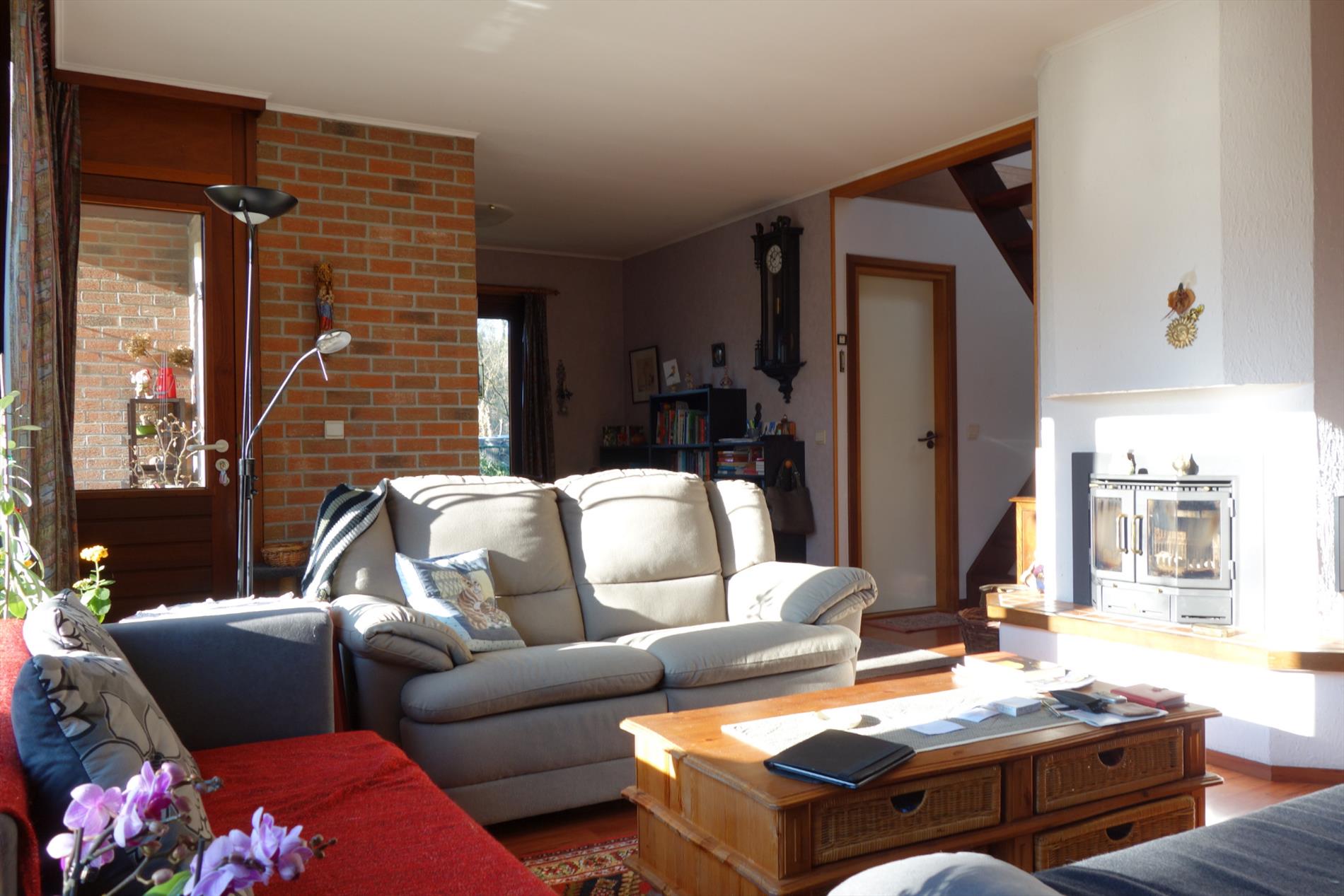 In een rustige woonomgeving werd deze woning opgetrokken op een perceel van 1000m² in BPA recreatief woongebied = permanent wonen. De woning (bwj 1991) is zeer verzorgd en ingedeeld als volgt: een leefruimte 30m² met bureel, een open haard en voorzien van een houten vloer en een vaste trap naar de verdieping. Een keuken ingericht met een kookplaat, spoelbak en veel bergkasten. Een aparte wasplaats met achteringang, een toilet en een douchecel. Tevens is er een apart salon 18m² met aansluitende een veranda 10m². Op de verdieping bevinden er zich 2 slaapkamers (13m² en 17m²), waarvan beide kamers met ingemaakte kastenwand. De badkamer is uitgerust met een ligbad, wandmeubel met lavabo en een toilet. Er is een tuin met vijverpartij, een tuinhuis en een terras met uniek uitzicht over de landelijke woonomgeving. Mogelijkheid tot klein beschrijf.