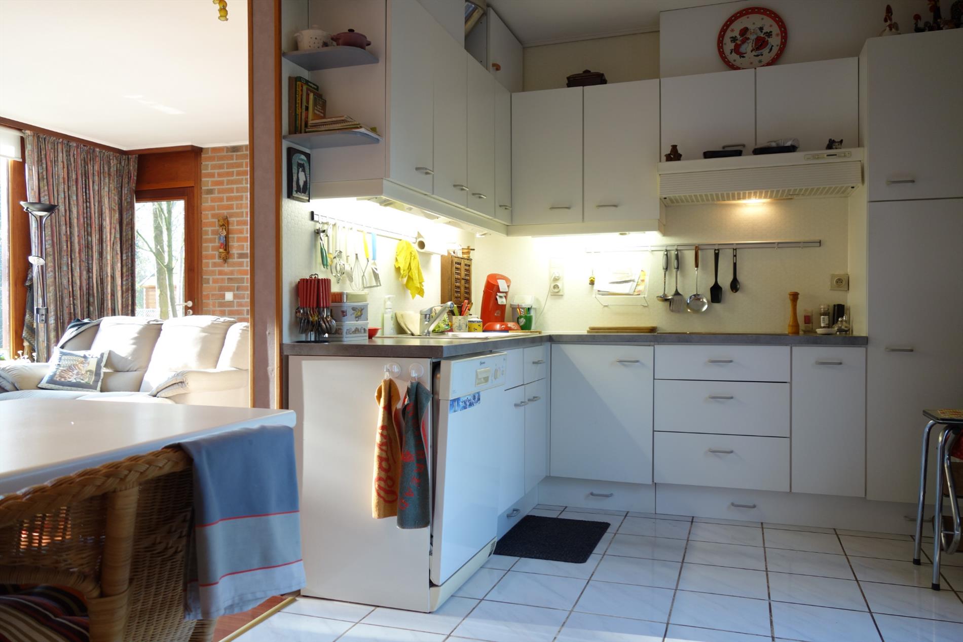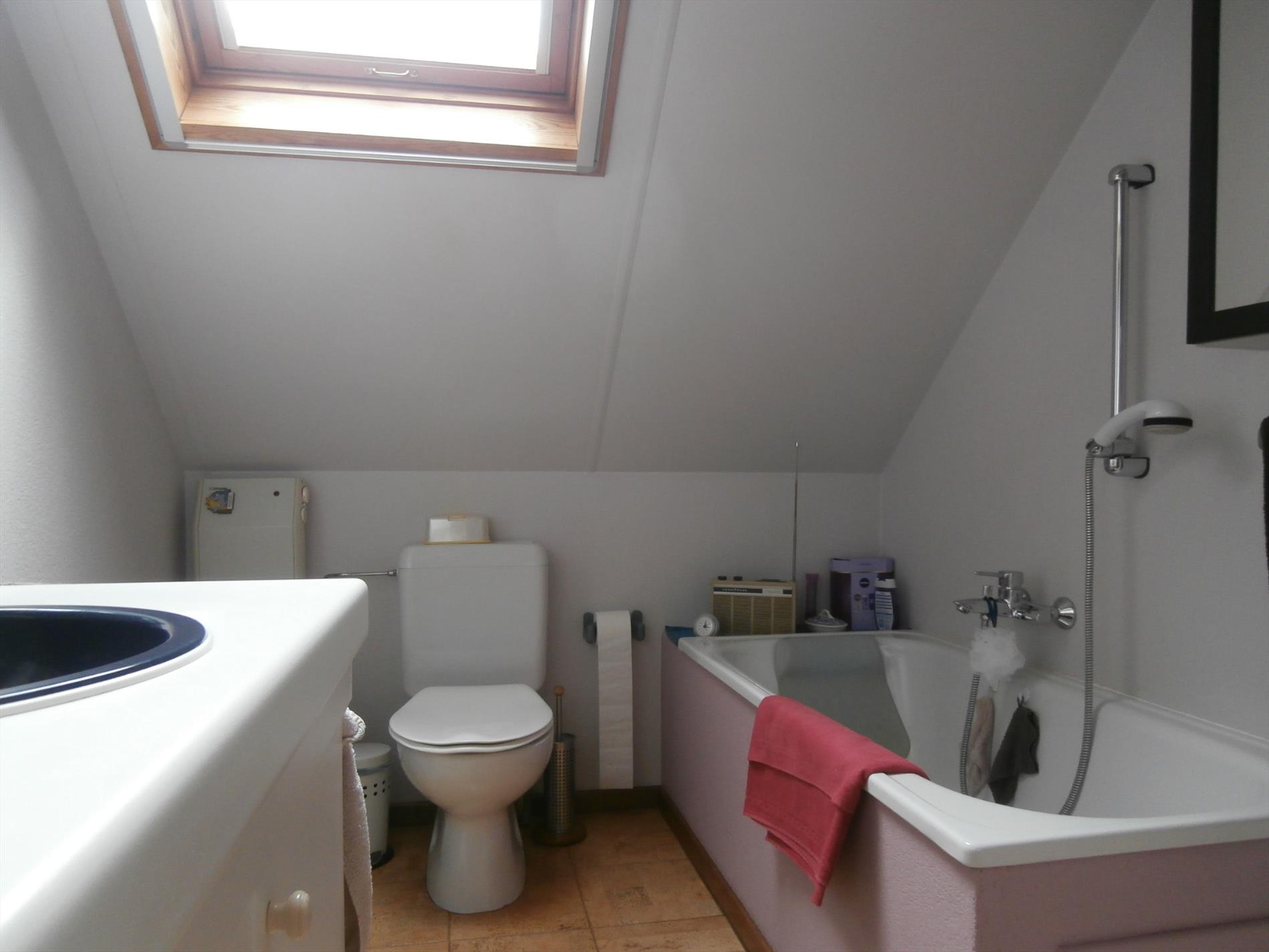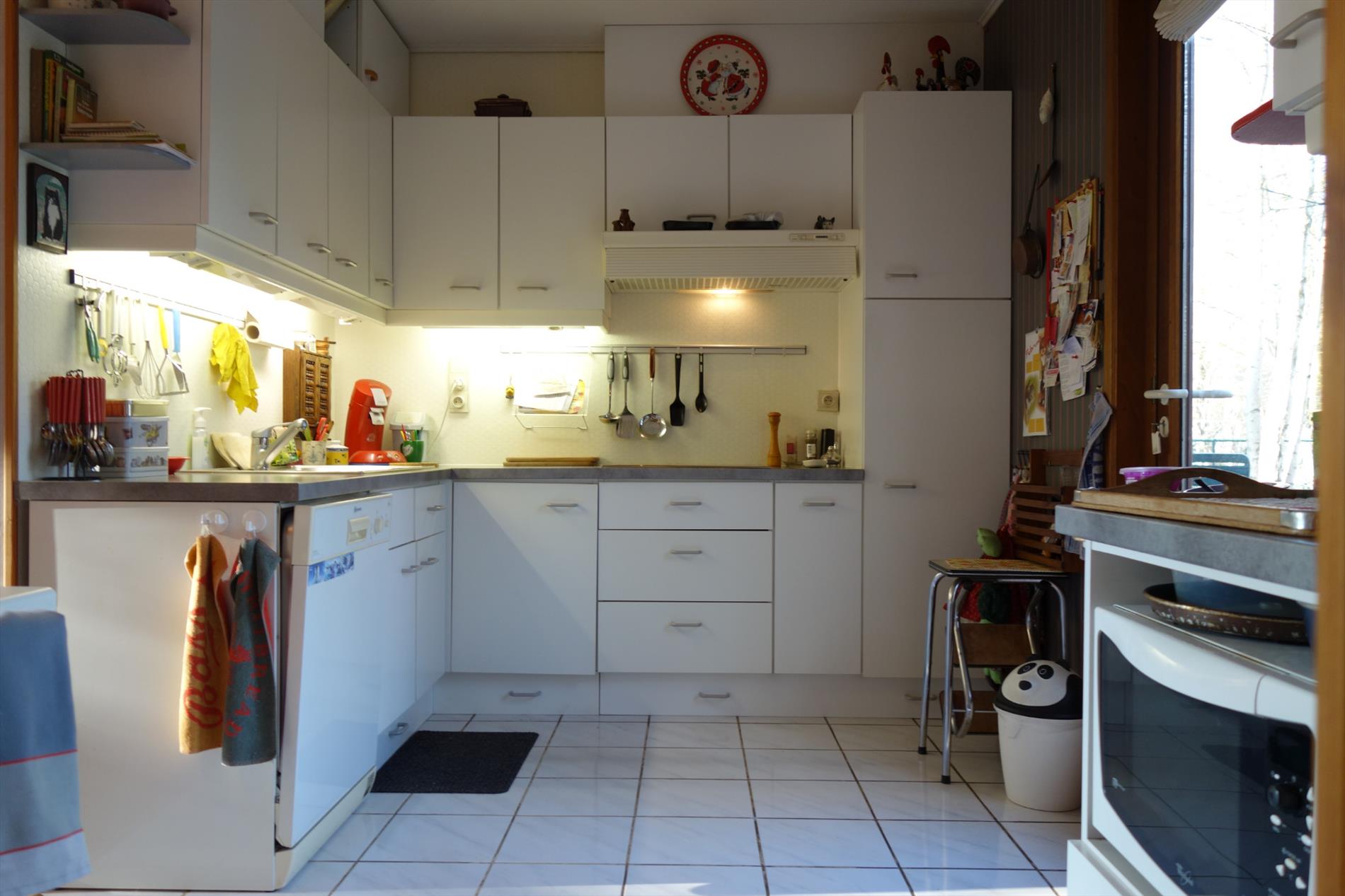 In een rustige woonomgeving werd deze woning opgetrokken op een perceel van 1000m² in BPA recreatief woongebied = permanent wonen. De woning (bwj 1991) is zeer verzorgd en ingedeeld als volgt: een leefruimte 30m² met bureel, een open haard en voorzien van een houten vloer en een vaste trap naar de verdieping. Een keuken ingericht met een kookplaat, spoelbak en veel bergkasten. Een aparte wasplaats met achteringang, een toilet en een douchecel. Tevens is er een apart salon 18m² met aansluitende een veranda 10m². Op de verdieping bevinden er zich 2 slaapkamers (13m² en 17m²), waarvan beide kamers met ingemaakte kastenwand. De badkamer is uitgerust met een ligbad, wandmeubel met lavabo en een toilet. Er is een tuin met vijverpartij, een tuinhuis en een terras met uniek uitzicht over de landelijke woonomgeving. Mogelijkheid tot klein beschrijf.