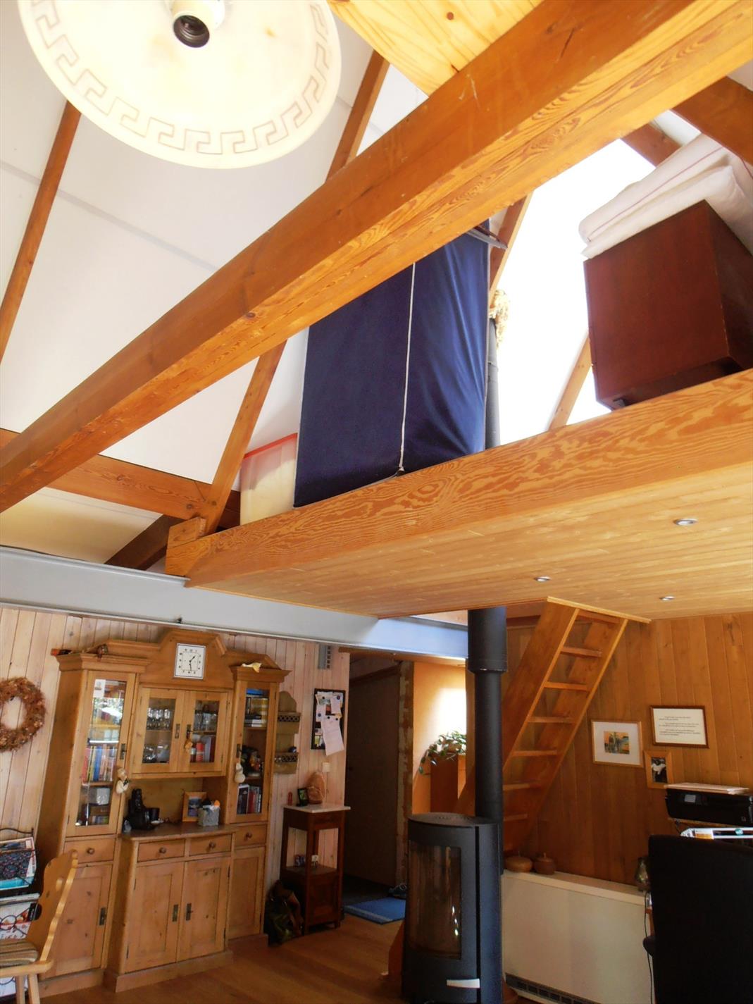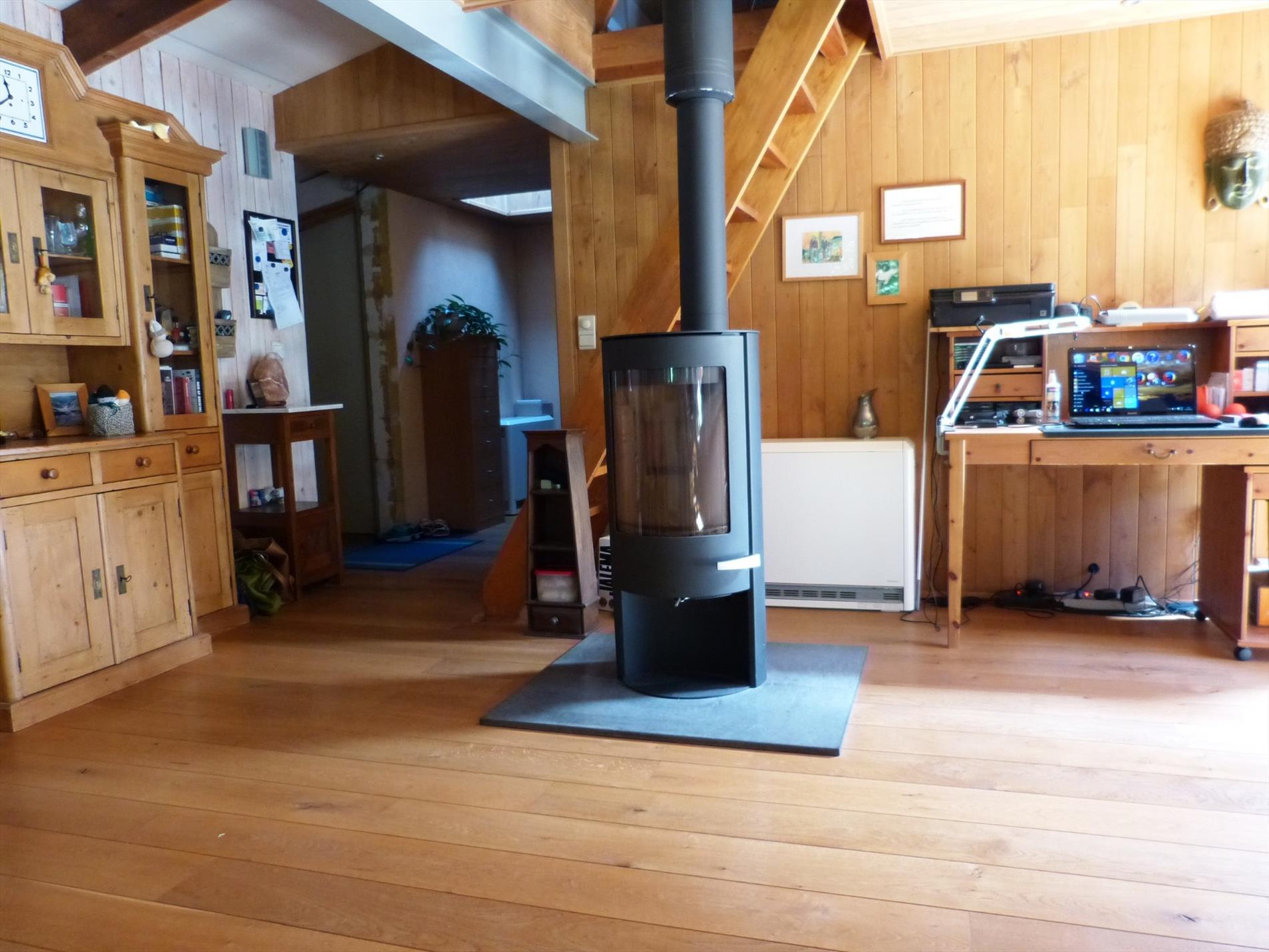 In een rustige woonomgeving werd deze woning opgetrokken op een perceel van 1160m² in BPA recreatief woongebied = permanent wonen. Dit verzorgd landhuis is aan de buitenzijde afgewerkt met moderne slidings. Indeling: Inkom rechtstreeks in de leefruimte op parket met open houten trap naar de verdieping, een vernieuwde keuken ingericht met kookplaat, oven, spoelbak en ontbijthoek. Aansluitend de keuken is er een terras. Een badkamer met douchecel, wandmeubel met lavabo en toilet. Een bergplaats met aansluiting voor wasmachine. Er zijn 2 slaapkamers (elk 13m²) waarvan er 1 kamer zich bevindt op de eerste verdieping. Er is een omheinde tuin met oprit, drie tuinhuizen en een carport. Mogelijkheid tot klein beschrijf.