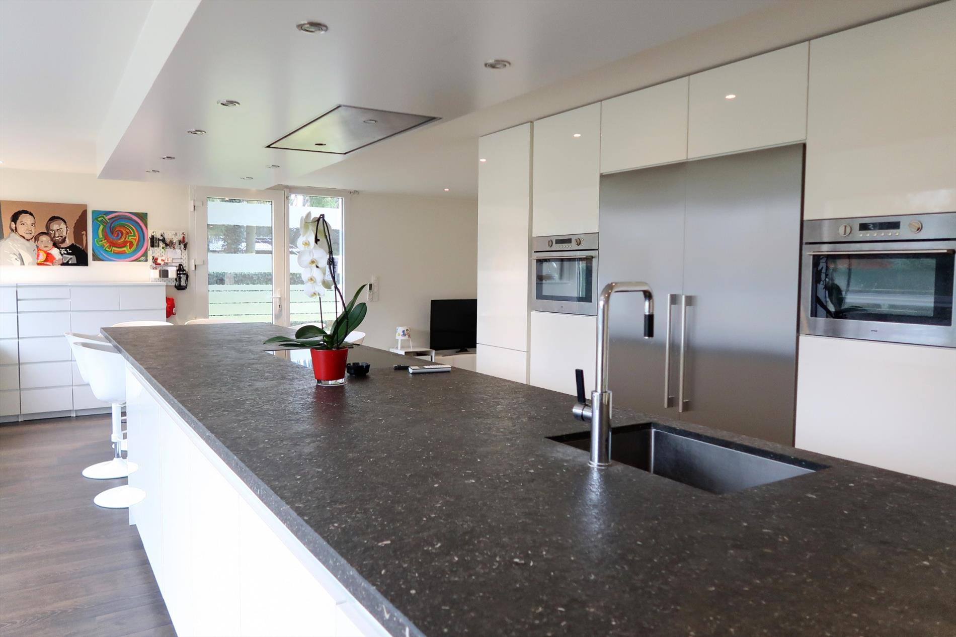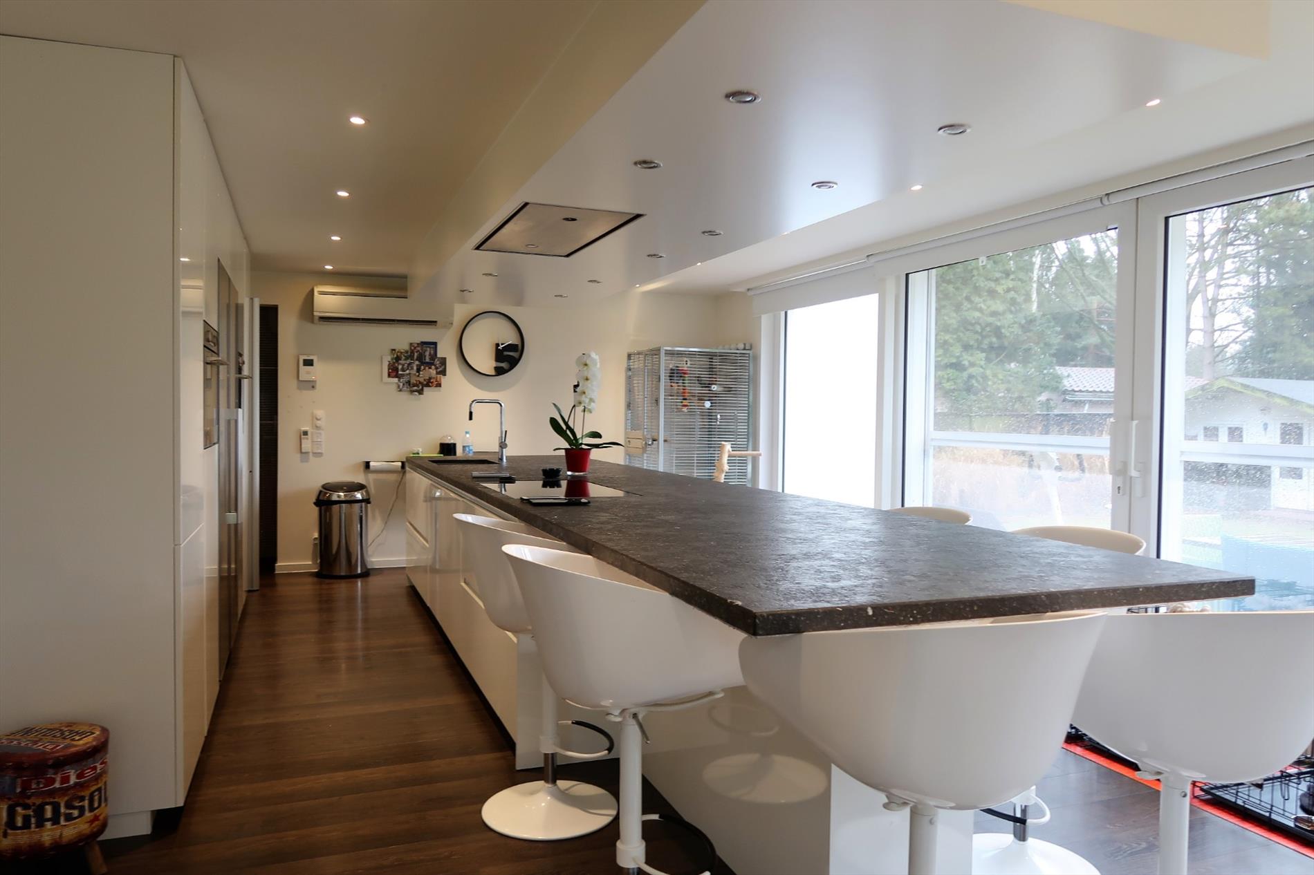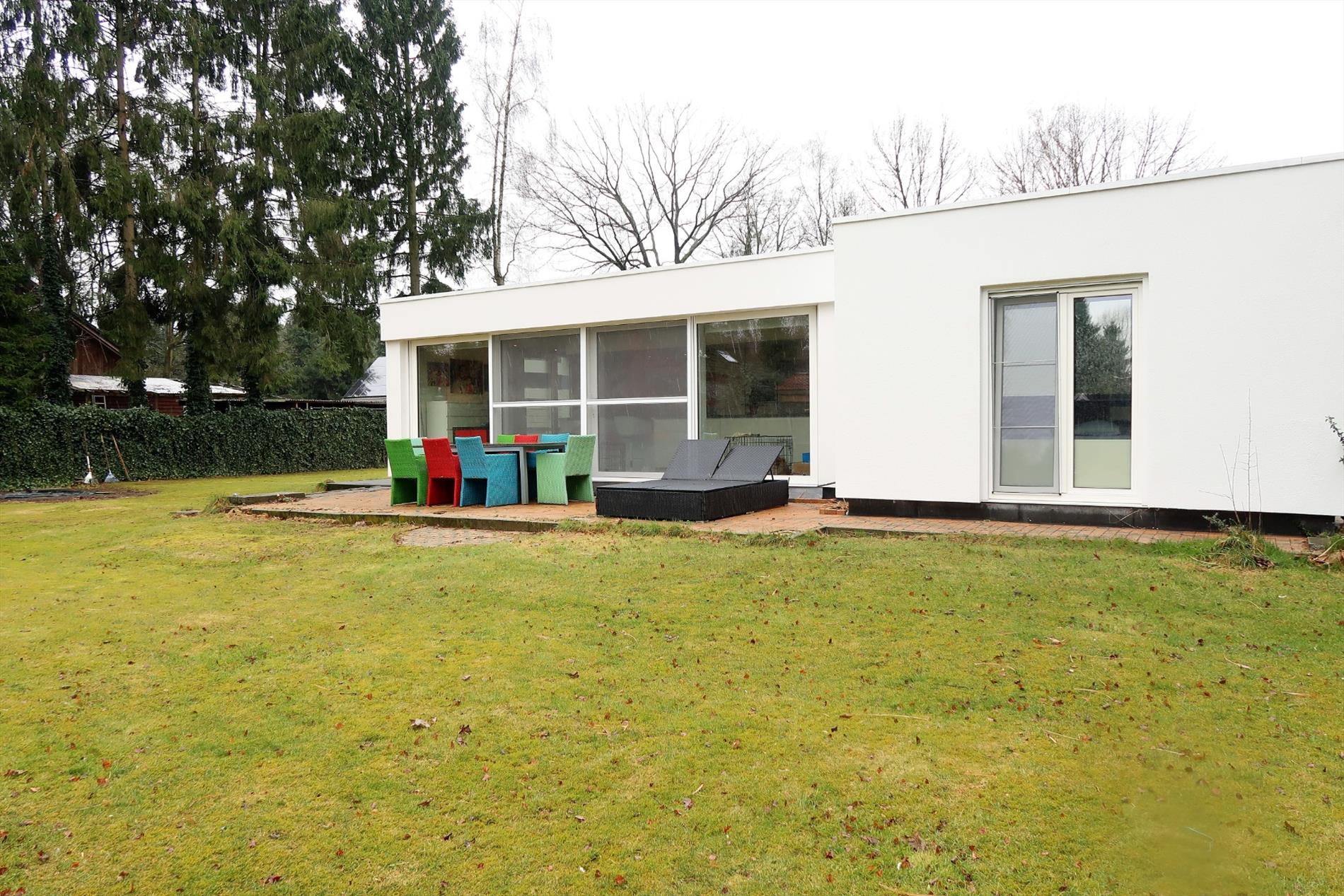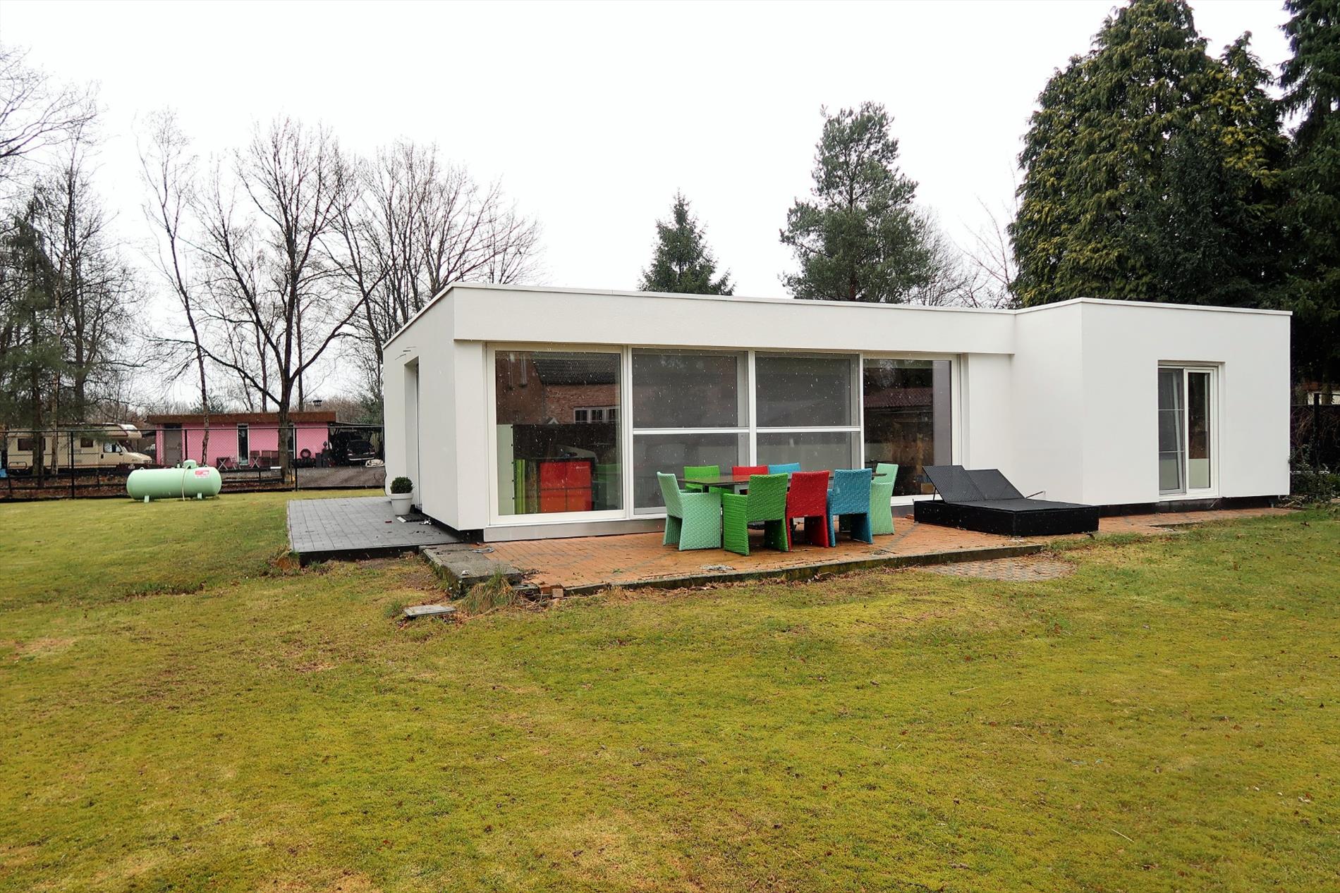 In een rustige woonomgeving werd deze gerenoveerde woning opgetrokken op een perceel van 1200m² in BPA recreatief woongebied = permanent wonen. De woning werd grondig vernieuwd en is ingedeeld als volgt: een woonkamer met aansluitend een geïnstalleerde keuken. Deze leefruimte 48m² beschikt over zeer veel lichtinval en een uniek uitzicht op de tuin. Er zijn 2 slaapkamers (15m² en 18m²) waarvan er een kamer gebruikt wordt als dressing met bureel. Tevens is er een luxueuze badkamer voorzien van alle comfort (ligbad, douche, lavabo en een wasplaats). Bijzonderheden: automatische rolluiken, aanwezigheid van vliegenraam, een warmtepomp/airco, een oprijlaan met schuifpoort. Zeer gunstig EPC resultaat door de renovatie. Er is een onderhoudsvriendelijke tuin met een terras.