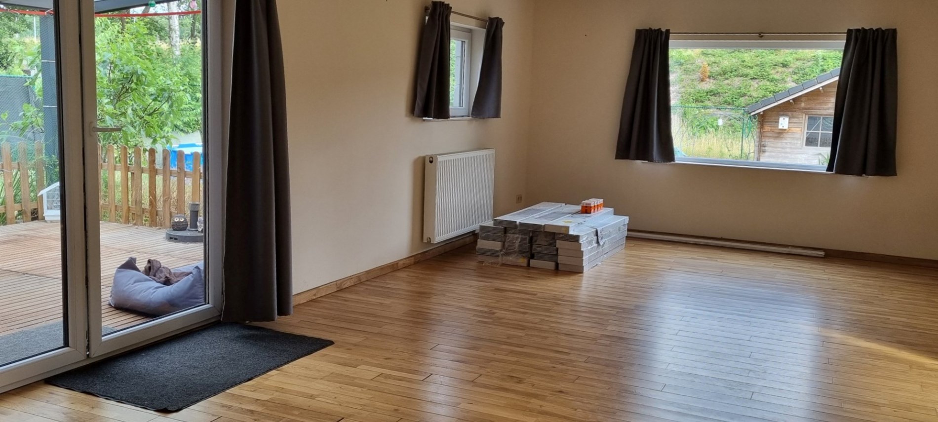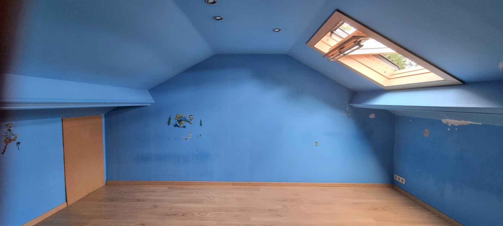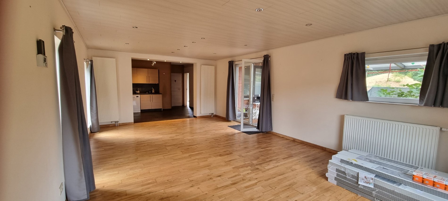 In een rustige woonomgeving werd deze woning opgetrokken op een perceel 1305m². Deze deels te vernieuwen landhuis is functioneel ingedeeld en omvat een inkomhal, een woonkamer 34m² op parket met aansluitend een open ingerichte keuken, een bergplaats 20m². Op het gelijkvloers is er een hoofdslaapkamer en een badkamer met douche, dubbele lavabo, toilet. De eerste verdieping omvat 2 slaapkamers (17m² en 10m²). Bijzonderheden: Er is een fraai aangelegde tuin met tuinhuis, omheining met poort. Vlotte verbinding naar op- en afritten E19.