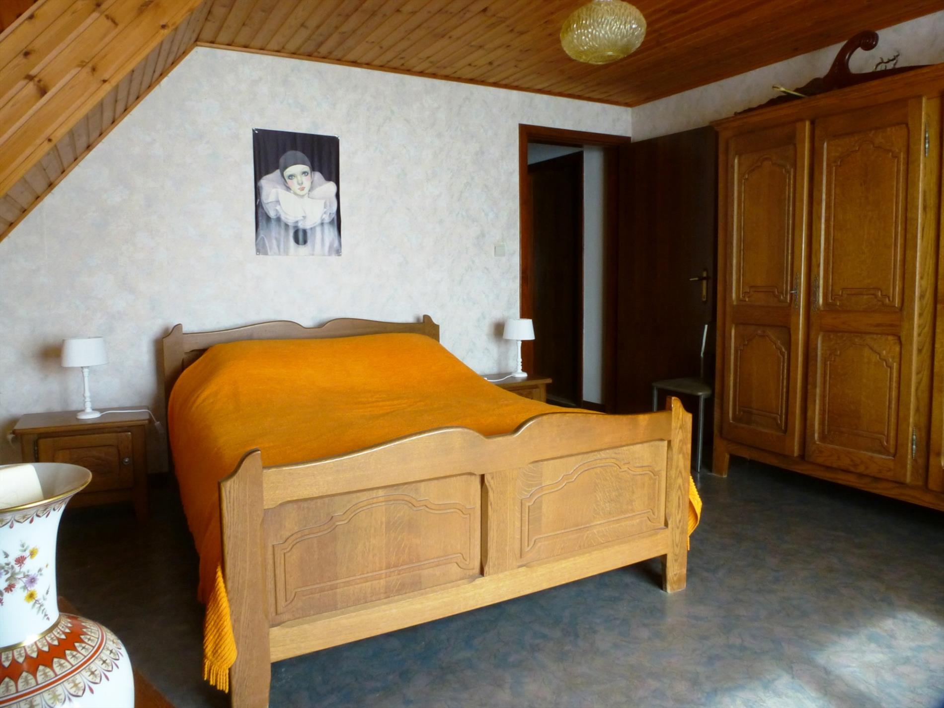 Op wandelafstand van het centrum van Hoogstraten staat deze landelijke woning op een perceel van 747m². Via de ruime inkomhal 13m² met gastentoilet krijgen we toegang tot een woon- en eetkamer 40m², een studeerkamer 13m², een keuken 13m² en een inpandige garage 27m². Dankzij de grote raampartijen genieten de leefruimten van optimale lichtinval. De kachel in de zithoek maakt het geheel compleet. In de ingerichte keuken met ontbijthoek zijn de nodige toestellen voorzien. Aansluitend bevindt zich een berging 3m², alsook een wasplaats 4m² met douchecabine en toegang tot het terras met de tuin. Op de verdieping geven de drie slaapkamers (12m², 18m² en 21m²), een badkamer 7m², het nachttoilet en een zolderkamer 11m² uit op de nachthal. Mits enkele kleine opfrissingen tovert u deze gezinswoning om tot een echt pareltje waar het aangenaam wonen is, op een boogscheut van het centrum.