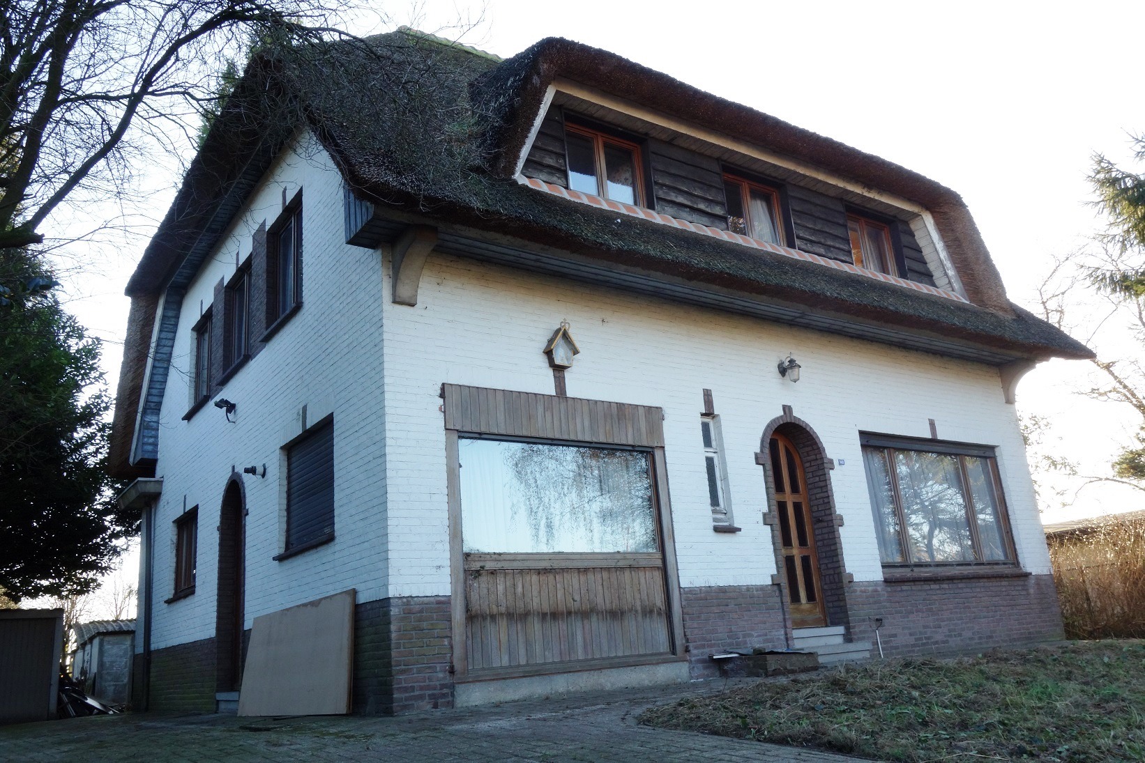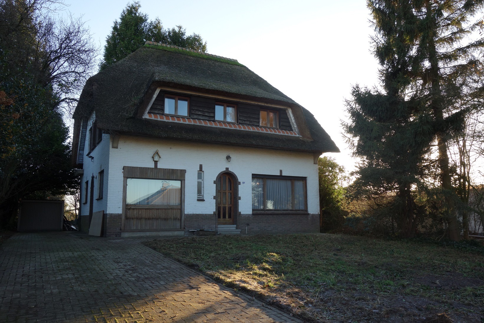 Deze charmante villa biedt u de mogelijkheid om van deze woning een pareltje te maken. De woning is gelegen op een perceel van 1.000m² en is perfect zuid-georiënteerd. Het rieten dak werd reeds gerenoveerd, alsook een nieuwe CV-ketel en het sanitair voor warm water. Indeling: Inkomhal, tweedelige woonkamer 33m² met gaskachel, keuken met toegang naar de veranda en een inpandige garage/wasplaats met toilet. De eerste verdieping omvat een nachthal, 4 slaapkamers (9m², 15m², 16m² en 17m²) en een badkamer. Bijzonderheden: via een vlizotrap kan men de bergzolder 72m² bereiken, in de ondergrondse verdieping bevindt zich een tweedelige kelder 21m². Na de nodige opfrissing- en renovatiewerken is dit een unieke plek om te vertoeven.