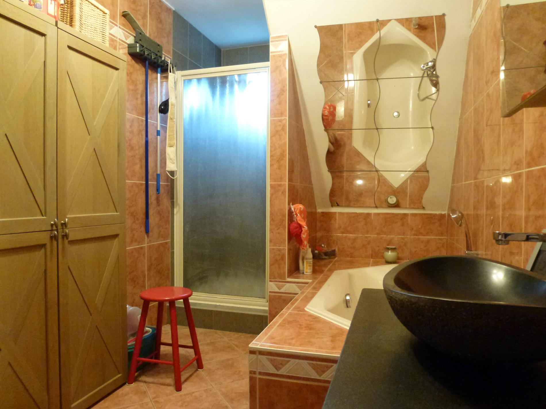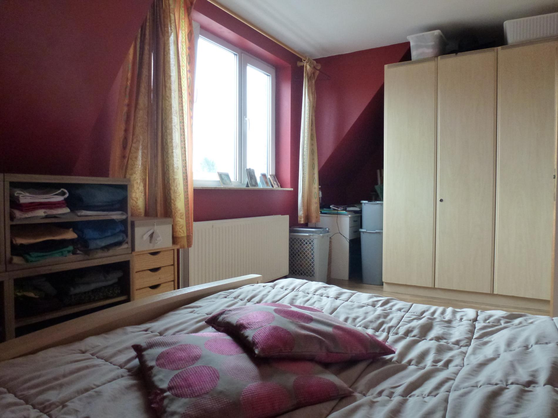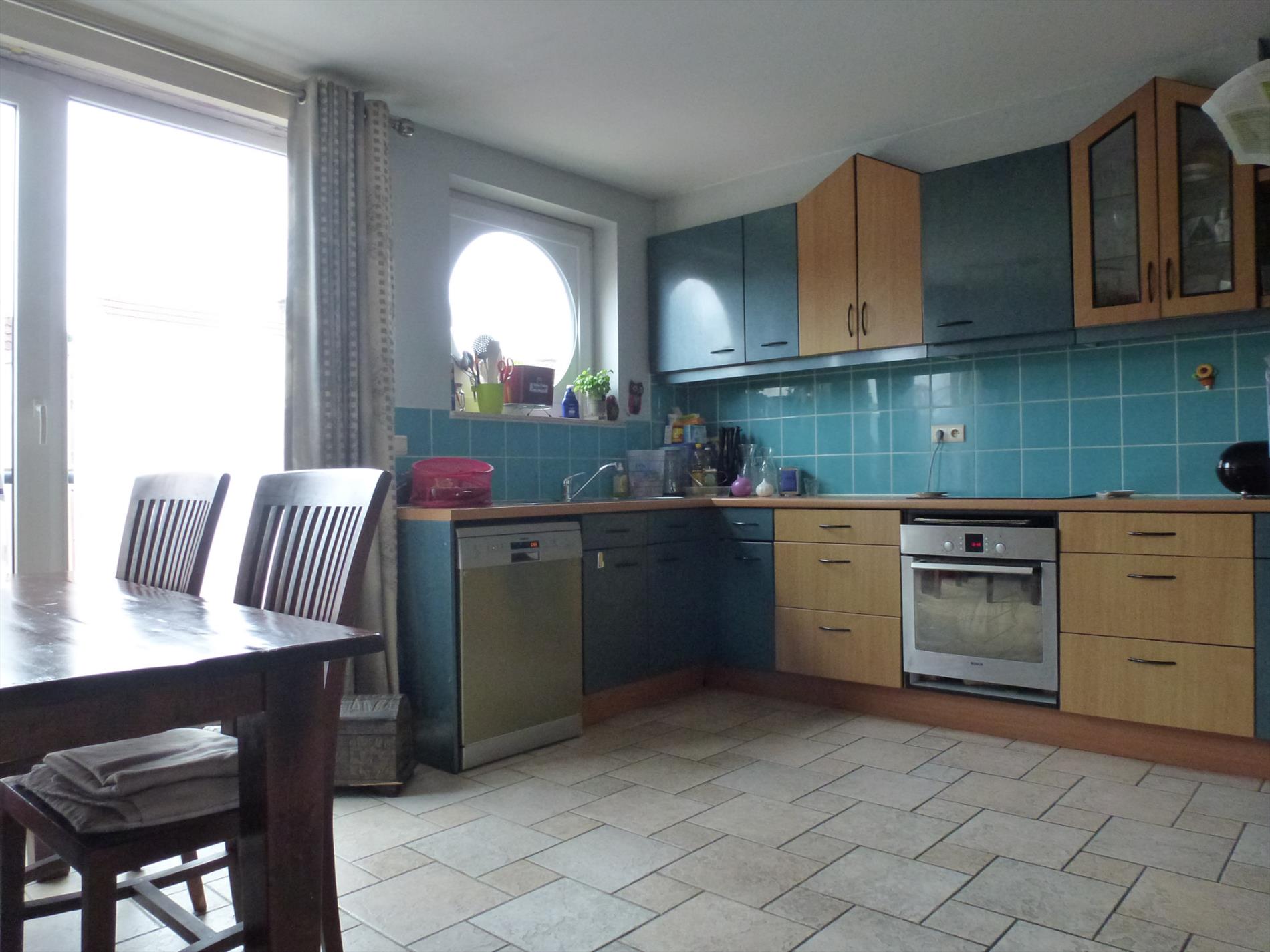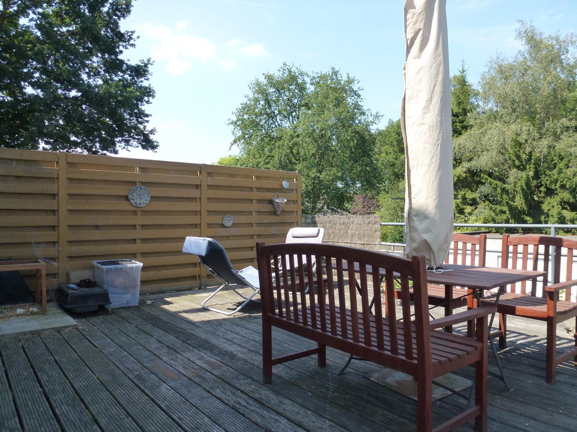 Het appartement bevindt zich op de 1e verdieping (zonder lift) van een kleinschalig appartementsgebouw. Indeling: inkom, woon- en eetkamer 30m² met toegang tot terras 35m² via een schuifraam, aparte ingerichte keuken 10m². Op de 2e verdieping bevinden zich de 2 slaapkamers (11m² en 18m²), comfortabele badkamer met douche, wandmeubel met lavabo, ligbad, toilet en wasplaats. Op de 3e verdieping is er een technische bergruimte en een 3e slaapkamer 15m² met grote velux. In het bijgebouw achteraan het gebouw is er een privatieve garagebox.