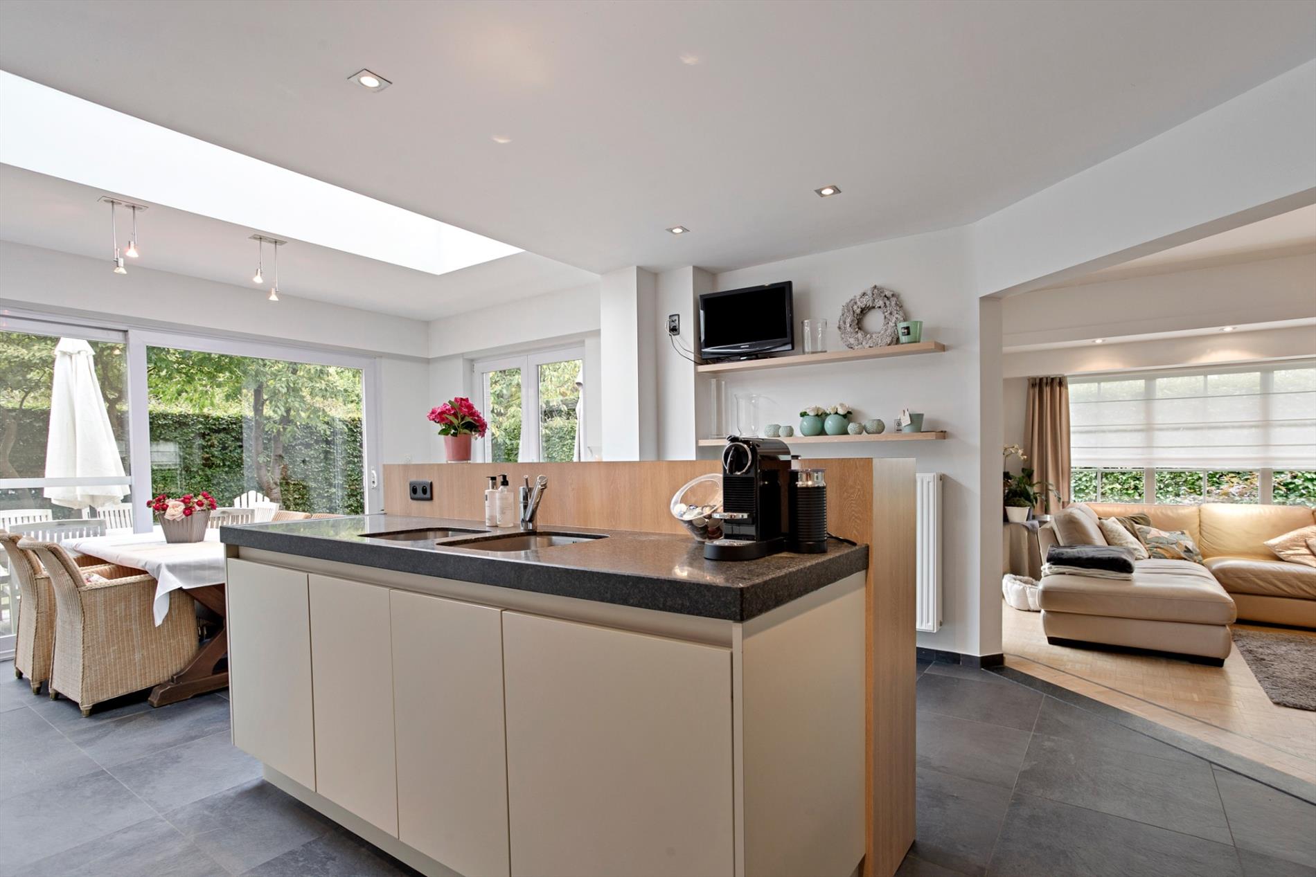 De woning is gelegen in een een kindvriendelijke en rustige woonwijk te Kapellen. Ze dateert van 1969 en werd in 2015 volledig gerenoveerd. Indeling: inkomhal met gastentoilet en vestiaire, een woon- en eetkamer 37m² met aanpalend een bureel 12m², een open ingerichte leefkeuken 33m² met aansluitend een terras en uniek uitzicht over de aangelegde omheinde tuin met overdekt terras. Tevens is er een ruime garage 23m² met automatische poort. Verd 1: overloop met apart nachttoilet, 3 slaapkamers (14m², 14m² en 23m²) waarvan twee kamers met ingemaakte kastenwand en één kamer met ruime dressing. De badkamer 12m² is voorzien van een ligbad, douche, dubbele lavabo. De bergzolder is te bereiken via vlizotrap. Bijzonderheden: In de tuin is het aangenaam vertoeven met veel privacy. De nabijheid van dorpskernen, scholen en winkels maken van deze woning een aangename gezinswoning.