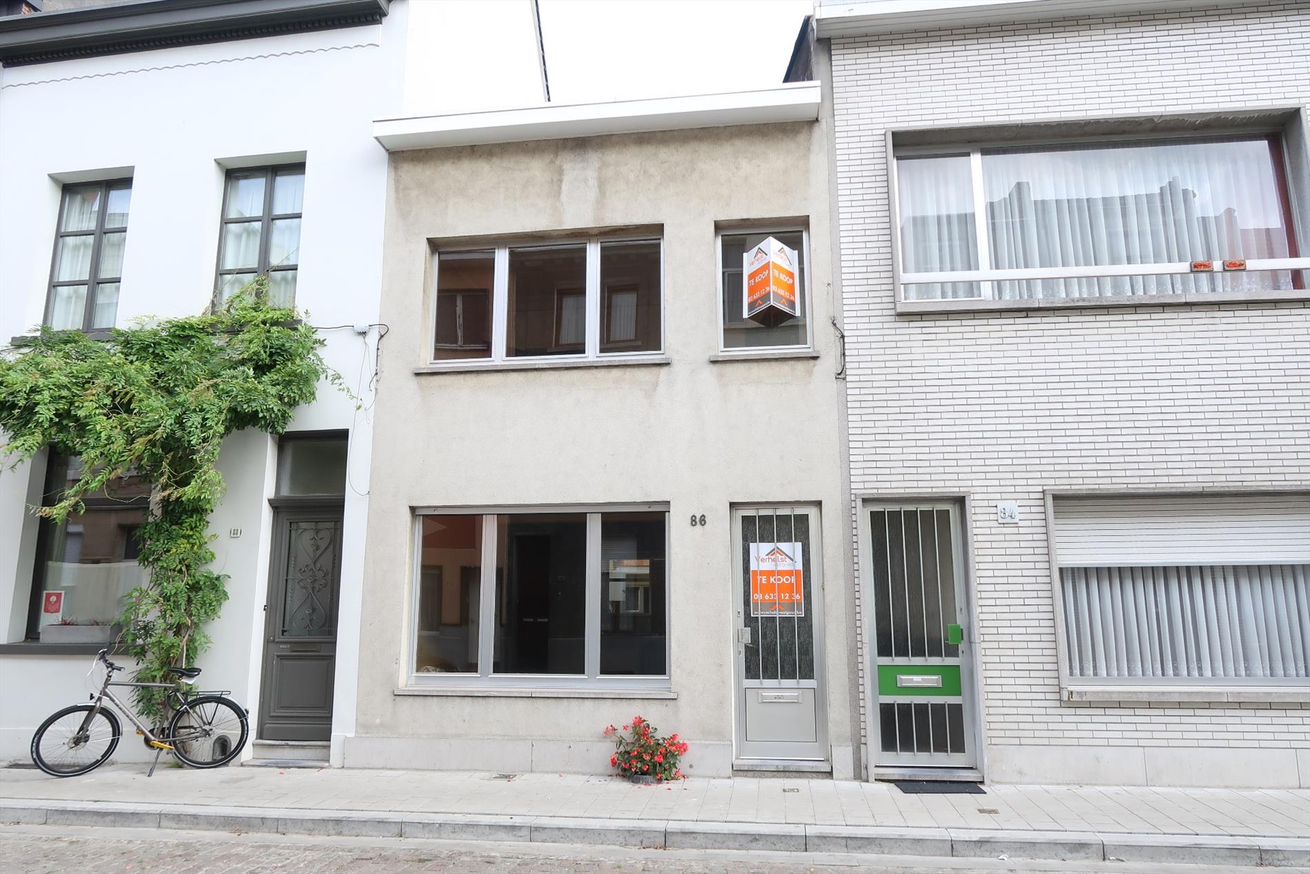 Centraal gelegen woonhuis zonder koer, in de nabijheid van het Stuivenberg Gasthuis, het openbaar vervoer. Indeling: Inkomhal, leefruimte 28m² met spiltrap, een aparte keuken 7m², aparte berging met lichtkoepel, een badkamer met zitbad, lavabo en toilet. De eerste verdieping omvat 2 slaapkamers (12m² en 15m²). Bijzonderheden: vernieuwd dak, recente CV ketel, deels voorzien van rolluiken. Kortom een ideale starterswoning met vele mogelijkheden. Mogelijkheid tot klein beschrijf.