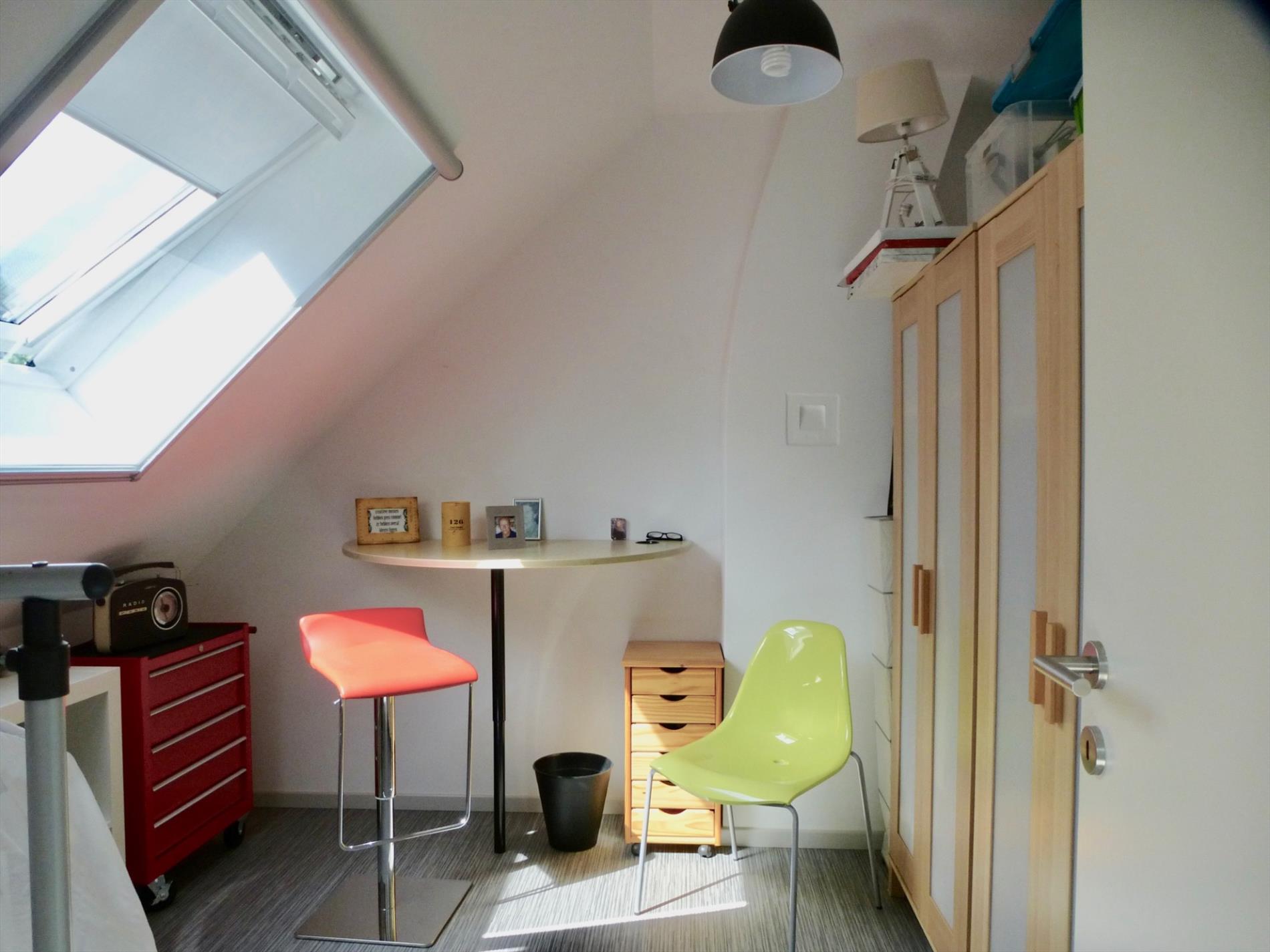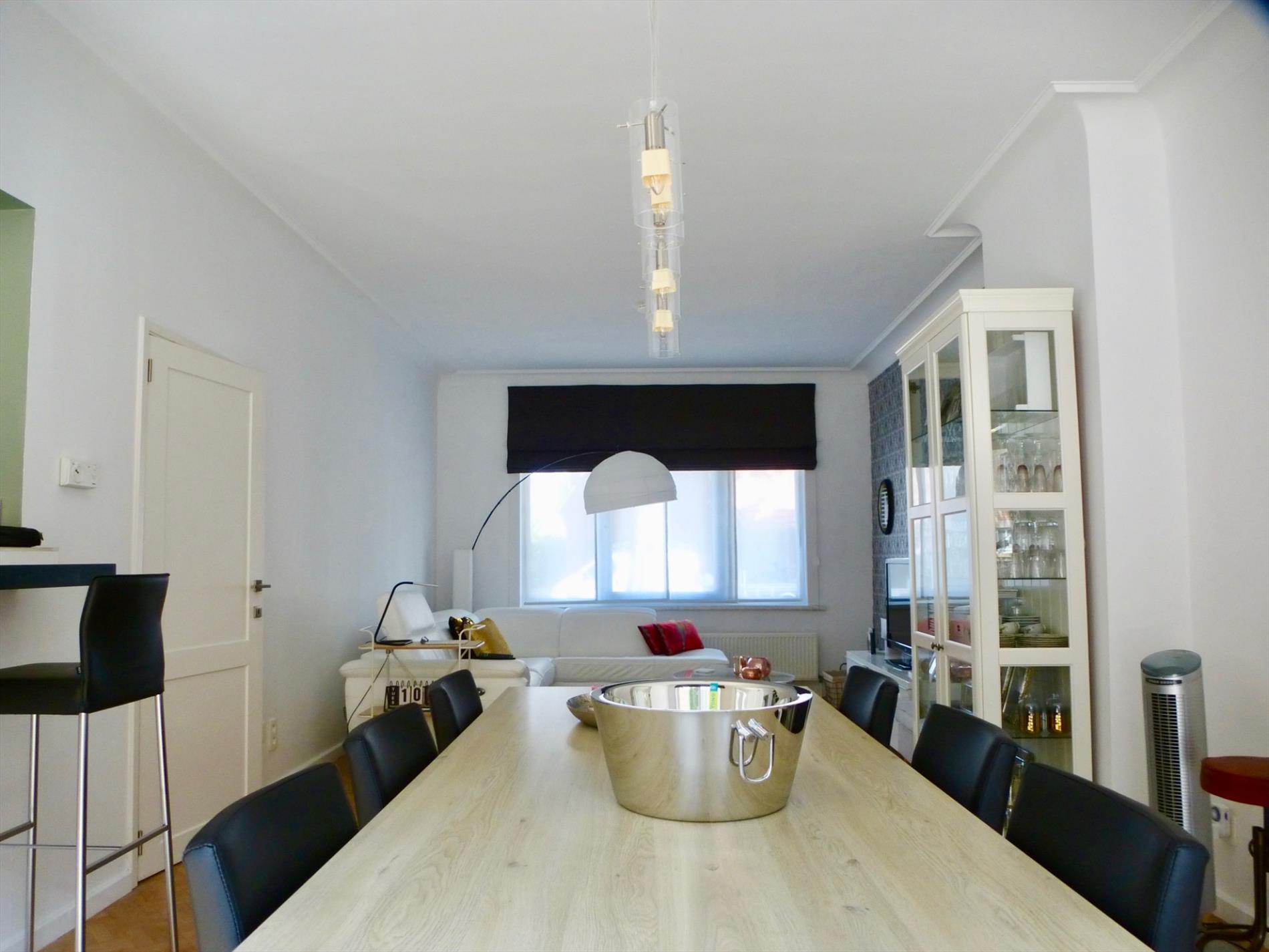 Er is een inpandige garage voorzien van opbergkasten, een aansluiting voor was- en droogkast. De achtertuin 72m² heeft een West-oriëntatie en een terras 19m². Op de eerste verdieping heeft u een woon- en eetkamer 30m² op laminaat met een sierhaard, een aparte keuken uitgerust met een kookplaat, een oven en een koelkast met diepvriesvak. Een nachthal met apart toilet en een kinderkamer anex bureel 7m². Extra troef: alle ramen zijn voorzien van elektrische rolluiken. Zeer gunstig gelegen, nabij invalswegen, het openbaar vervoer, winkels, scholen, ....